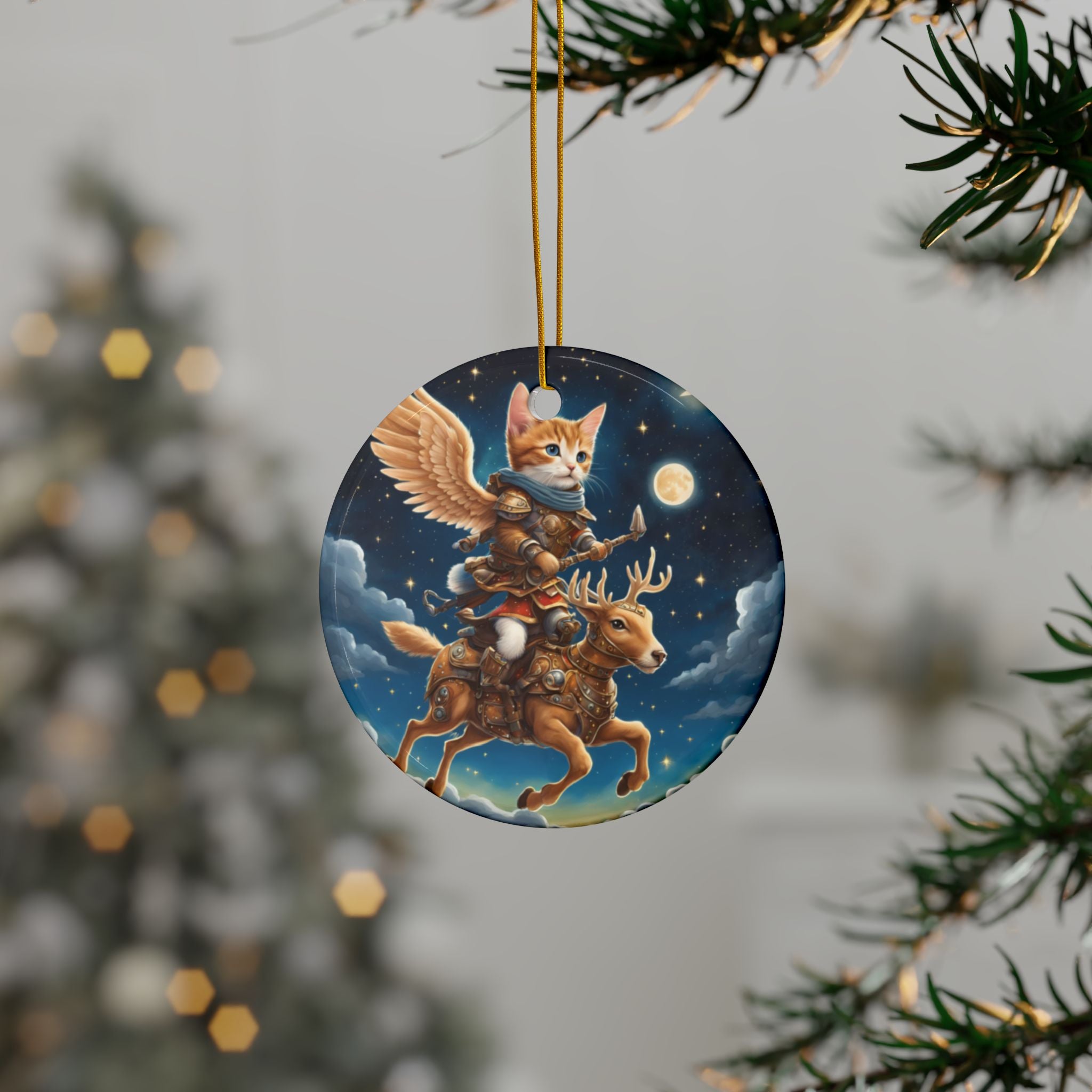 CUSTOM Flying Fantasy Christmas Future Winged Cat Ceramic Ornament