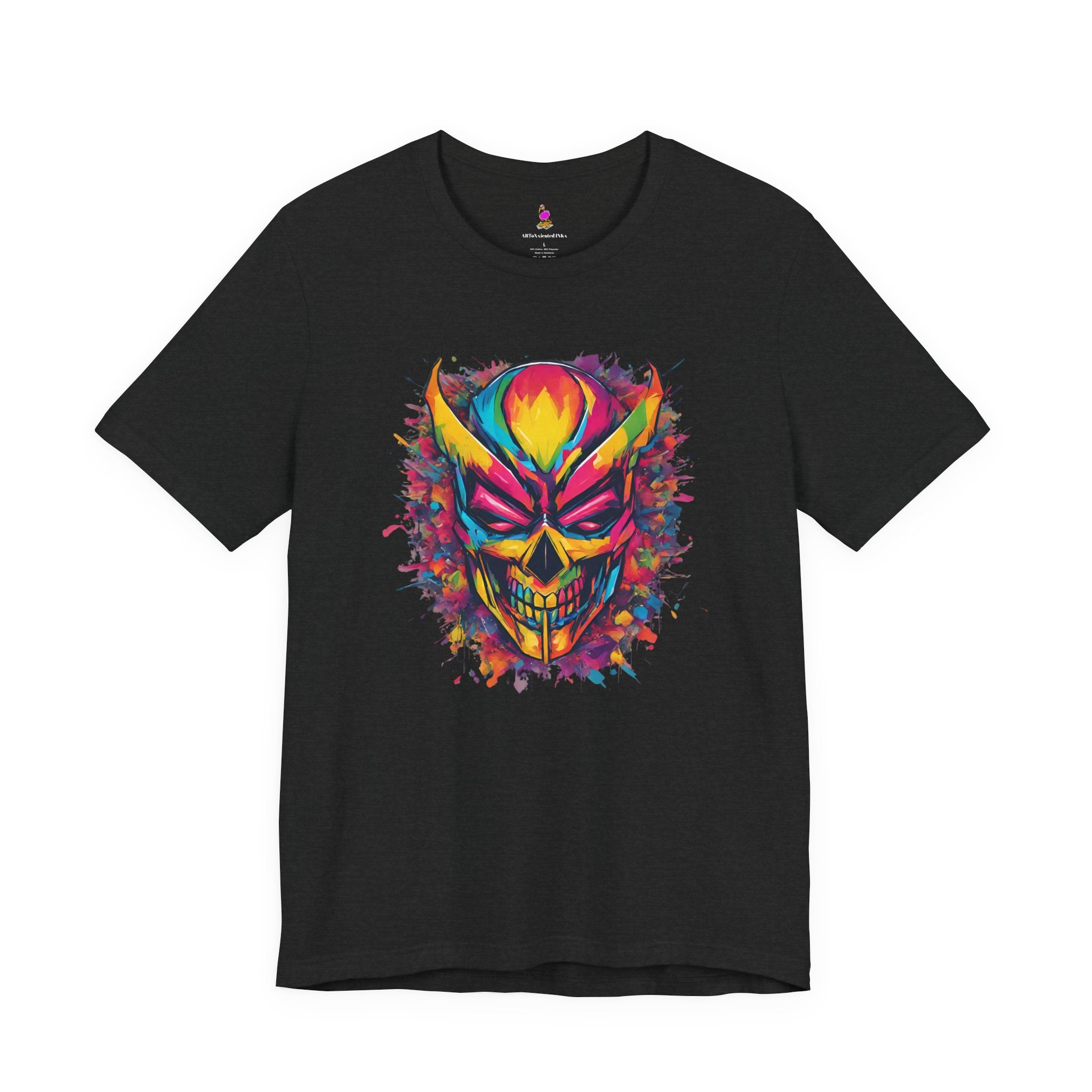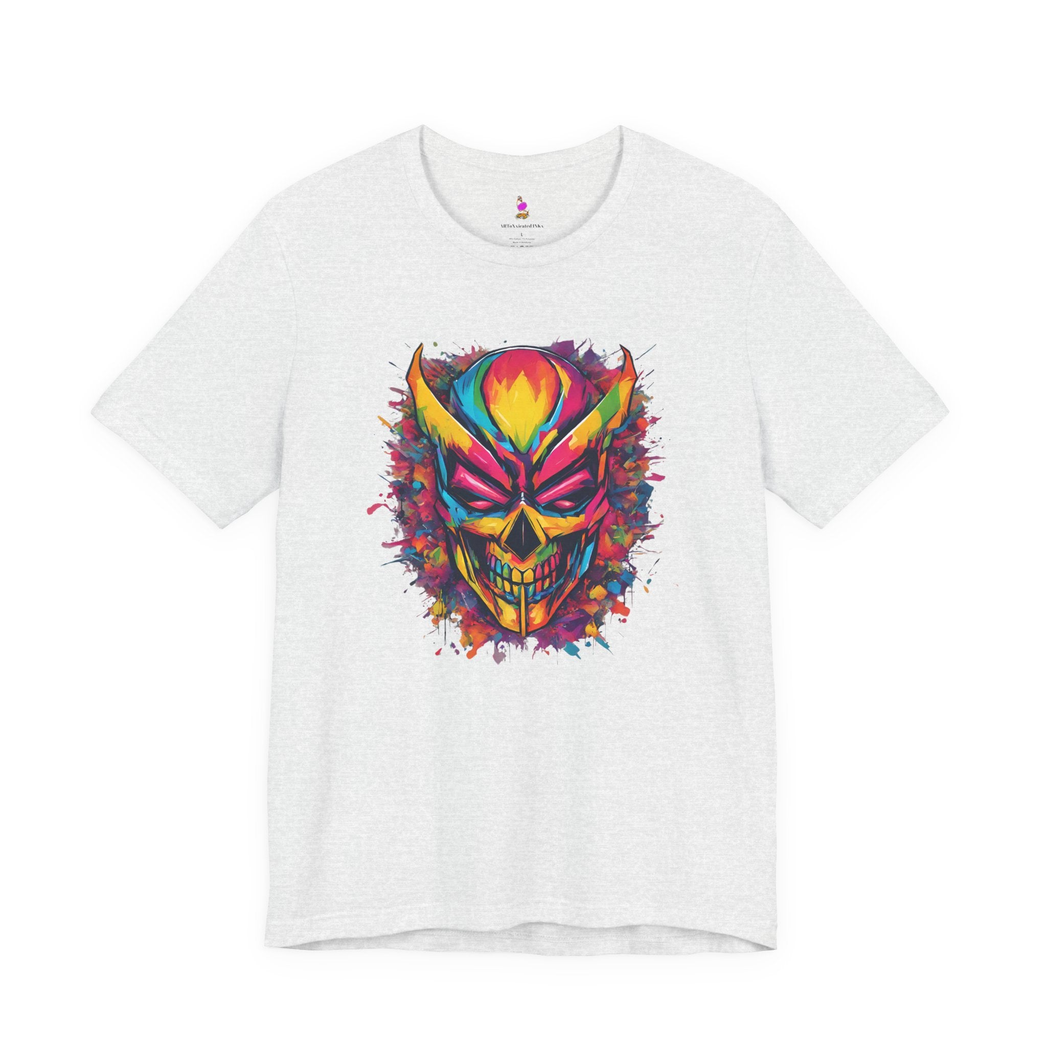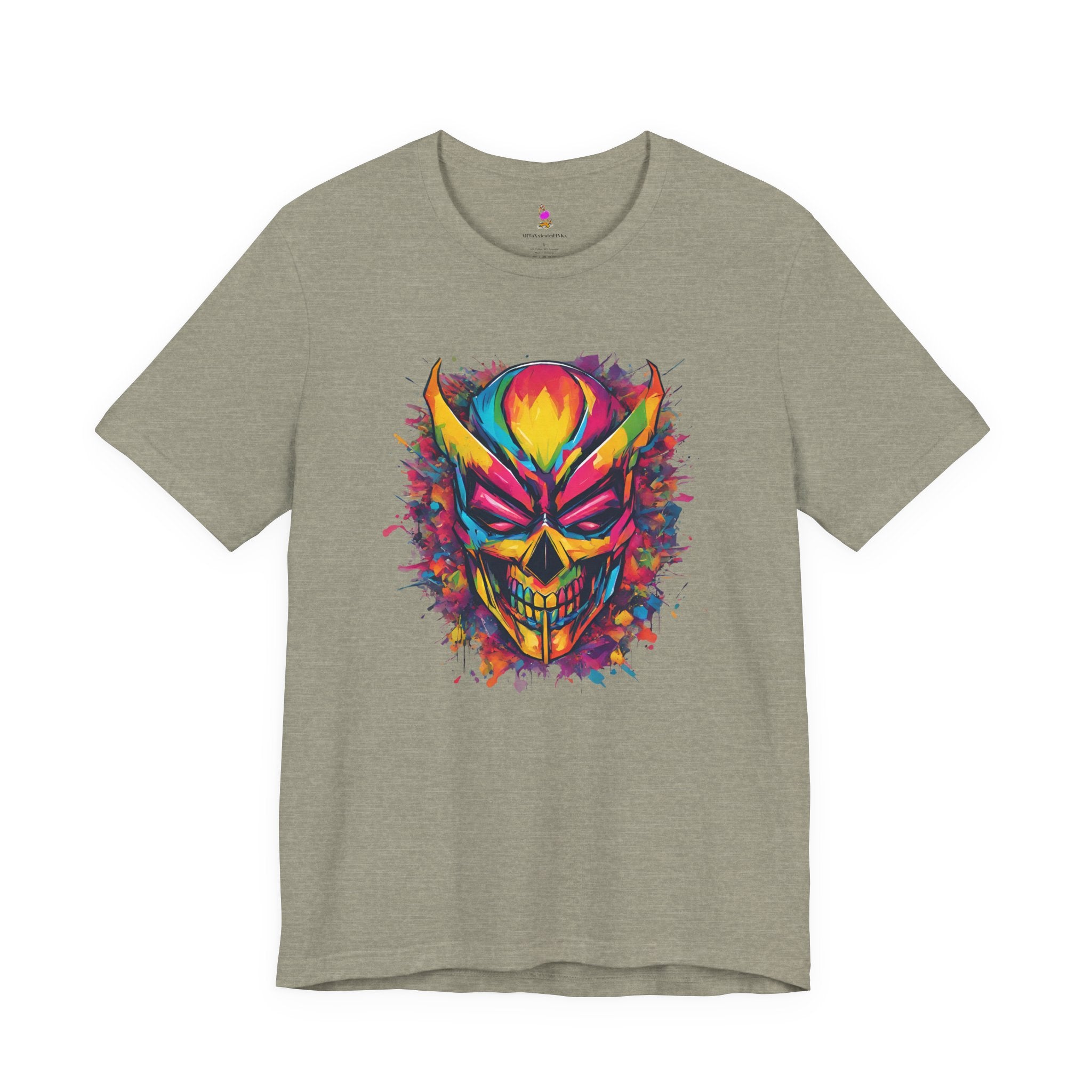 Make a bold statement with this striking Grinning Masked Skull graffiti t-shirt! Featuring edgy street art style skull imagery with a sinister grin and mask, this tee is perfect for fans of urban art, skull enthusiasts, and anyone who loves rebellious, eye-catching designs with attitude.