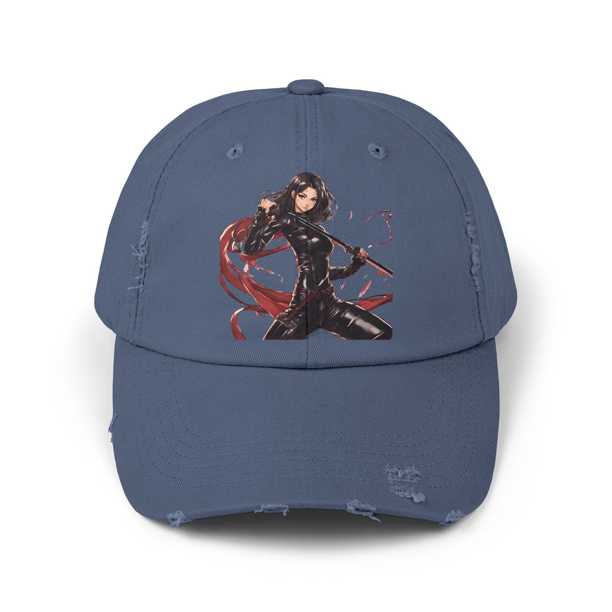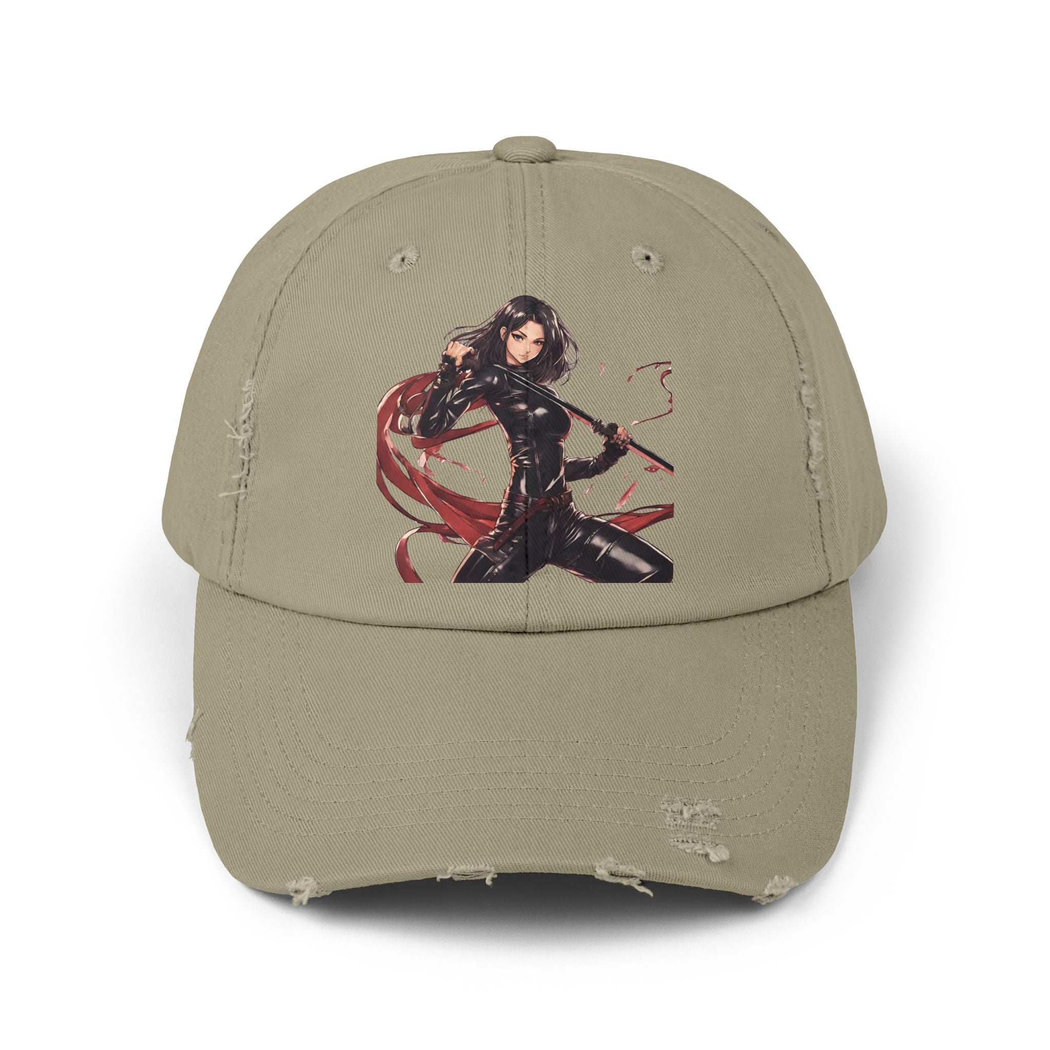 Anime Girl Cap, Black Tight Leather Outfit Sexy Cute Hat, Japan Cartoon Katan Sword Swinging Style Head Gear, Spring, Summer, Fishing Wear