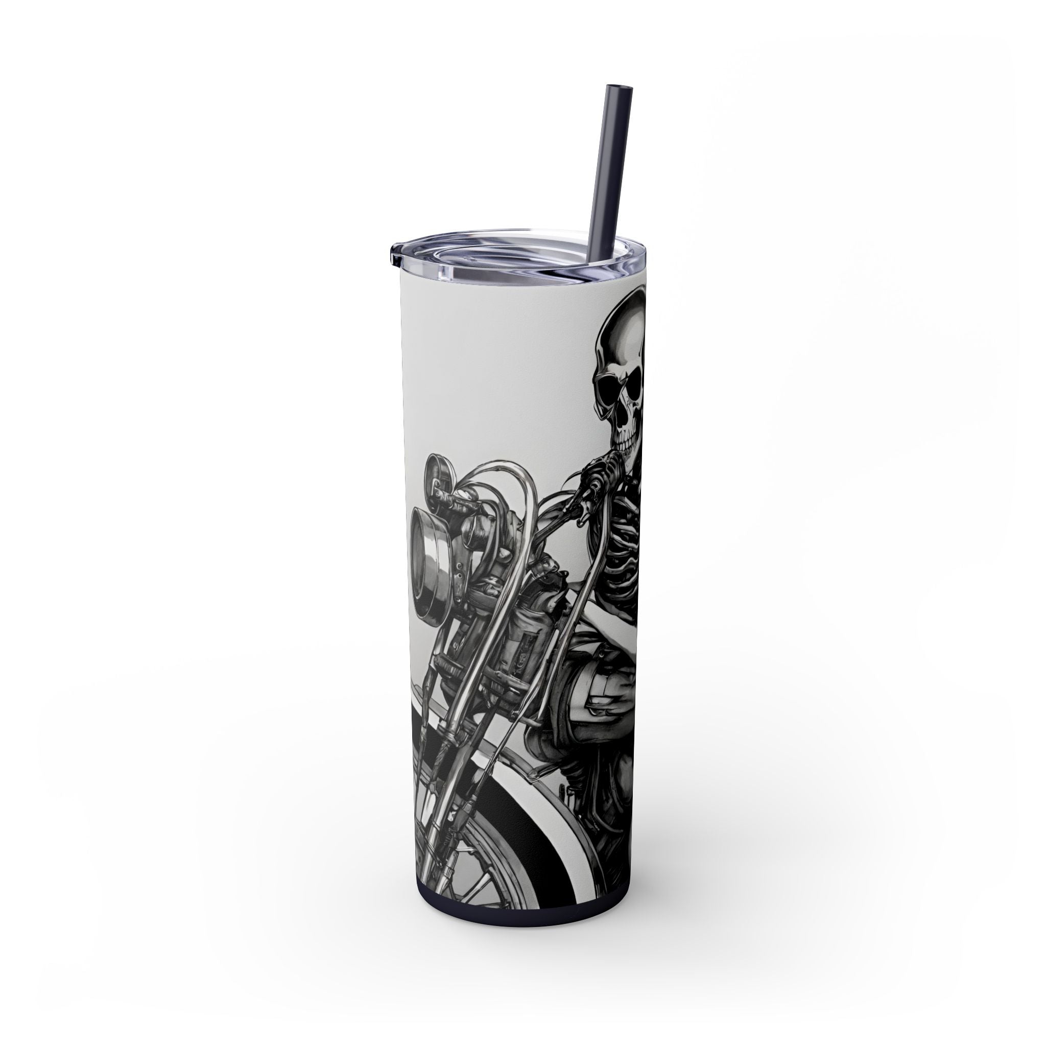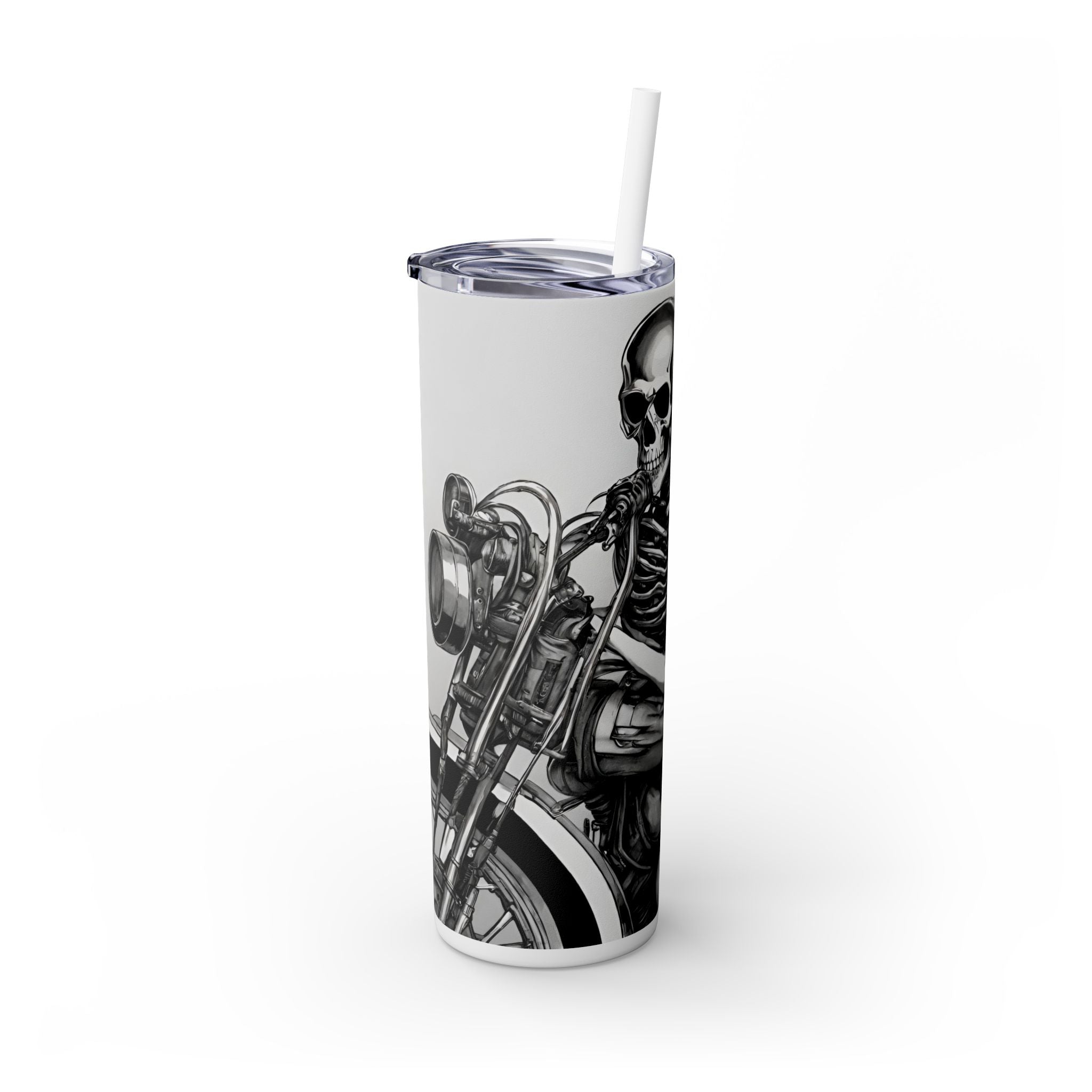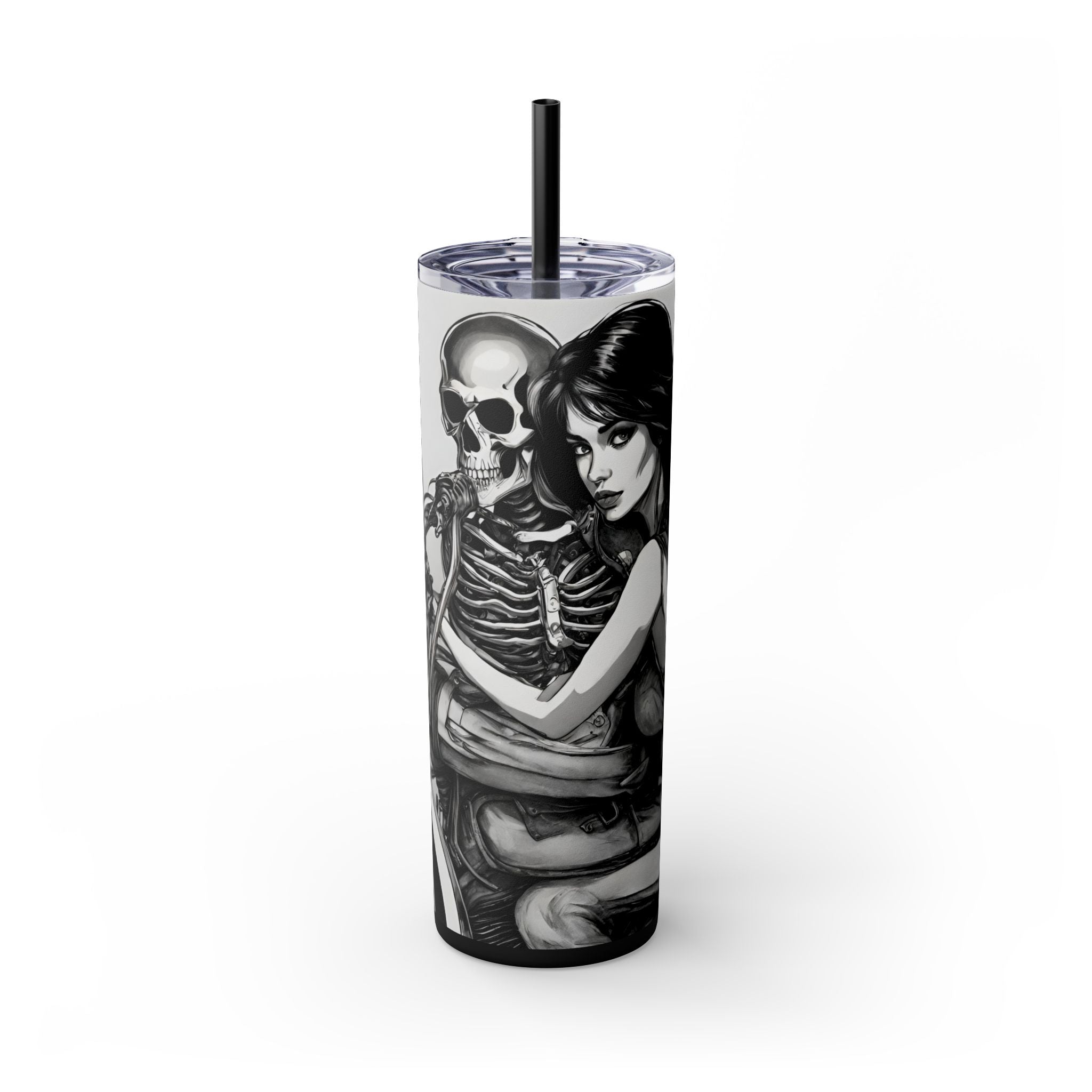 Celebrate beauty, bikes, and bones with this unique skinny tumbler! Featuring a skeleton love babe on a motorcycle, this tumbler is perfect for biker enthusiasts, skeleton lovers, and anyone who appreciates the combination of beauty, motorcycles, and bones.