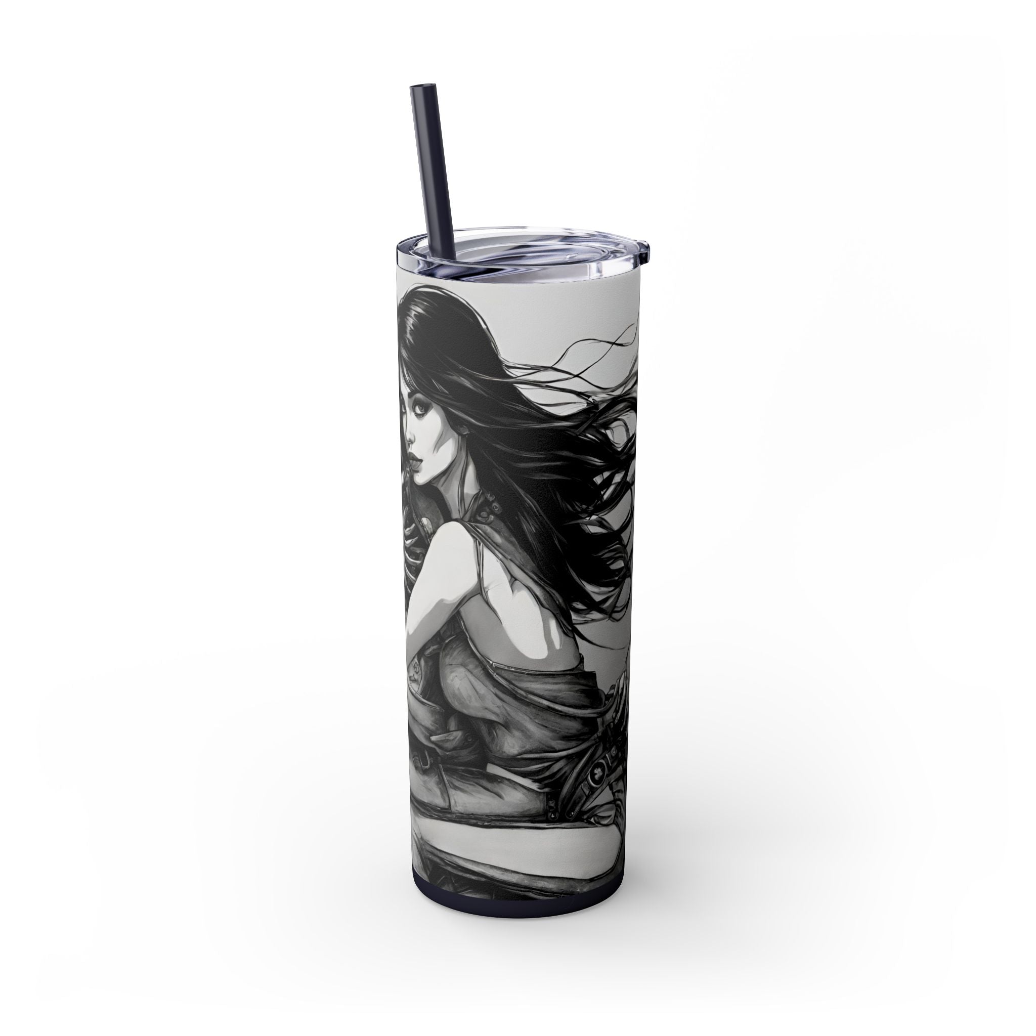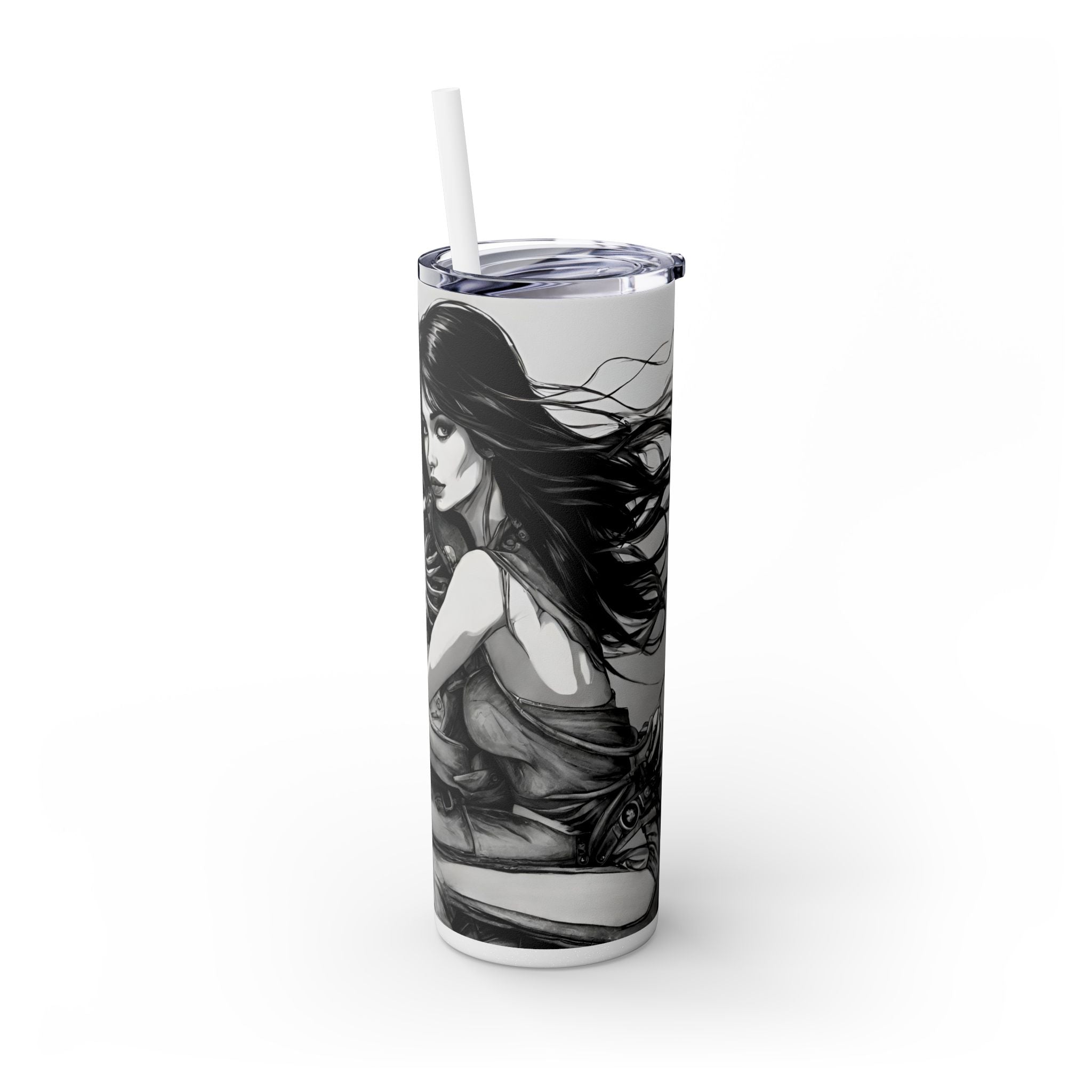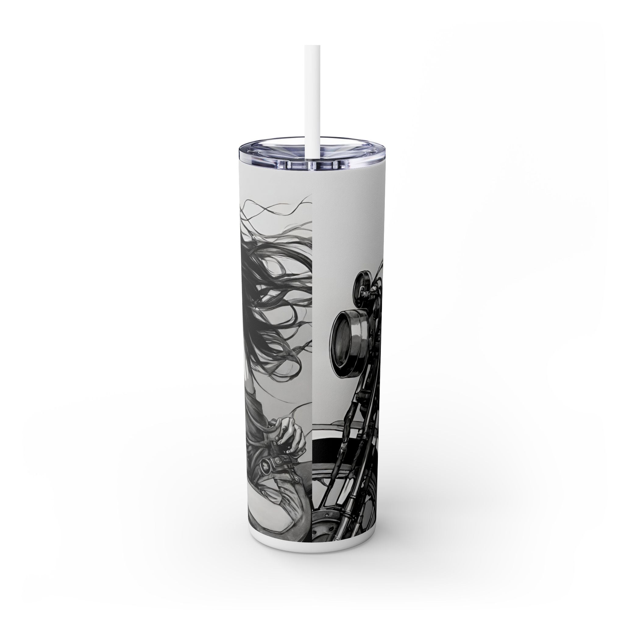 Celebrate beauty, bikes, and bones with this unique skinny tumbler! Featuring a skeleton love babe on a motorcycle, this tumbler is perfect for biker enthusiasts, skeleton lovers, and anyone who appreciates the combination of beauty, motorcycles, and bones.