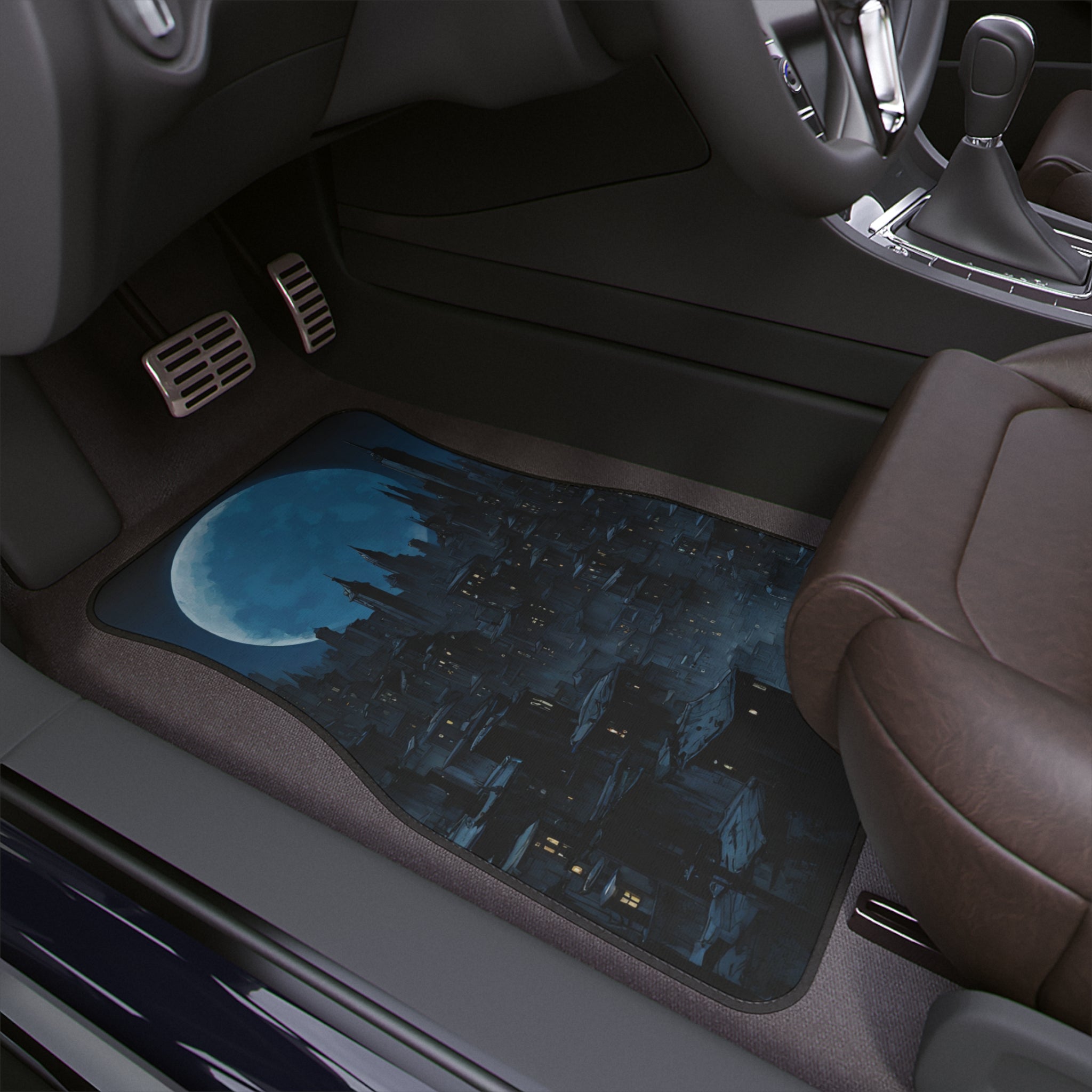 Car Decor | Dark City Of The Night Car Mat | Blue Moon Darkness Auto Floor Carpet | Gothic Lunar Moonlight Skyline | Car Lovers Gift