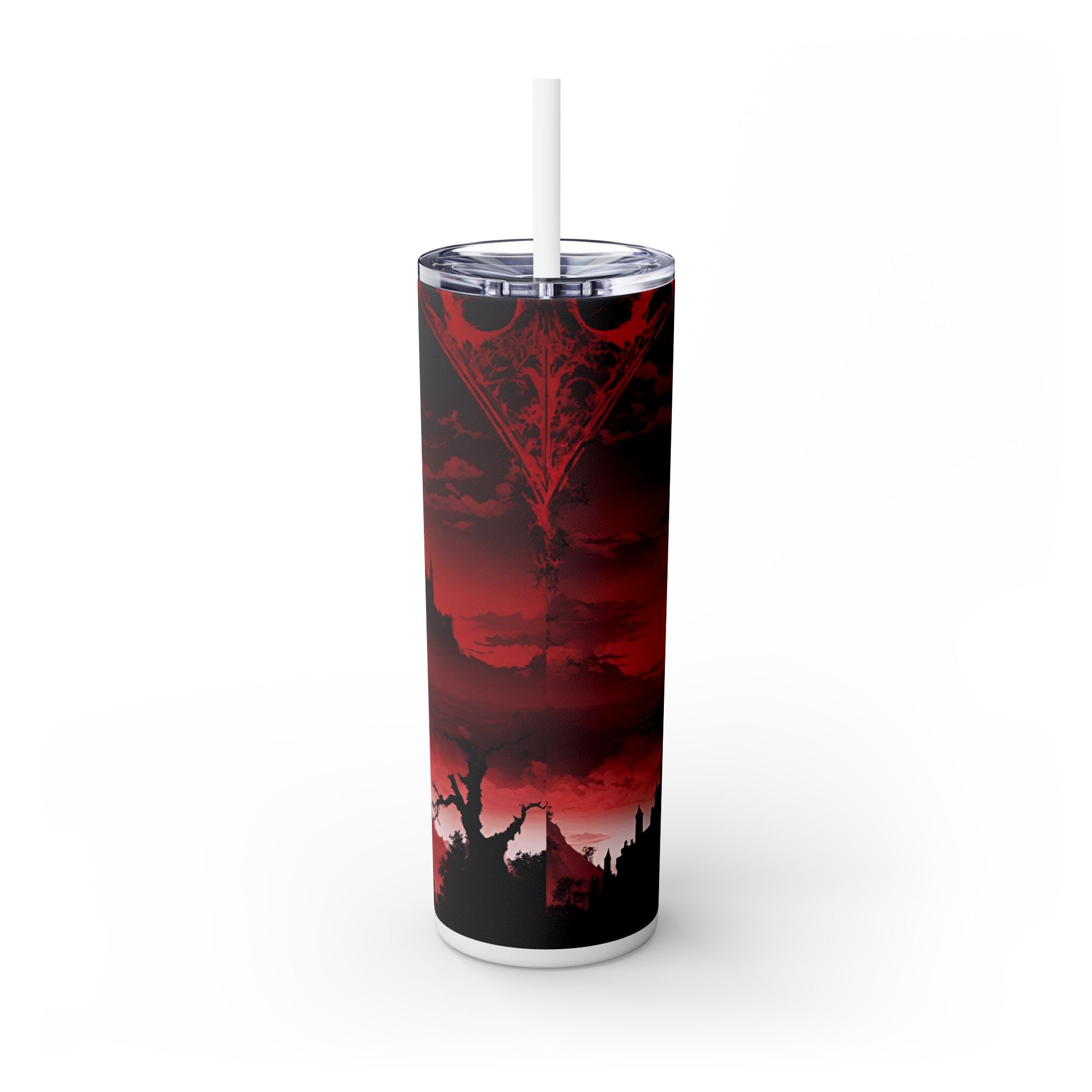 Featuring a tapered shape with a slim design for effortless carriage, this tumbler comes in matte or glossy finish with a plastic press-on lid and color-matching straw for great practicality on the go. All components are BPA-free and non-toxic—perfect for gamers and darkness traversers alike.