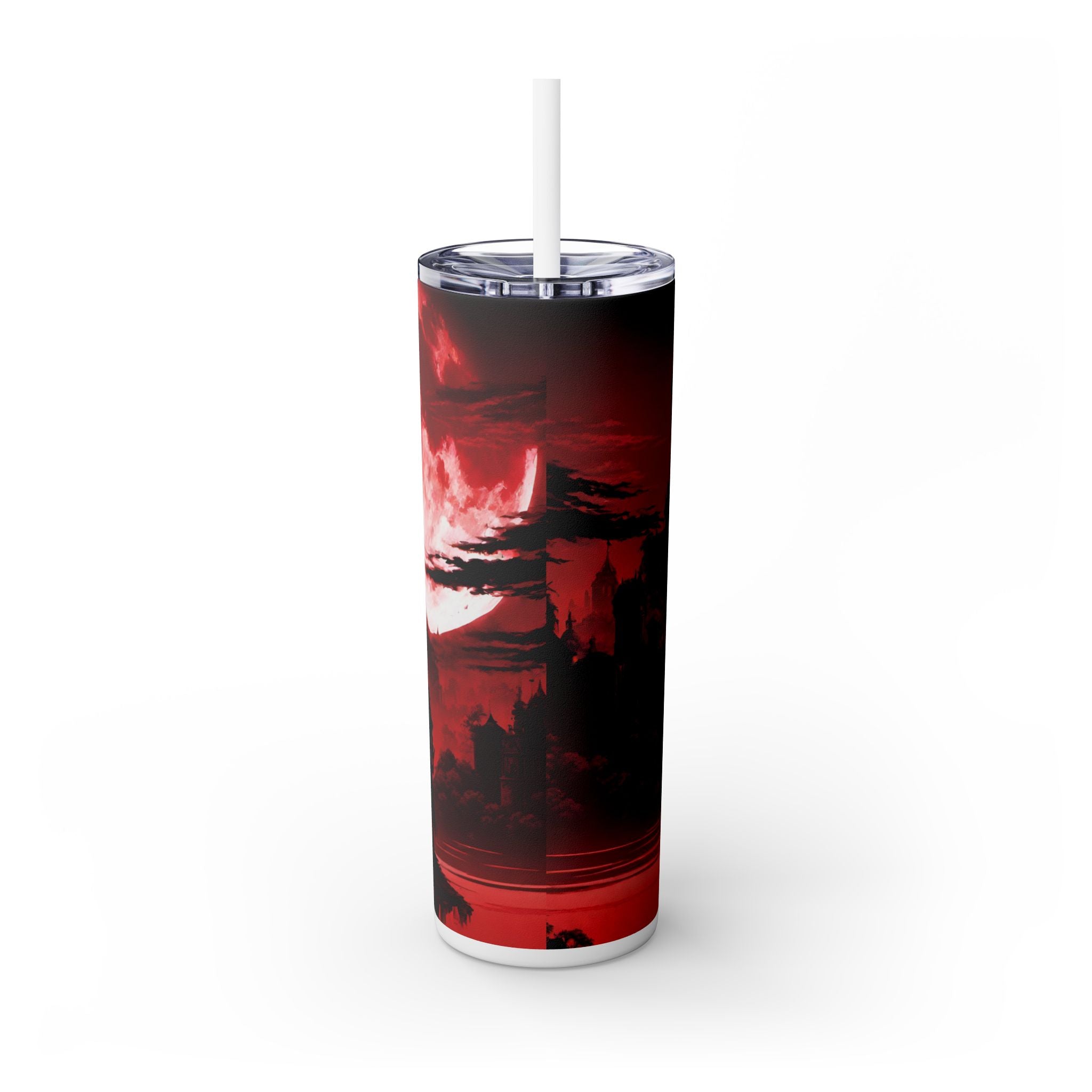 Featuring a tapered shape with a slim design for effortless carriage, this tumbler comes in matte or glossy finish with a plastic press-on lid and color-matching straw for great practicality on the go. All components are BPA-free and non-toxic—perfect for gamers and dark souls alike.
