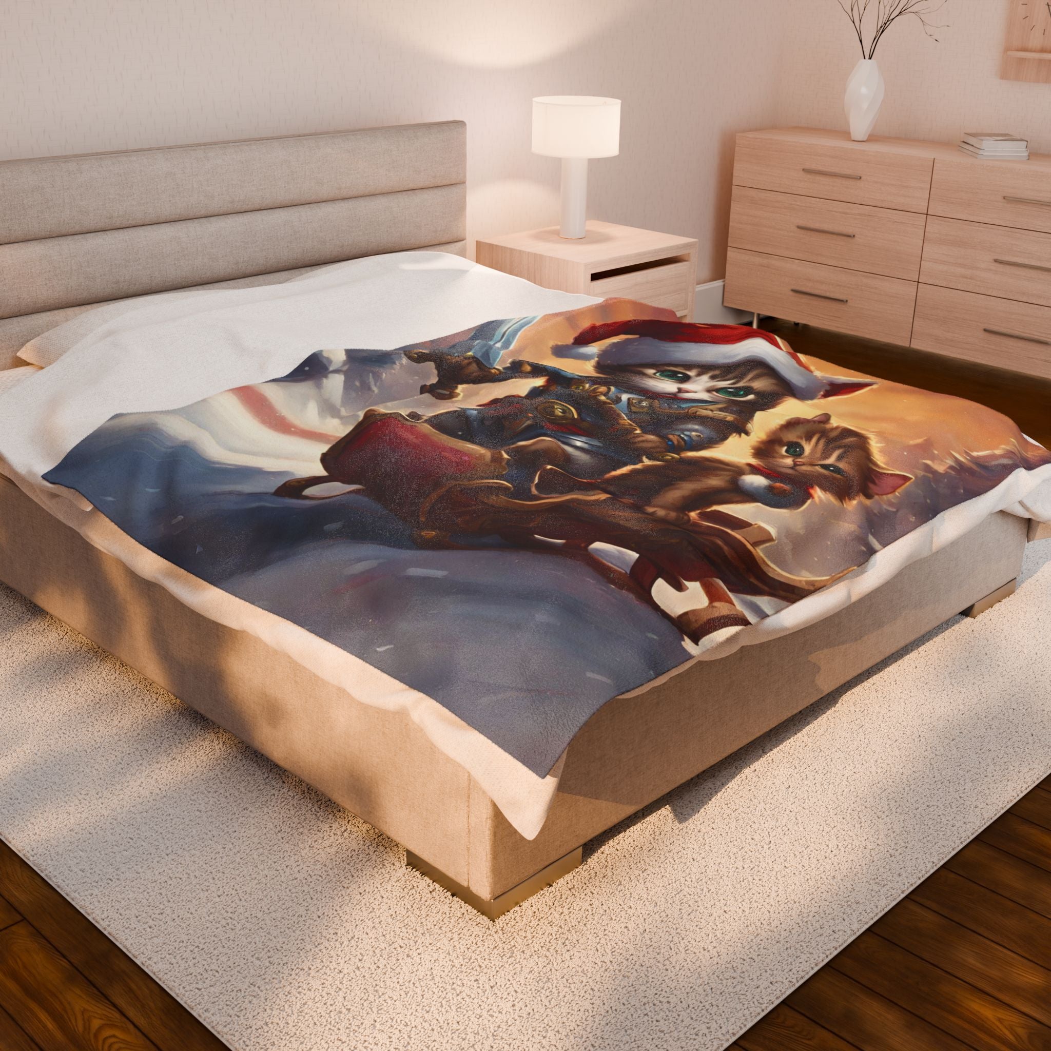 Christmas Blankets Kids Adults Blankets Velveteen Plush Blanket Cat Lovers Christmas Gift Santa Warrior Kitten Holiday Gift Cat Holiday Gift