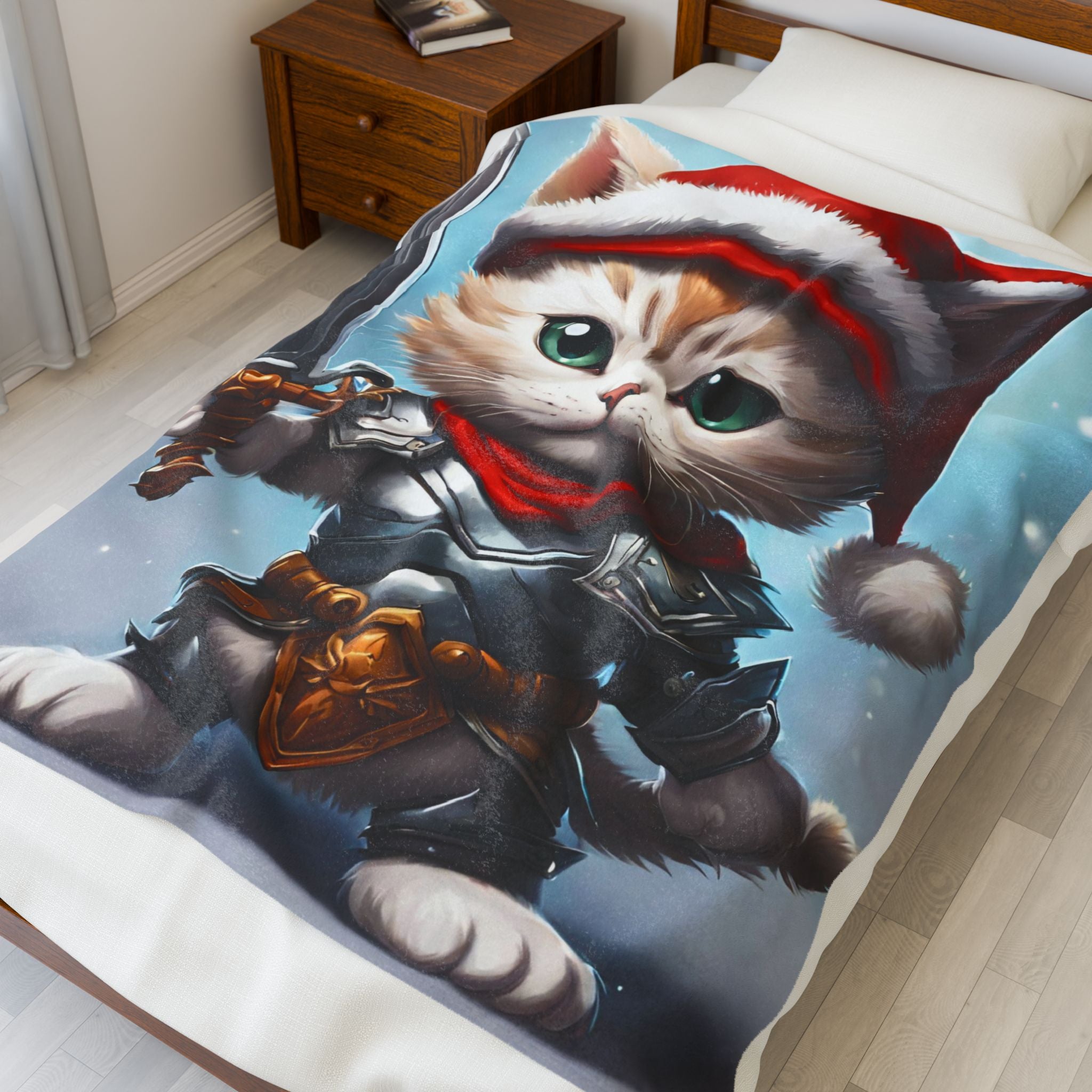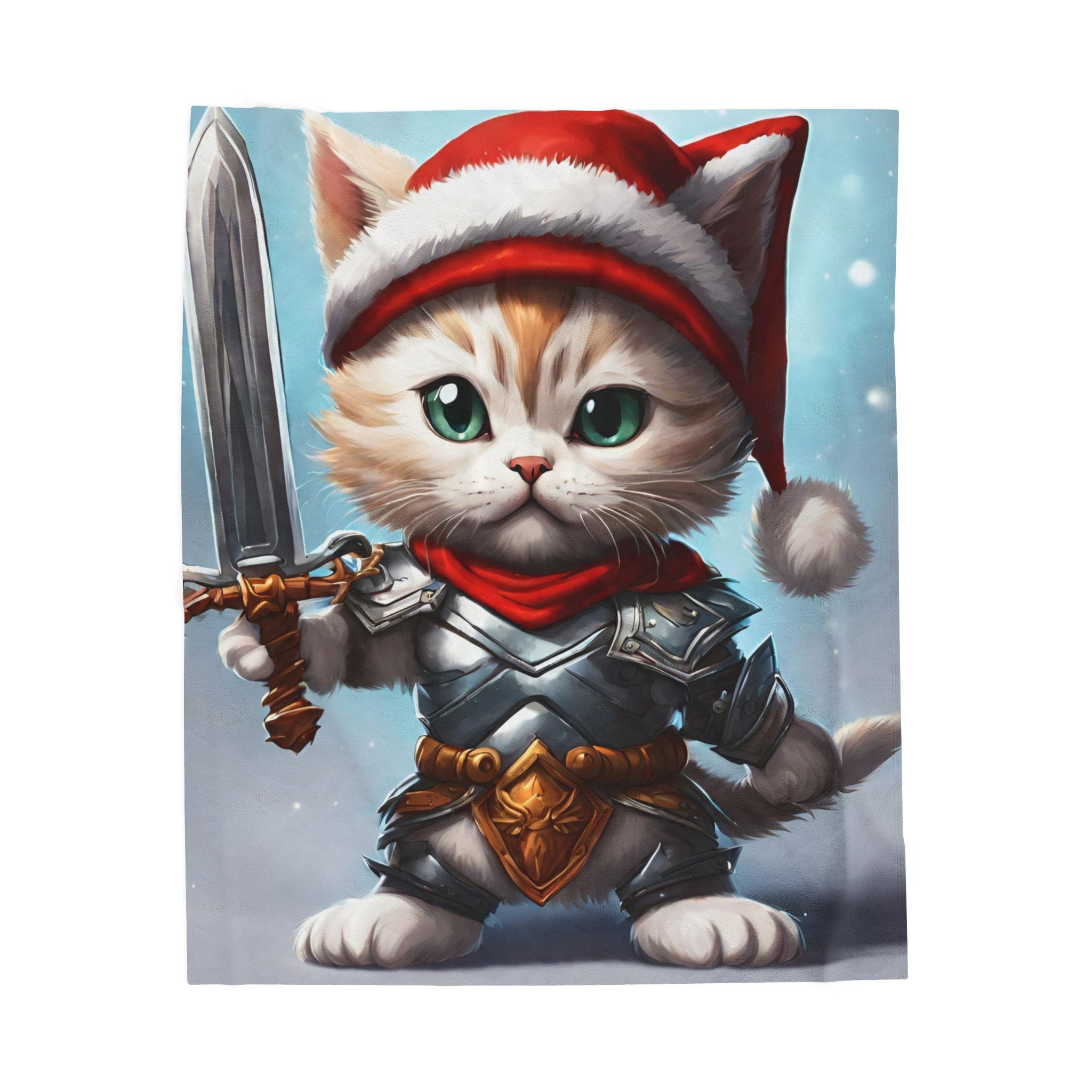 Christmas Blankets Kids Adults Blankets Velveteen Plush Blanket Cat Lovers Christmas Gift Santa Warrior Kitten Holiday Gift Cat Holiday Gift