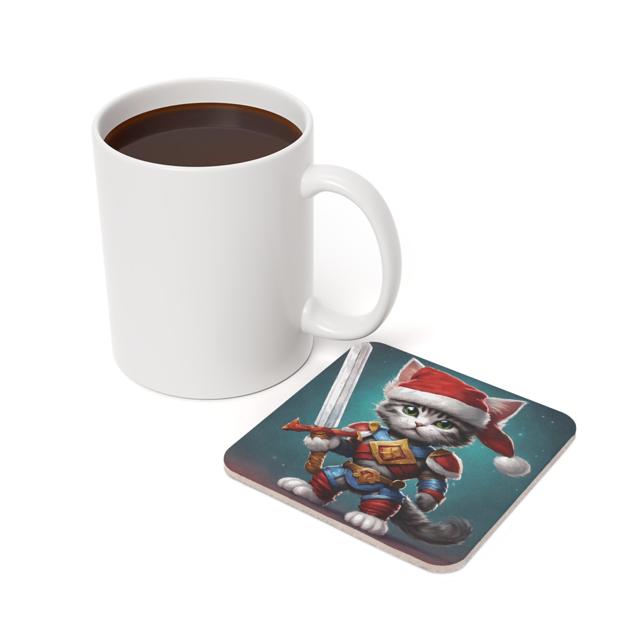 Christmas Drink Coaster Kitten Drink Holder Santa Warrior Kitten Snow Sled Cat Lover Cork Coaster