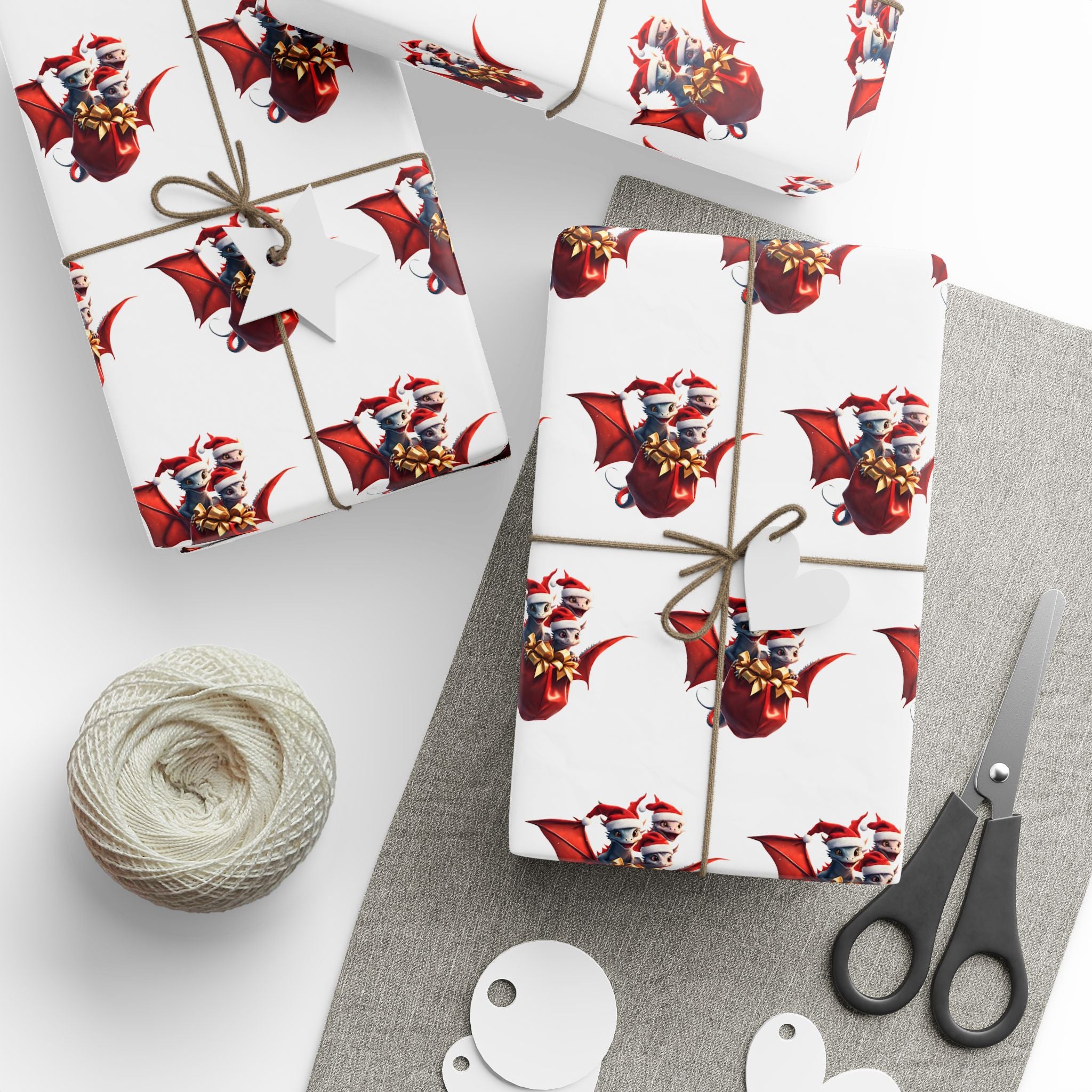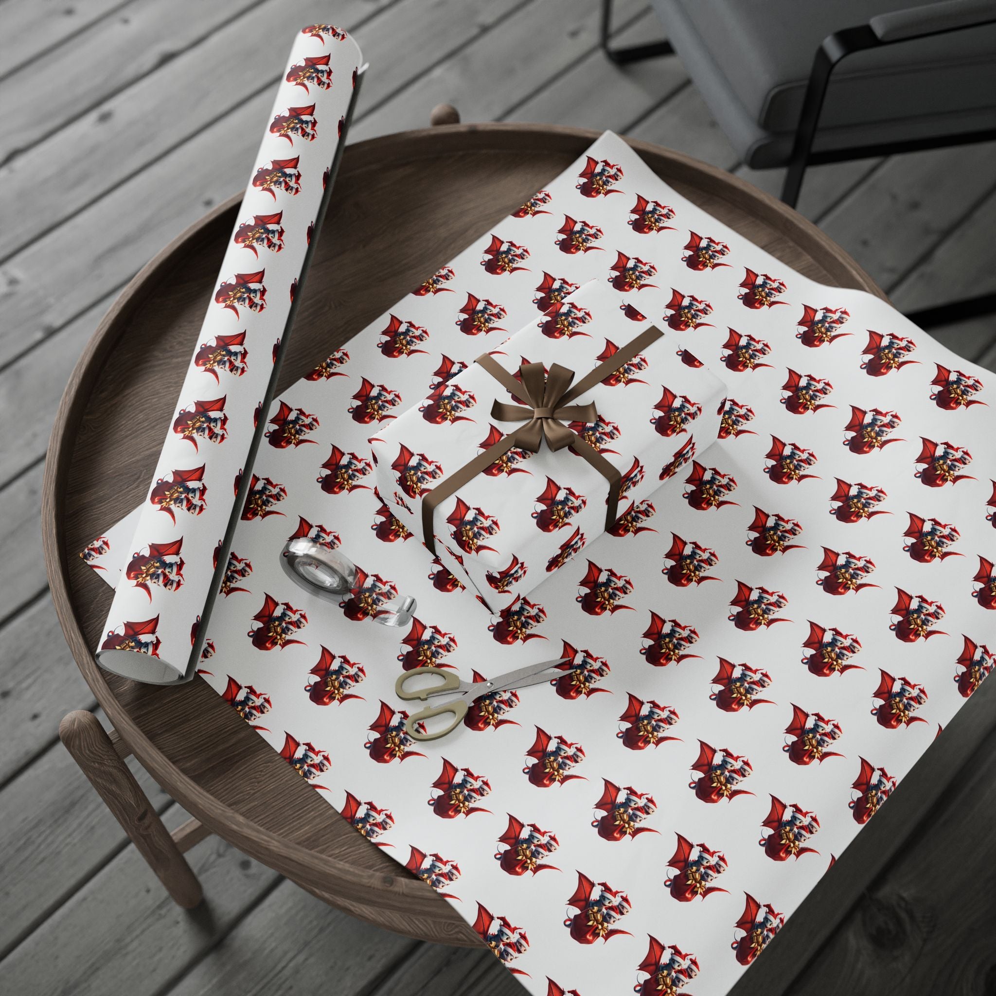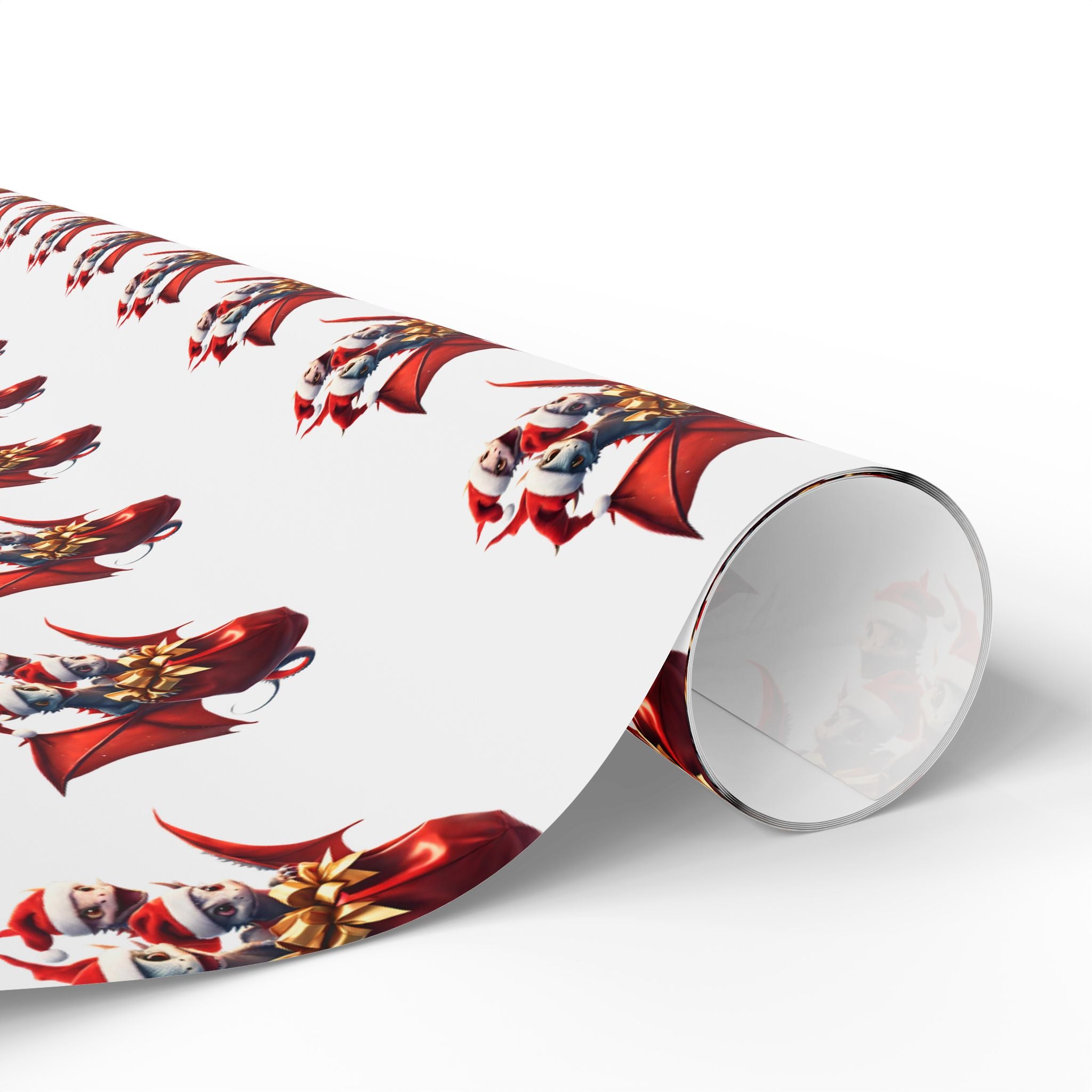 Christmas Wrapping Paper, WHITE, Dragon Gift Wrap, Red Holiday Paper, Flying Dragon Presents, Holiday Gift Wrap Roll
