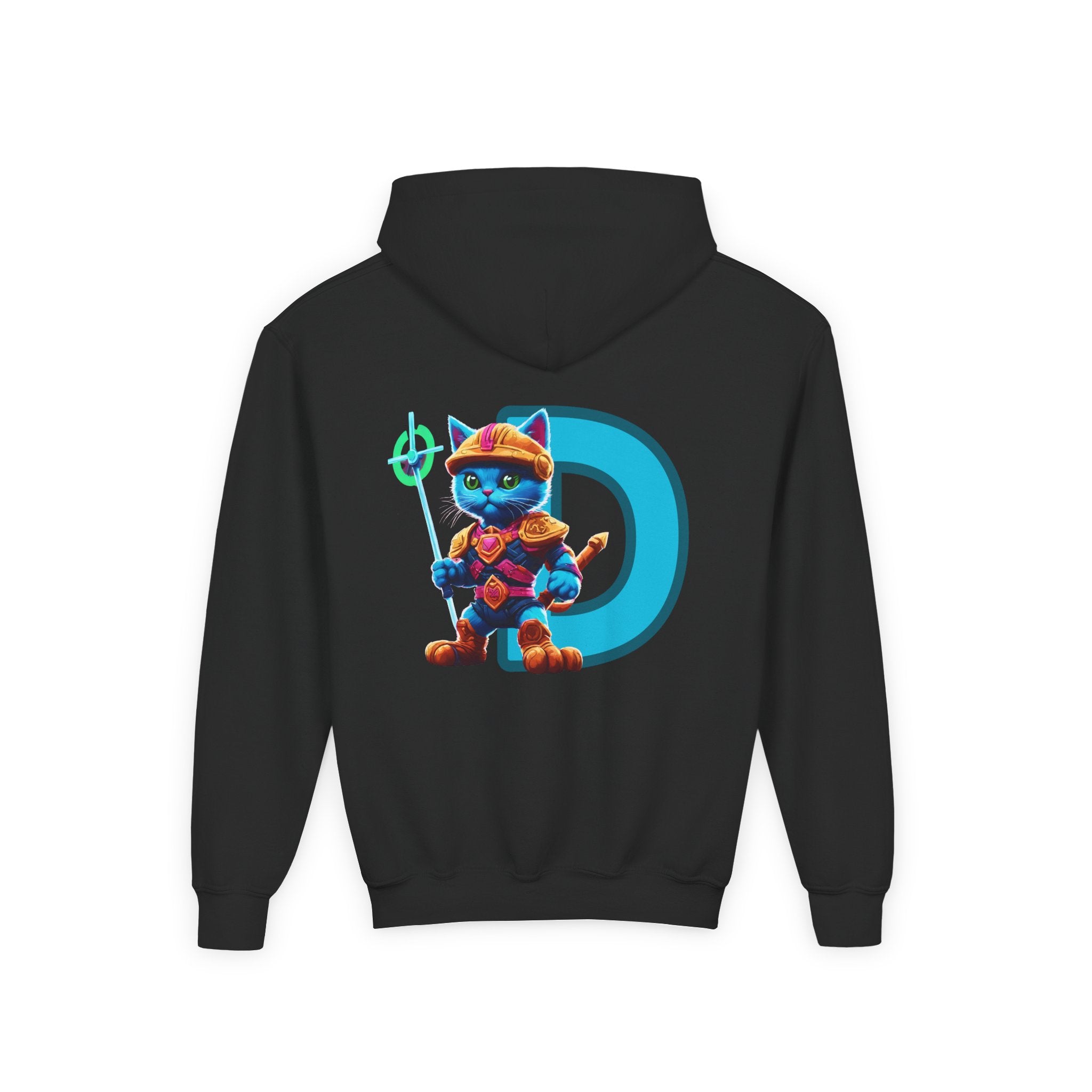 CUSTOM Letter D PERSONALIZED Warrior Cat Boys or Girls Hoodie Sweatshirt (ADD NAME TO FRONT)