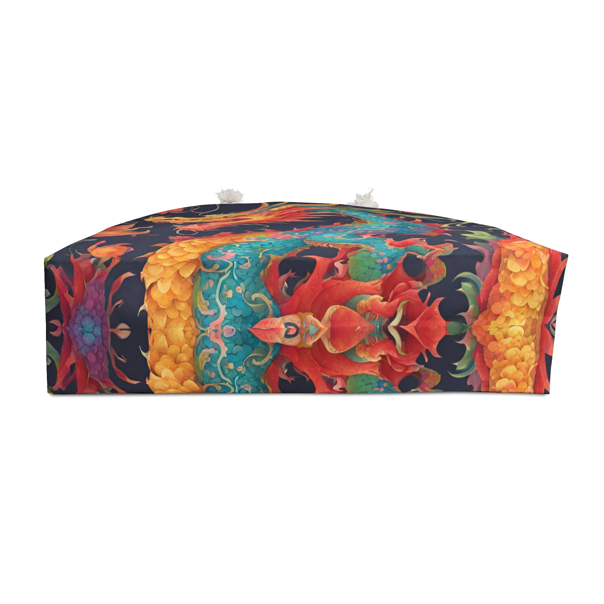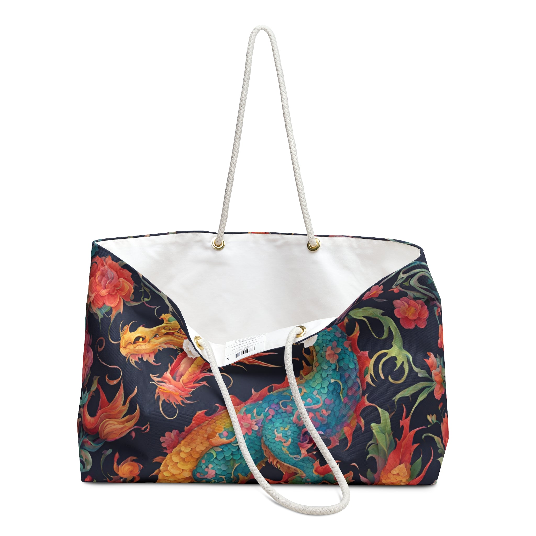 Custom Weekender | Japanese Dragon Travel Bag | Flowered Floral Serpent Japan Style Cruise Airplane & Hotel Road Trip Overnight Carrier