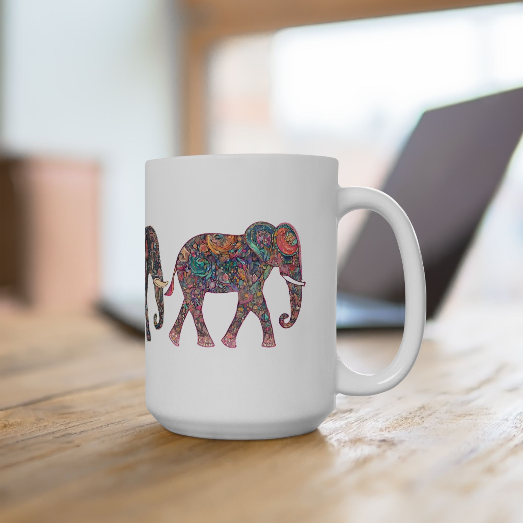 Cute Elephant Coffee Mug | Floral Pattern Design Elephants Cup | Animal Collectors Gift | Rise and Shine Morning Tea Wake up Mug