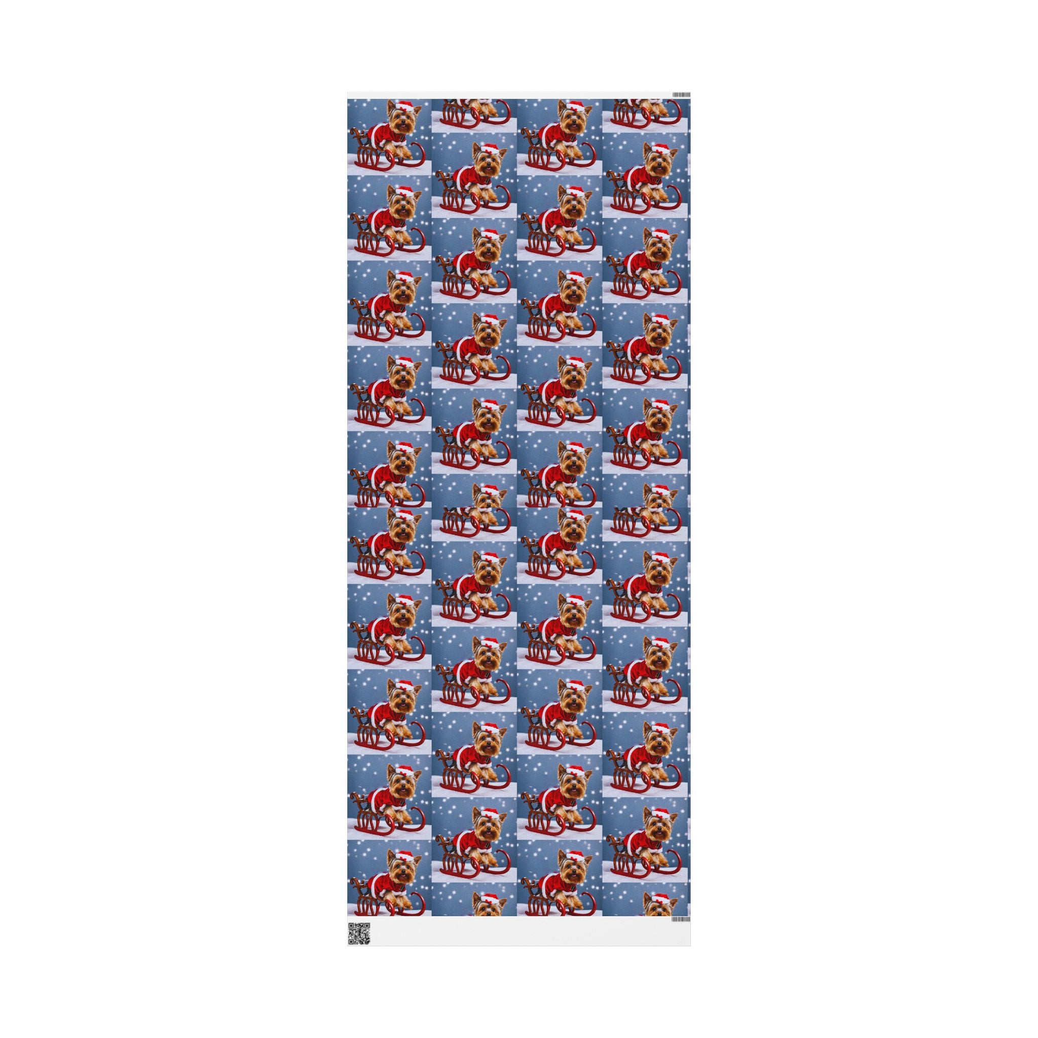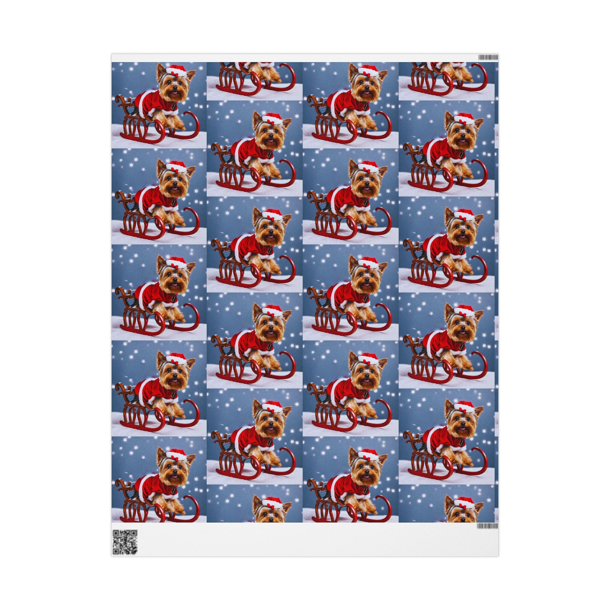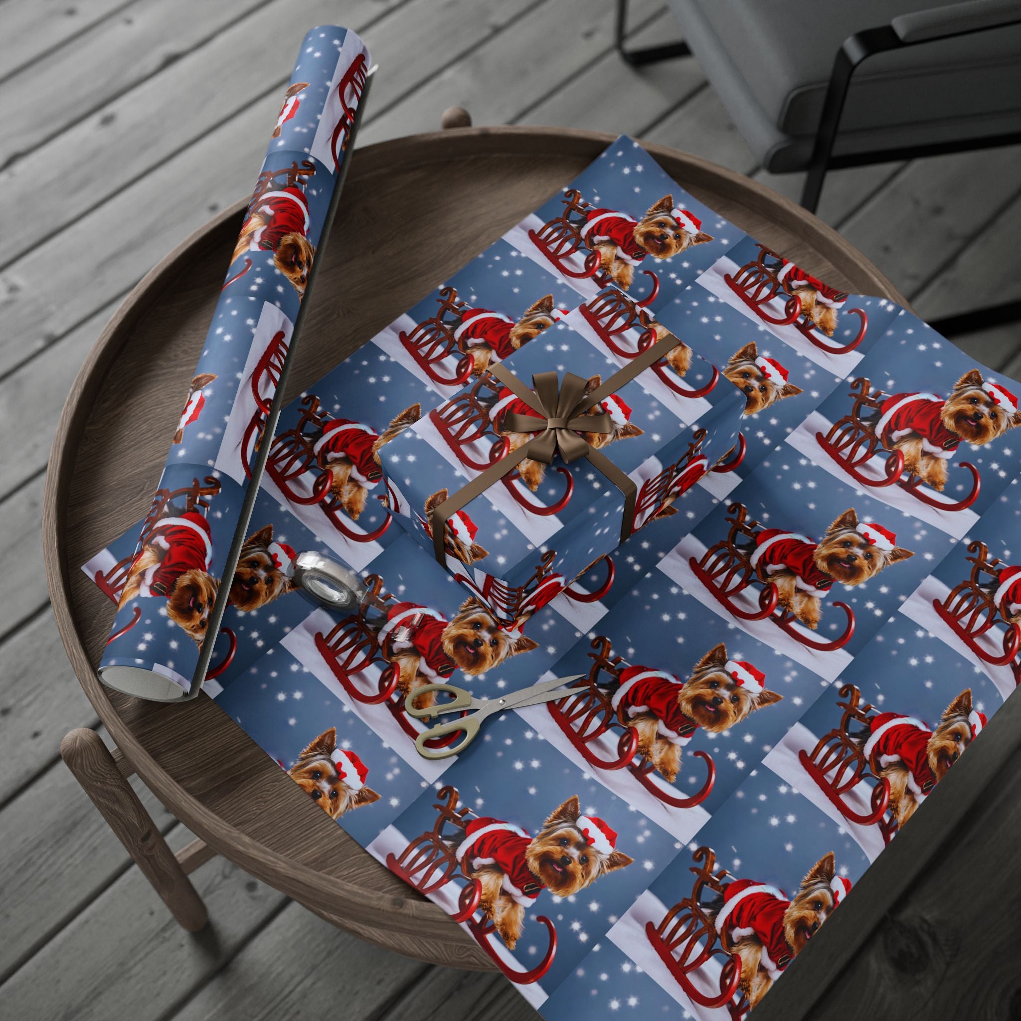 Dog Christmas Wrapping Paper Yorkshire Terrier, Santa Suit and Sled Yorkie Gift Wrap, Holiday Gift Wrap Roll