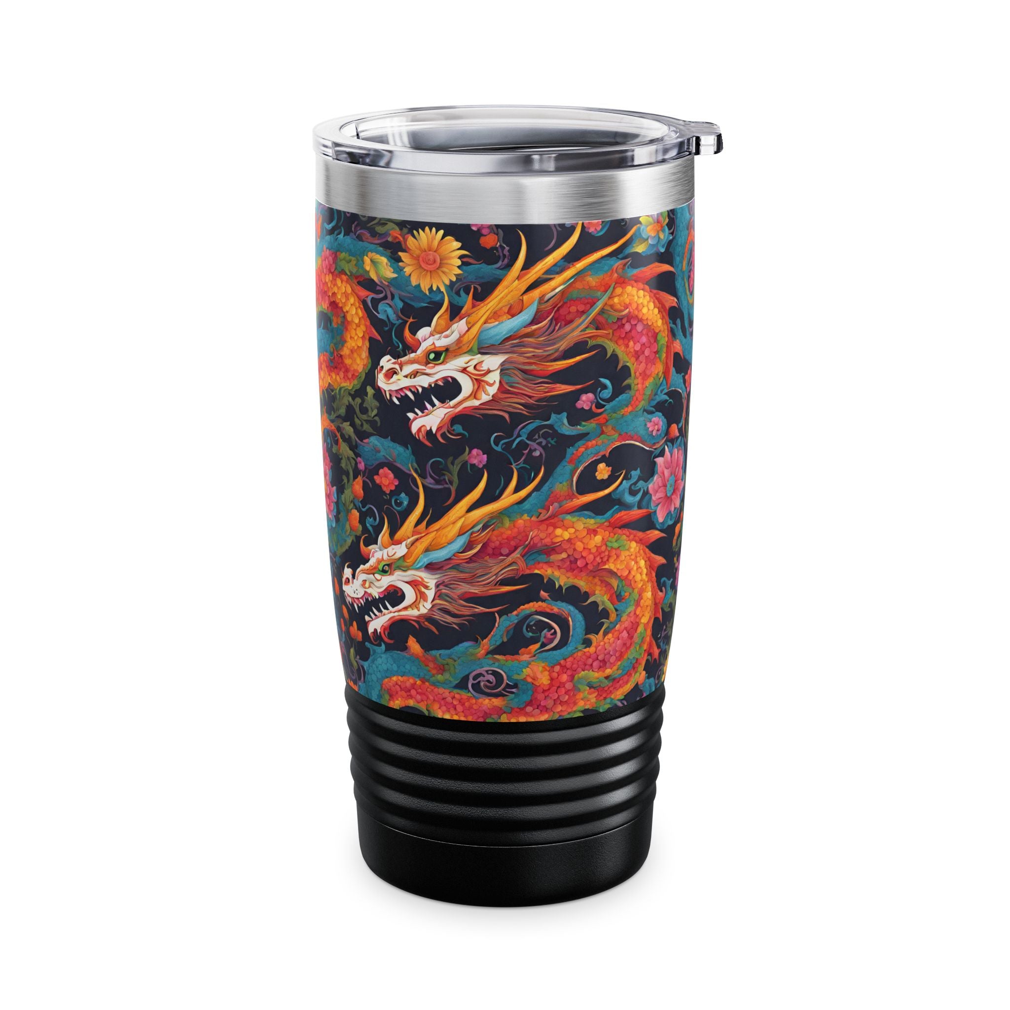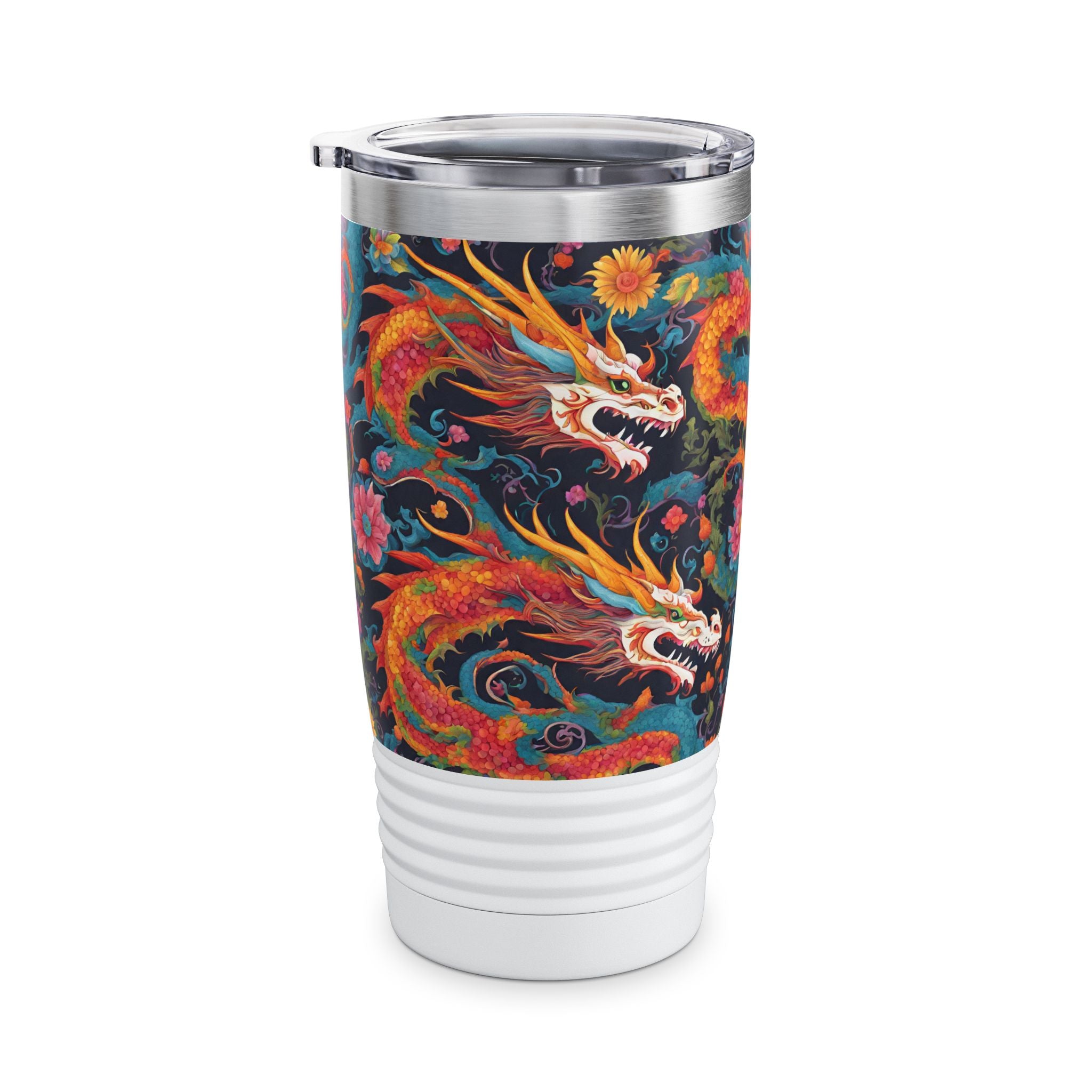 Dragon Tumbler | Japanese Flower Pattern Drink Companion | Floral Japan Insulated Travel Mug | Exercise Office College Road Trip Coffee Gift