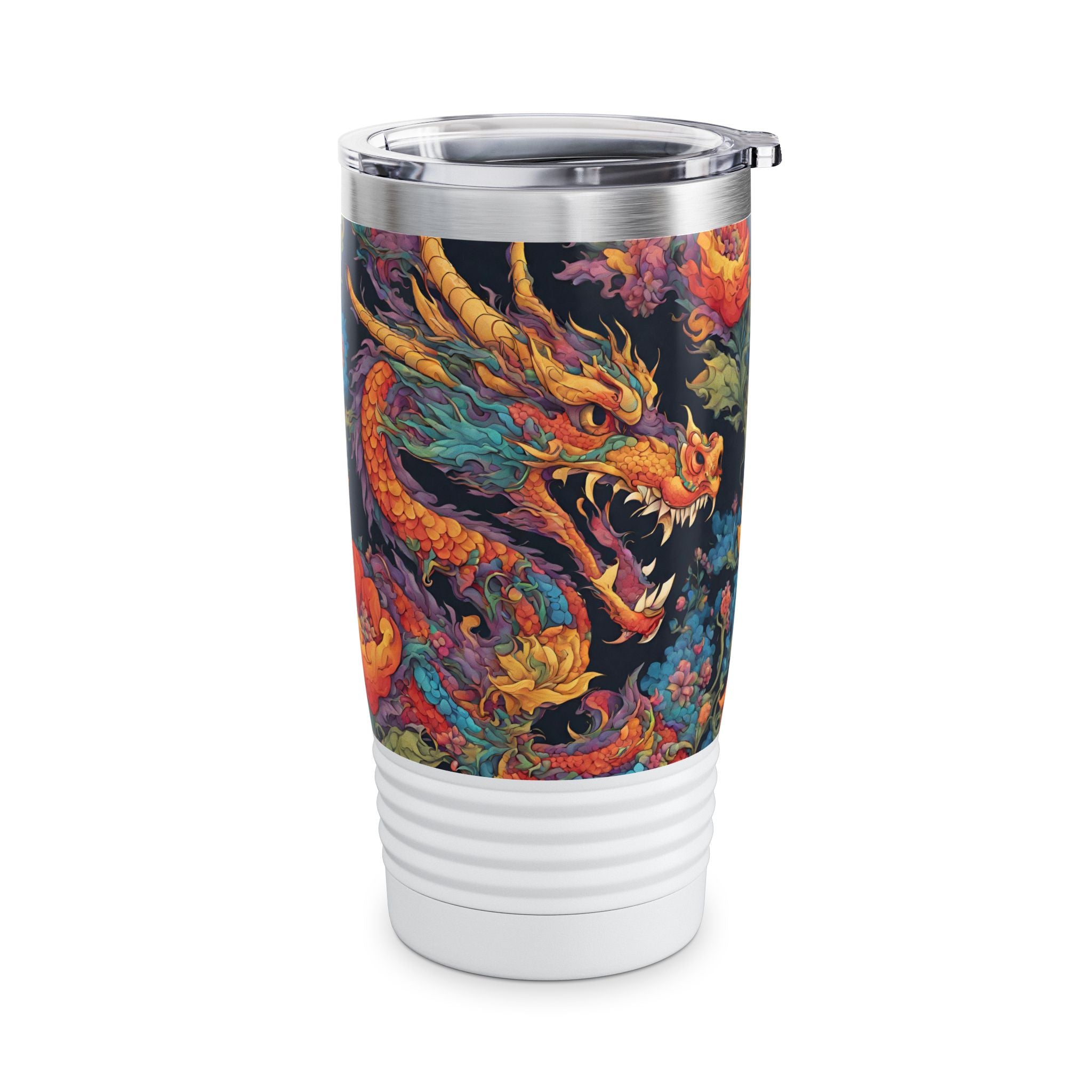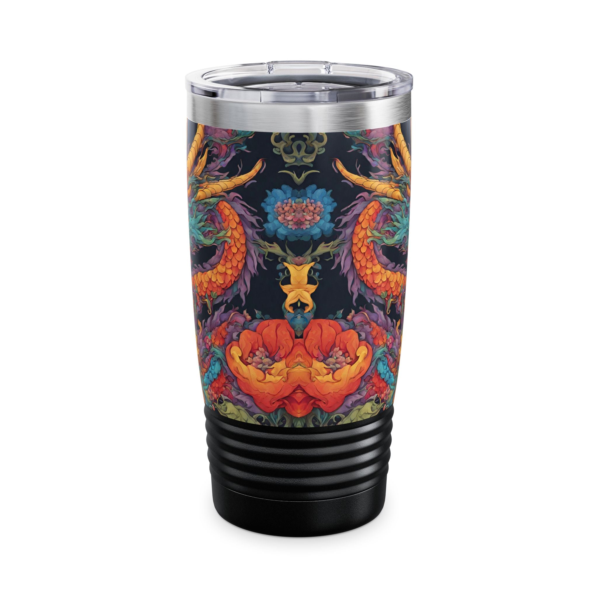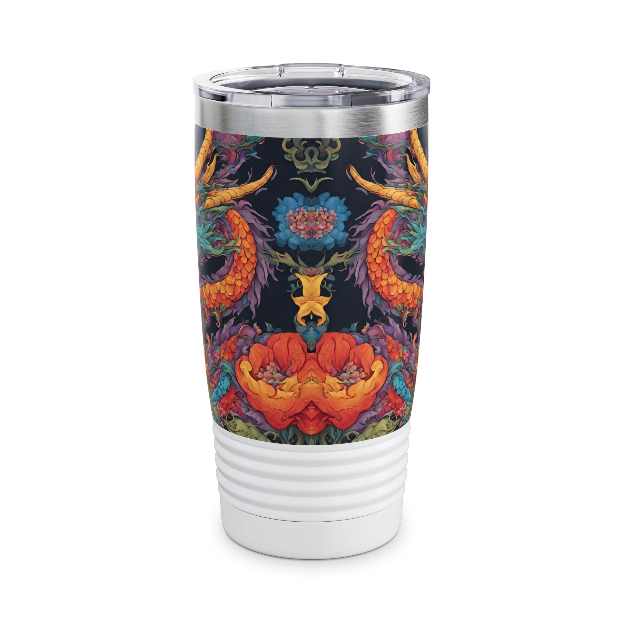 Dragon Tumbler | Japanese Flower Pattern Drink Companion | Floral Japan Insulated Travel Mug | Exercise Office College Road Trip Coffee Gift