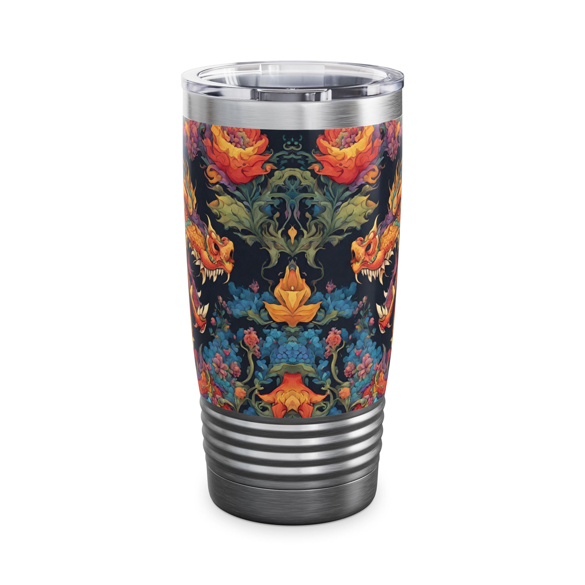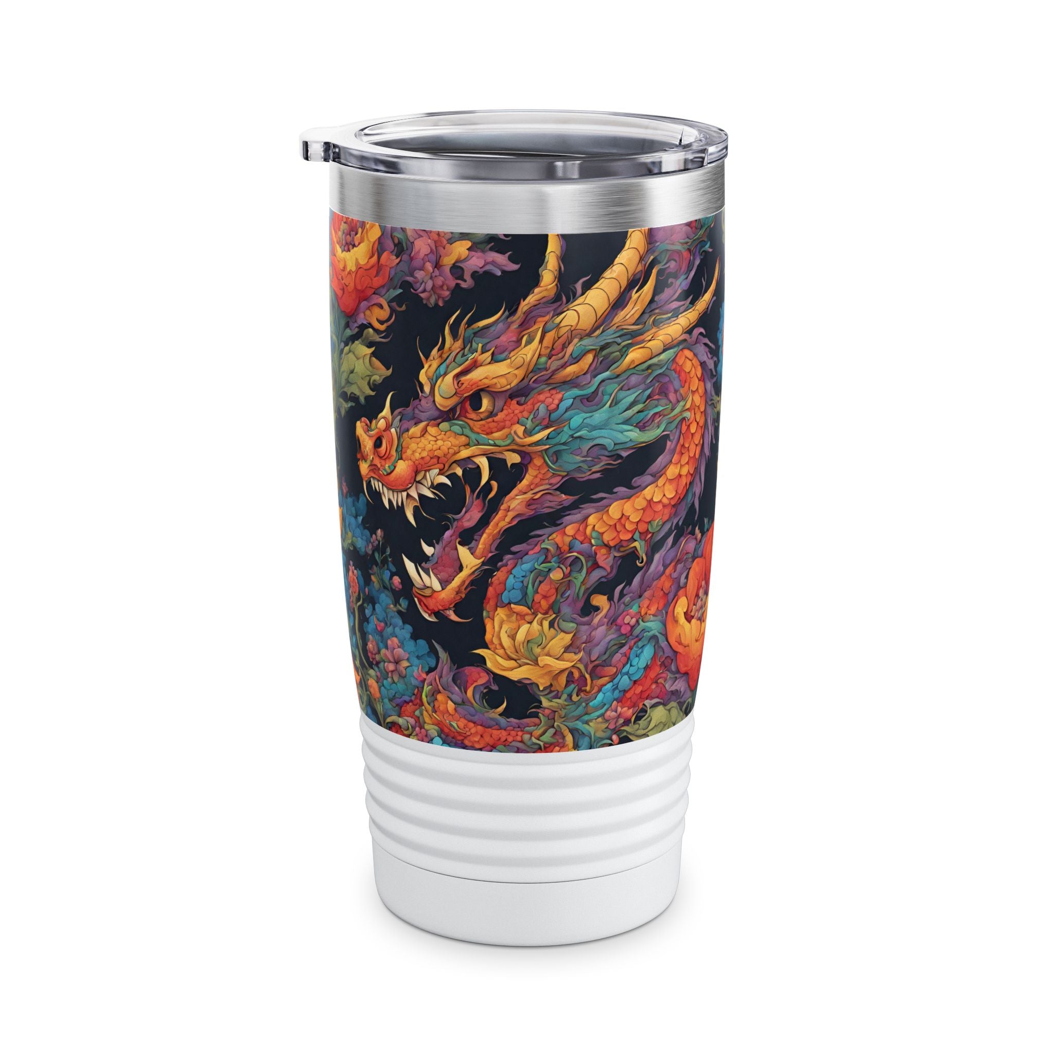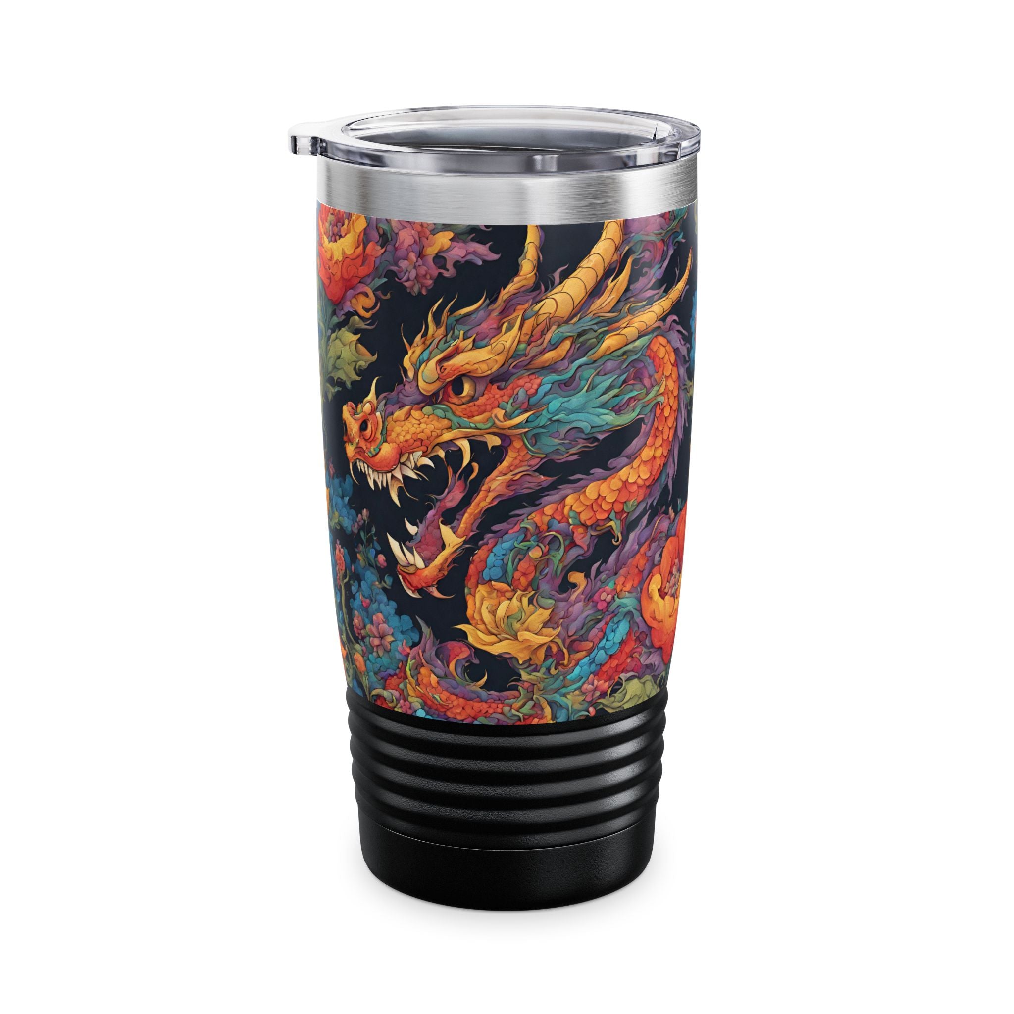 Dragon Tumbler | Japanese Flower Pattern Drink Companion | Floral Japan Insulated Travel Mug | Exercise Office College Road Trip Coffee Gift