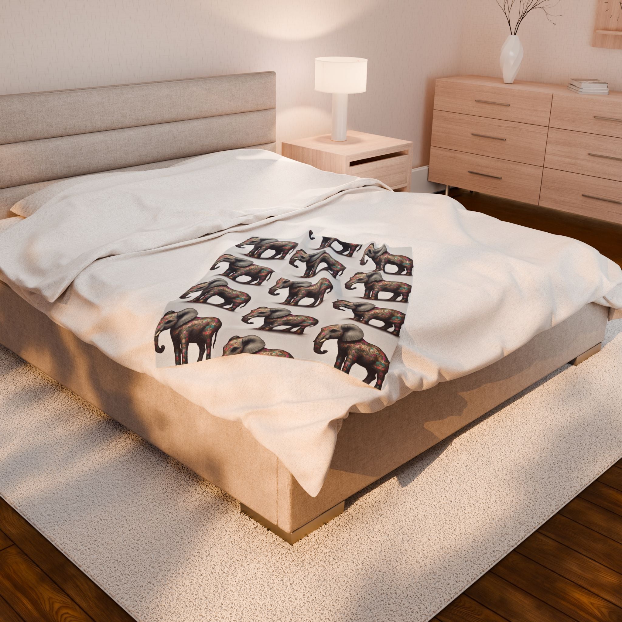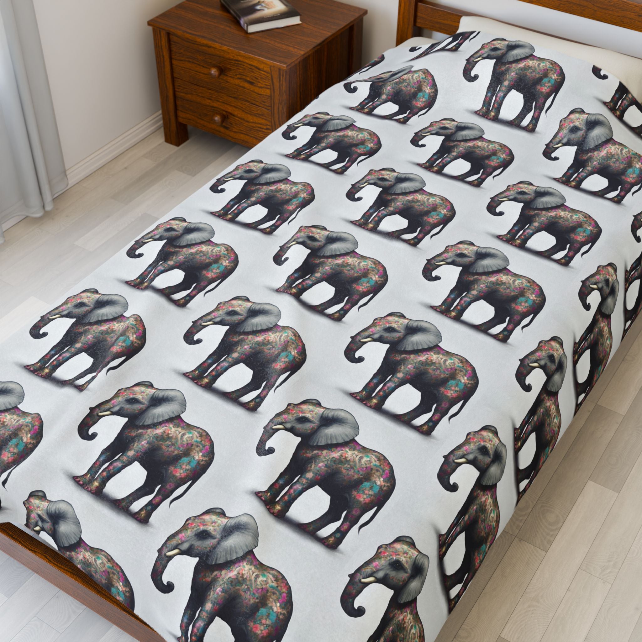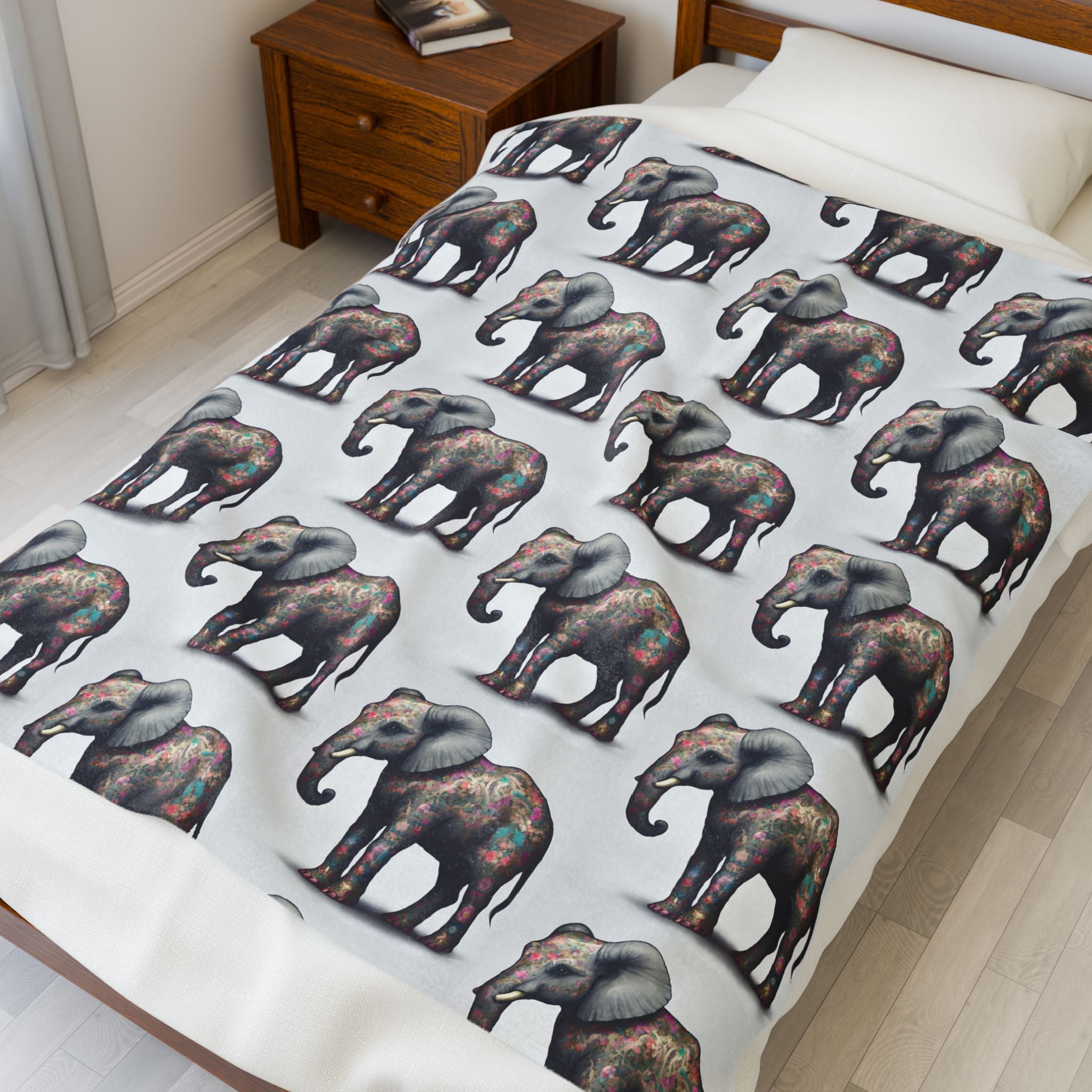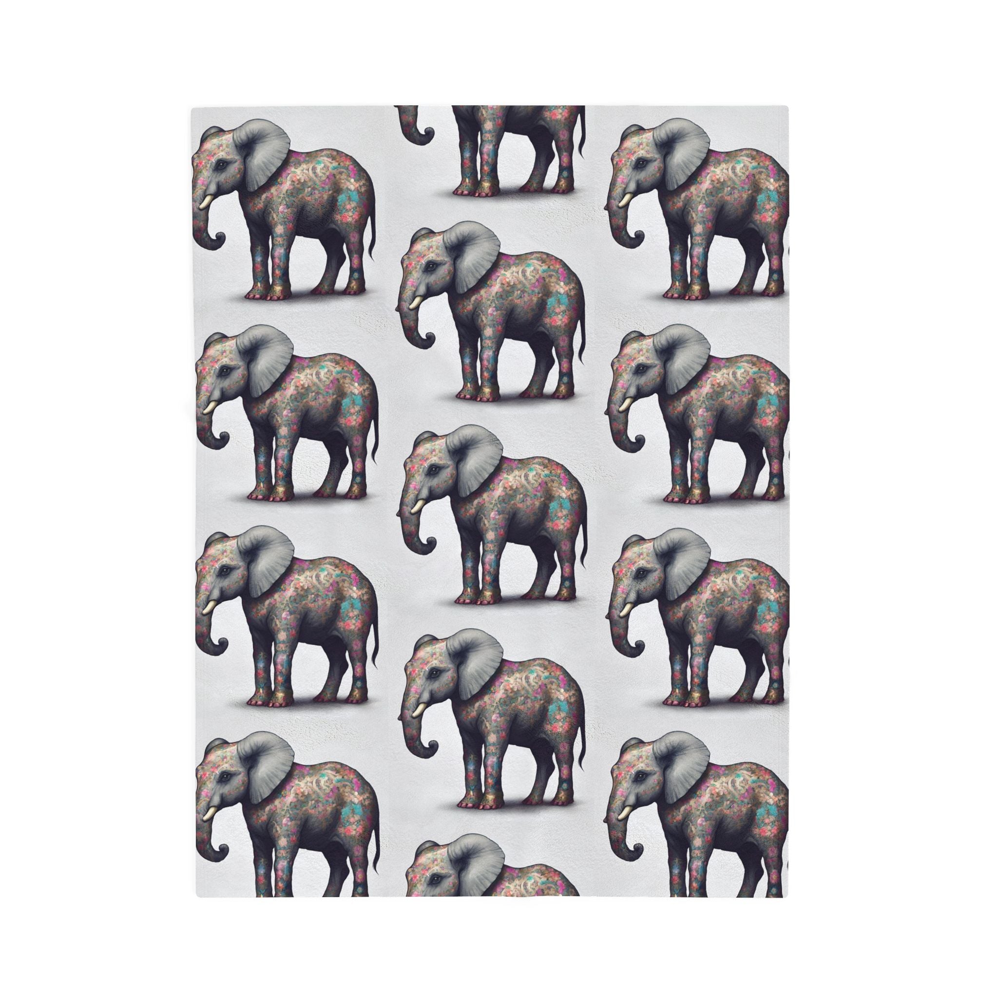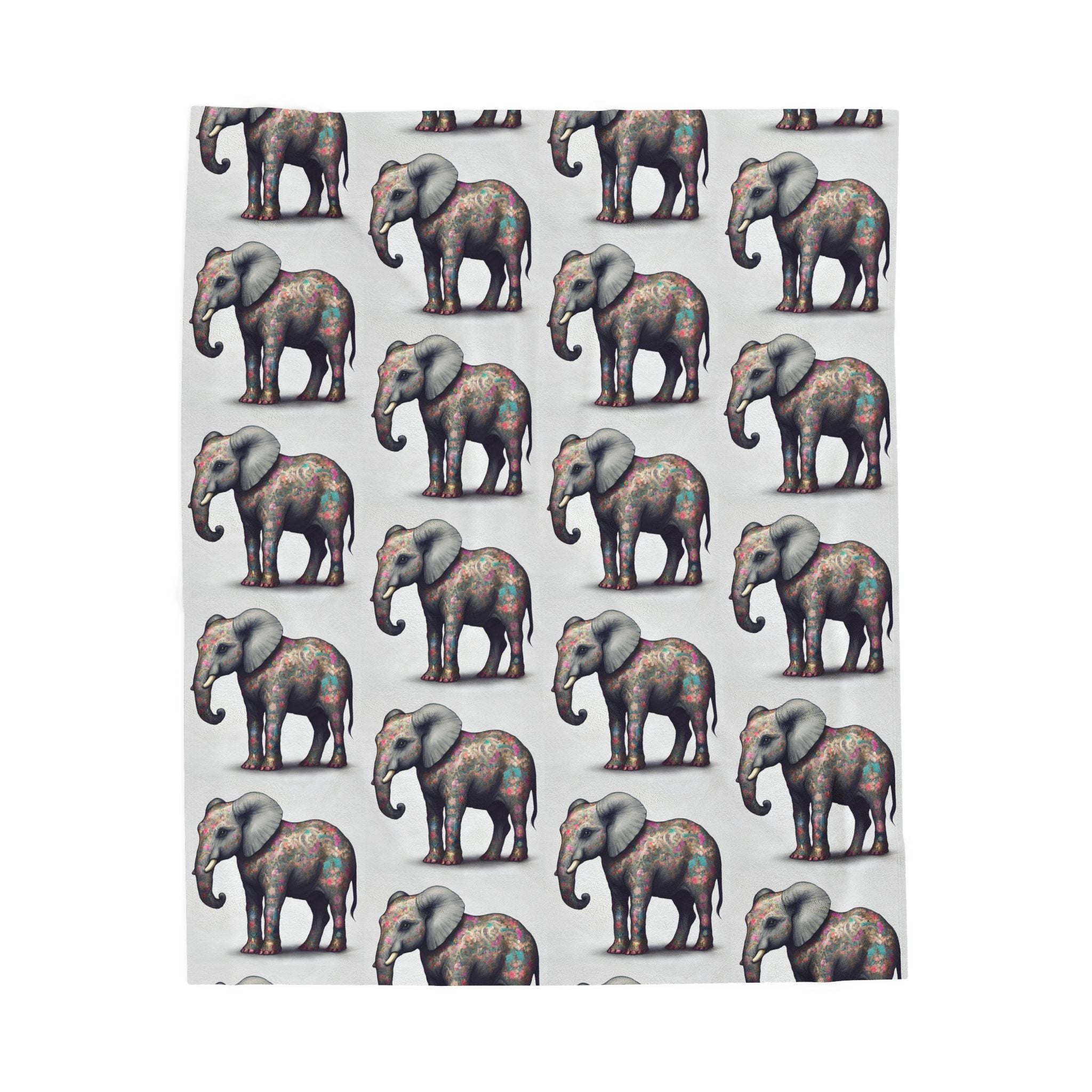 Elephant Blanket Gift | Flower Pattern Animal Lover Warm Fleece Throw | Majestic Jungle Safari Kingdom Bed or Couch Cover Sheet