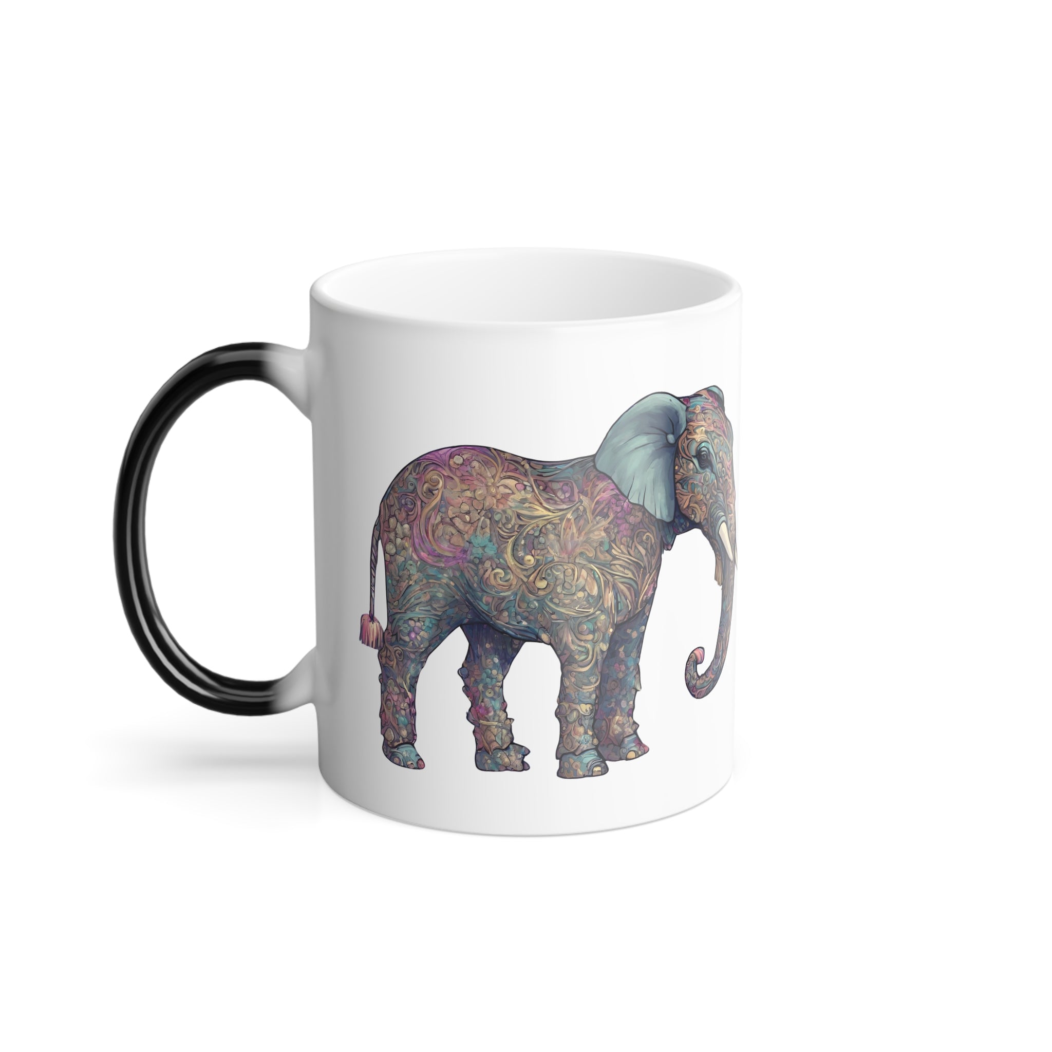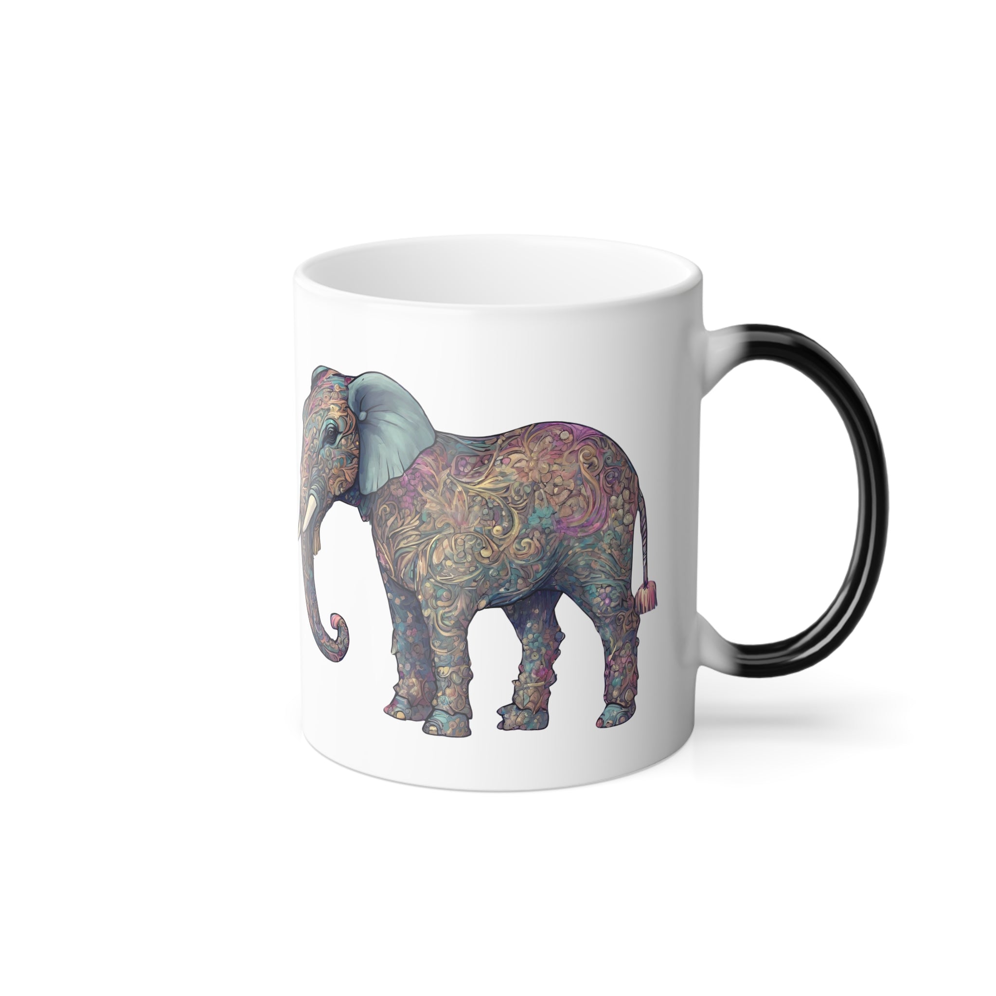 Elephant Collector Gift, Animal Color Changing Coffee Mug, Beautiful Art Style Pattern Wild Safari Cup, African Savanna Inhabitant Tea Cup