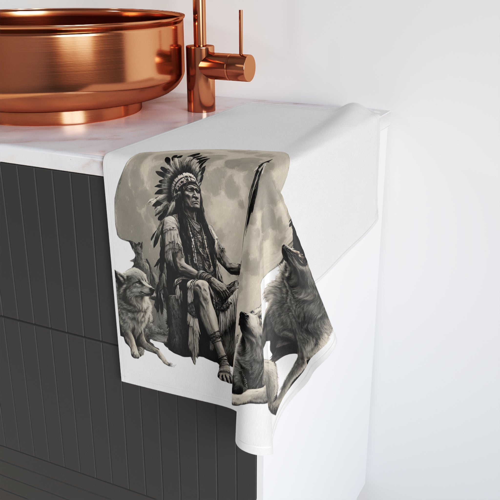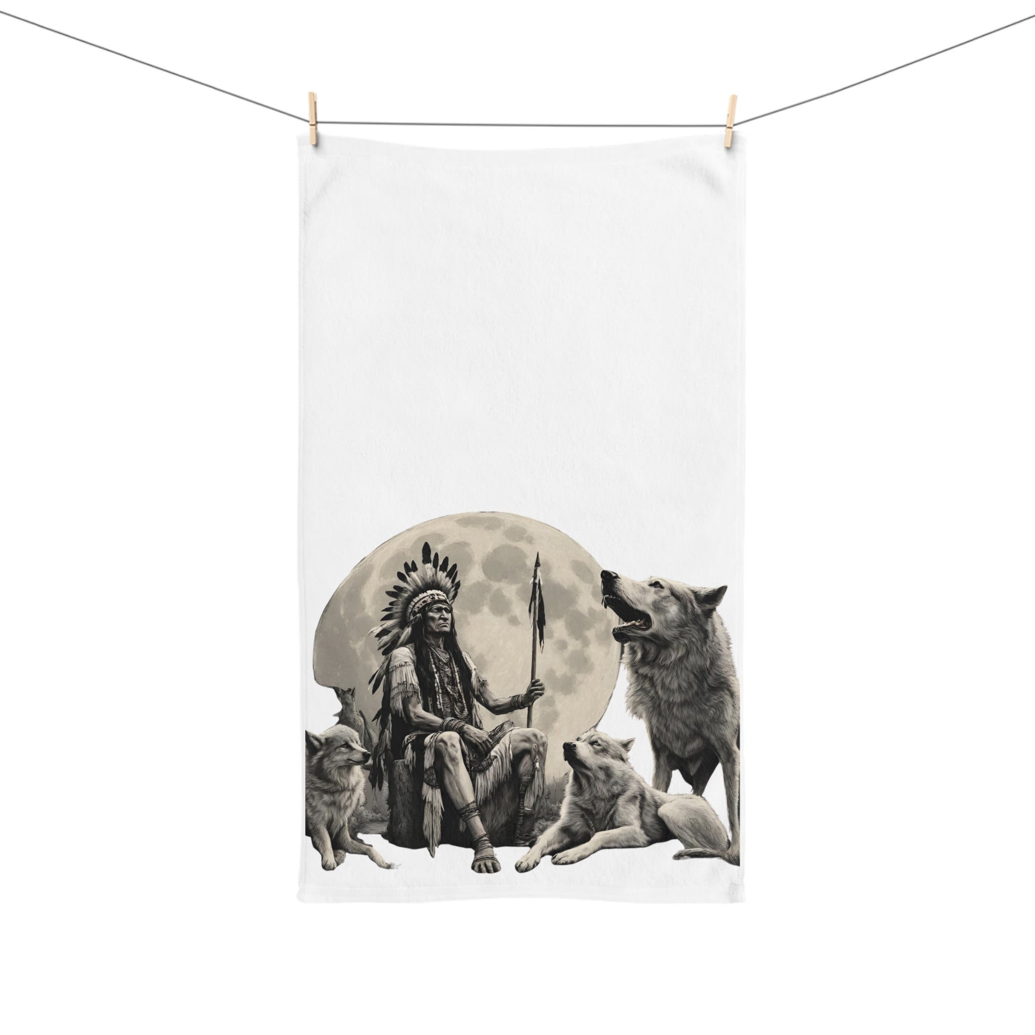 INDIAN CHIEF OF MOON WOLVES Hand Towel