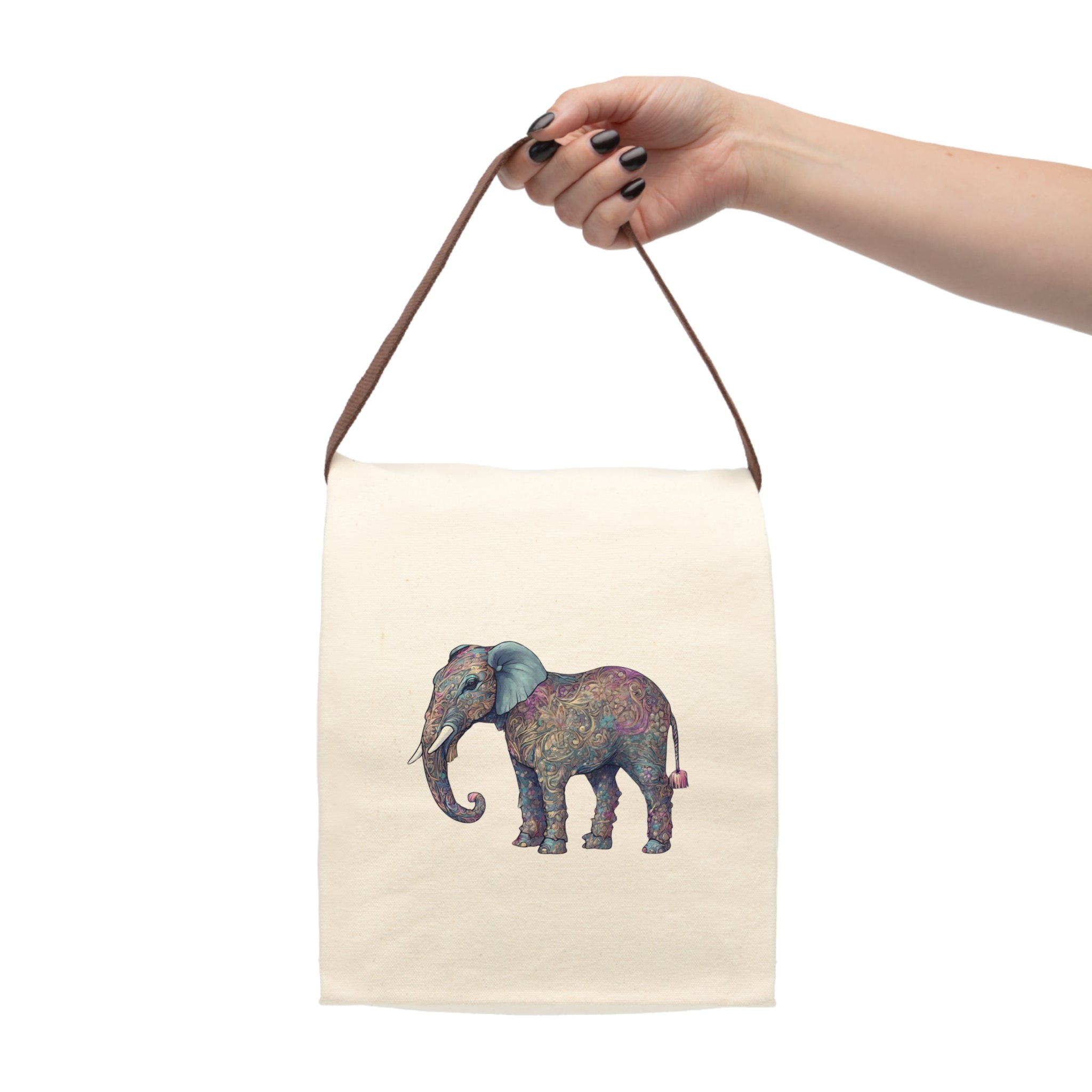 Flower Elephant Canvas Lunch Bag, Floral Pattern Animal Work Office & College Gift, Majestic Safari Kingdom Mammal Meal or Snack Carrier