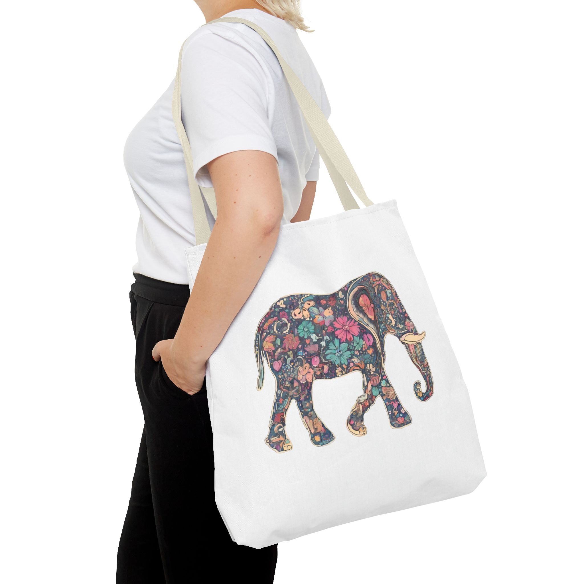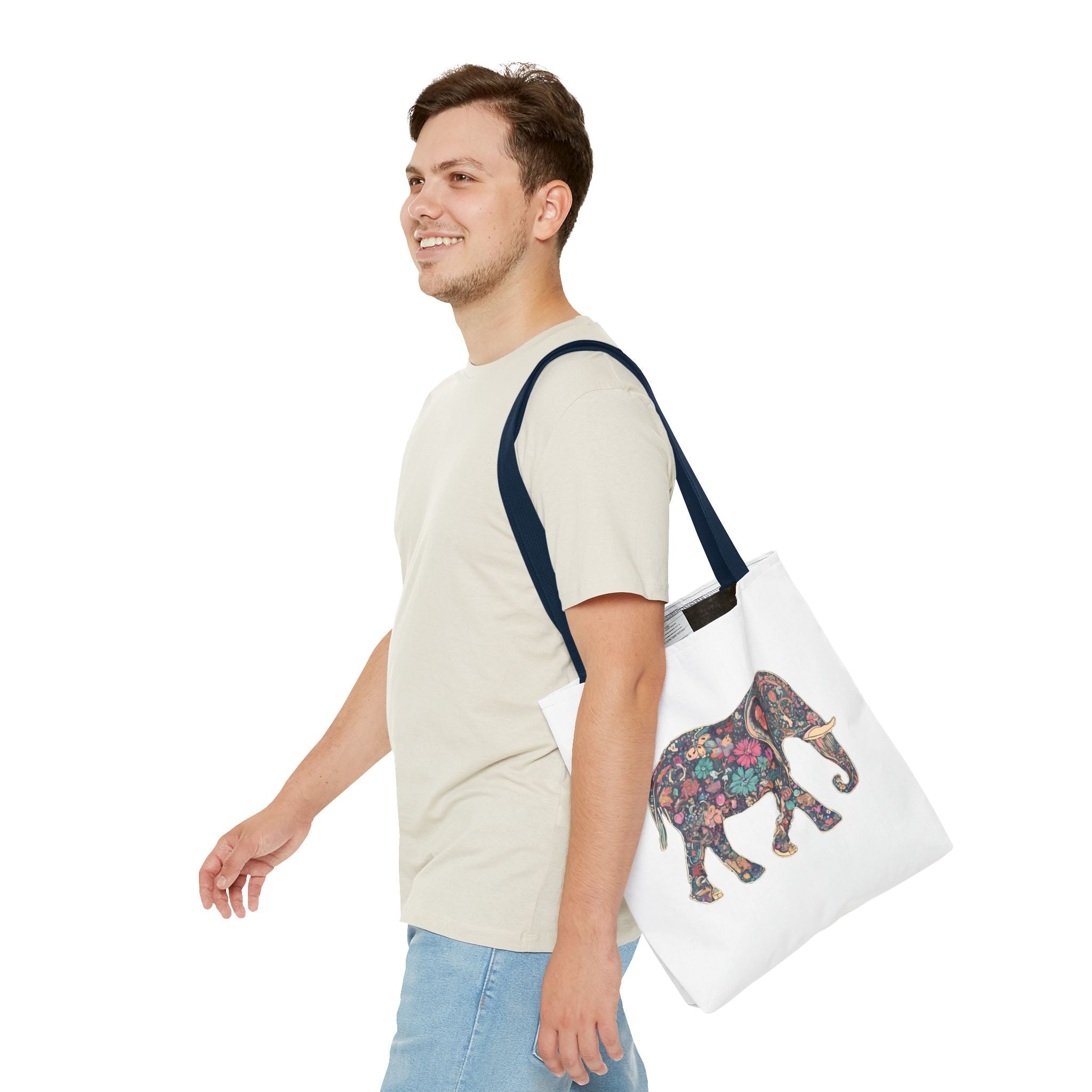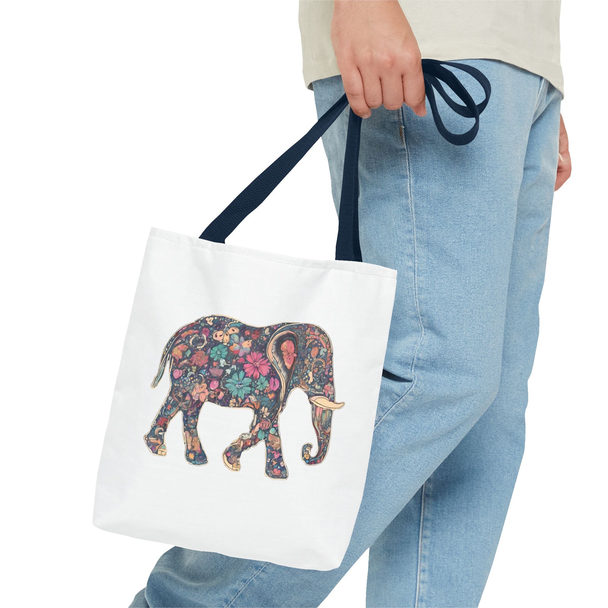 Flower Elephant Lovers Tote | Majestic Color Pattern Custom Grocery Bag | Animal Gift Office Laptop Travel | Wild Safari Business Traveler