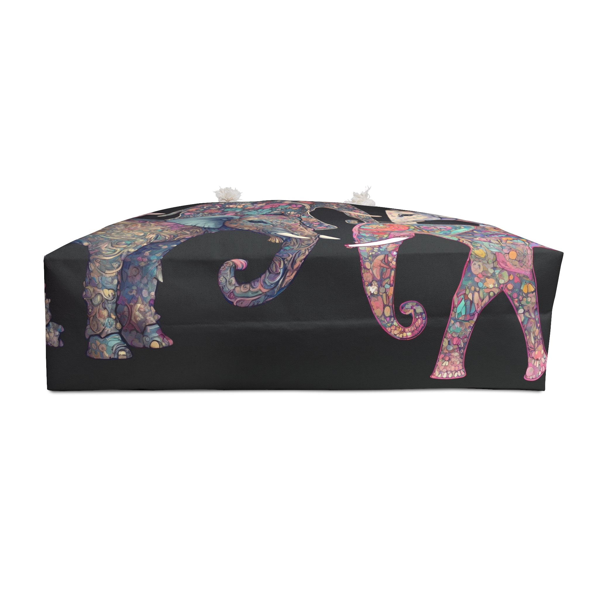 Flower Elephant Pattern Collage Weekend Bag | Floral March of the Elephants Travel Tote | Animal Lovers Collector Overnight Travel Carrier