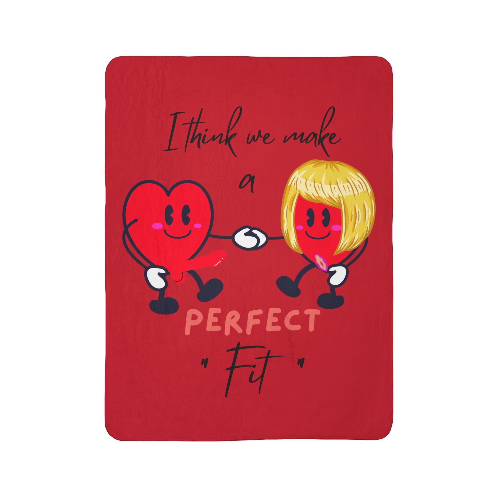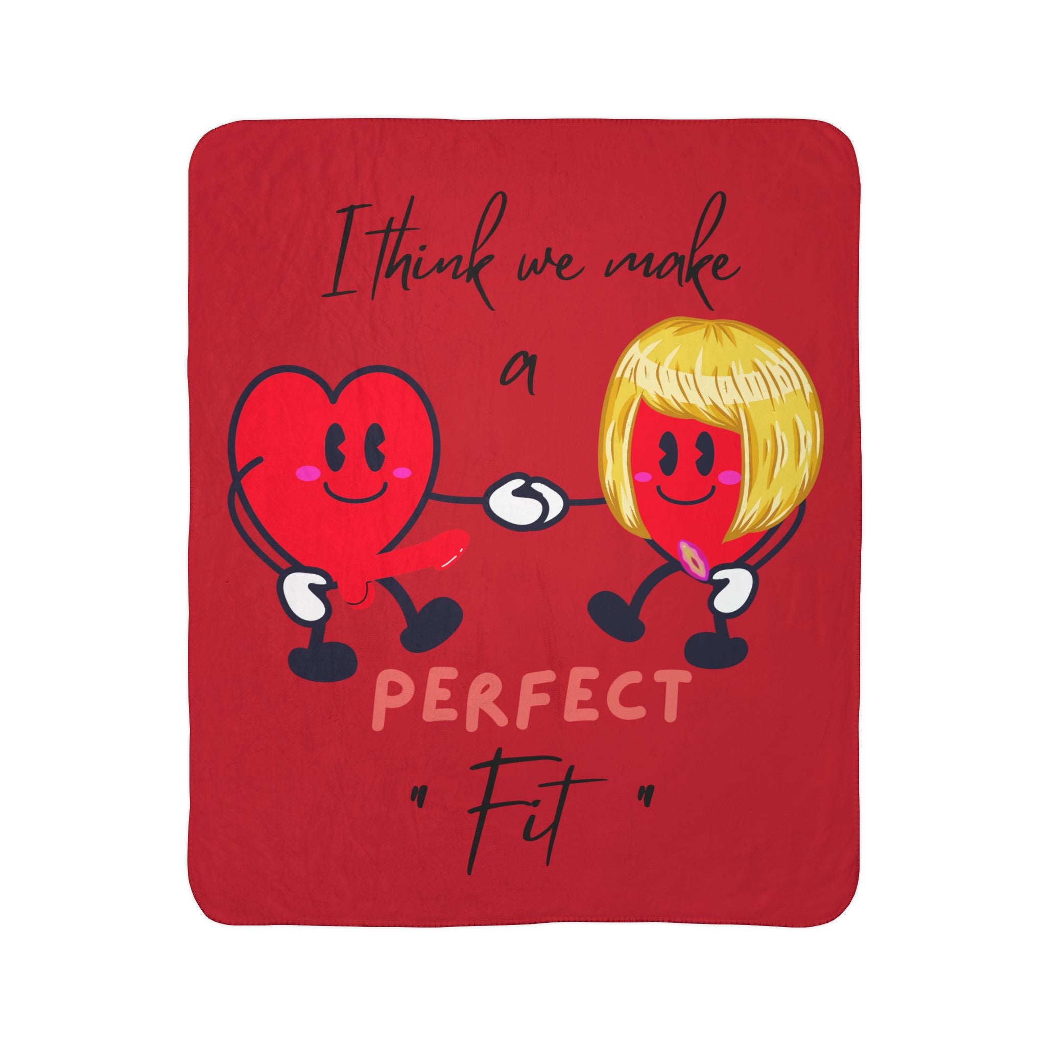 Funny Valentines Day Gift For Girl, Valentine Blanket for Her, Perfect Fit Hearts Holding Hands Adult Humor Couples Soft Sherpa Fleece