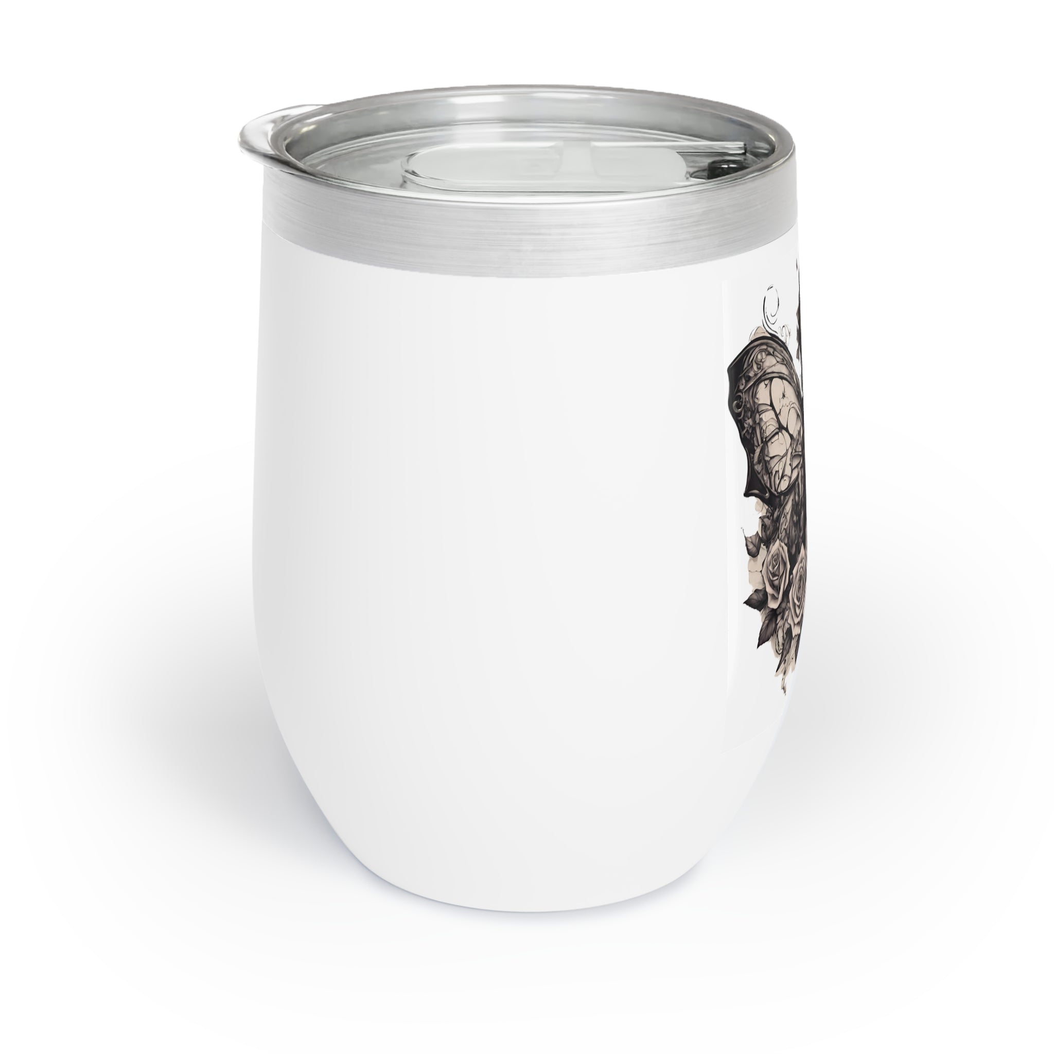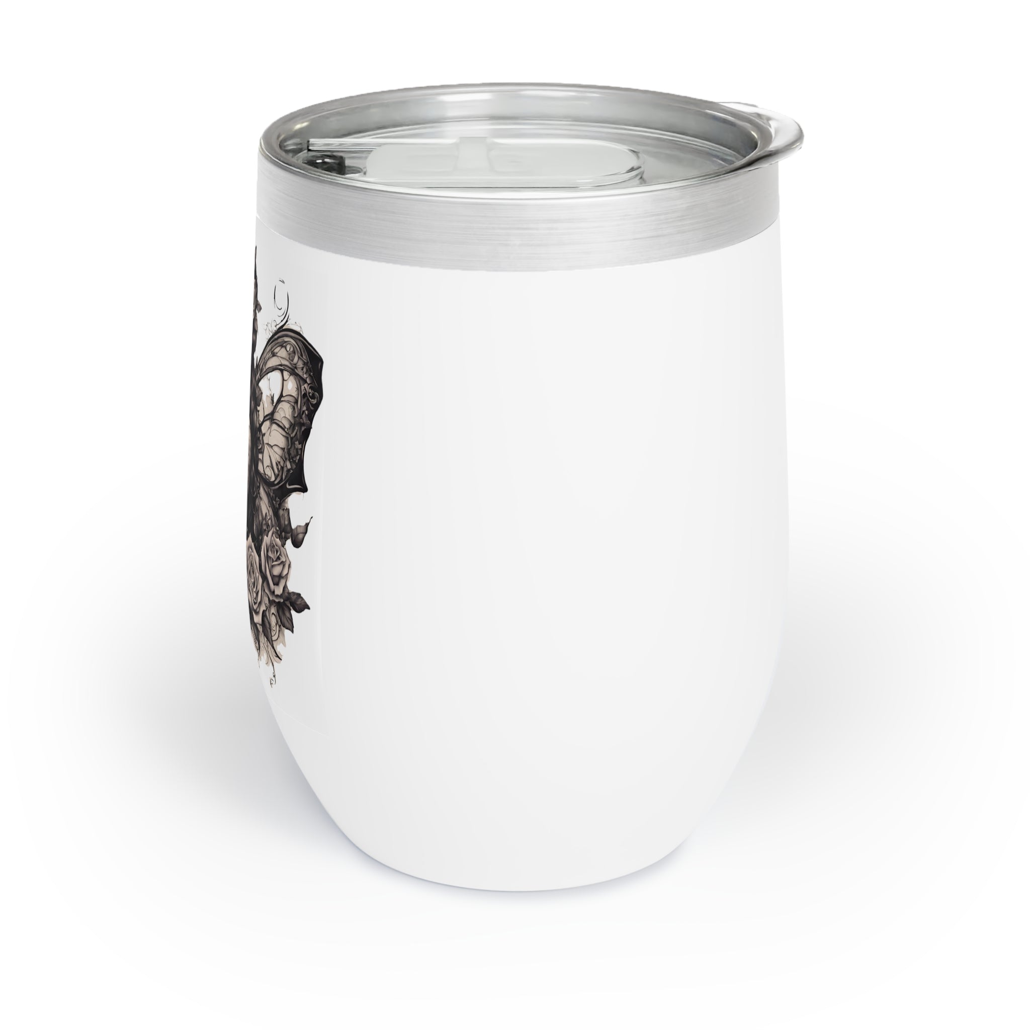 The stemless design is perfect for saloon-style drinking (no fancy stems in the Wild West), and the clear, BPA-free press-on lid with slide closure means you can take your gothic western wine anywhere—from actual saloons to modern bars to your own flowered garden.