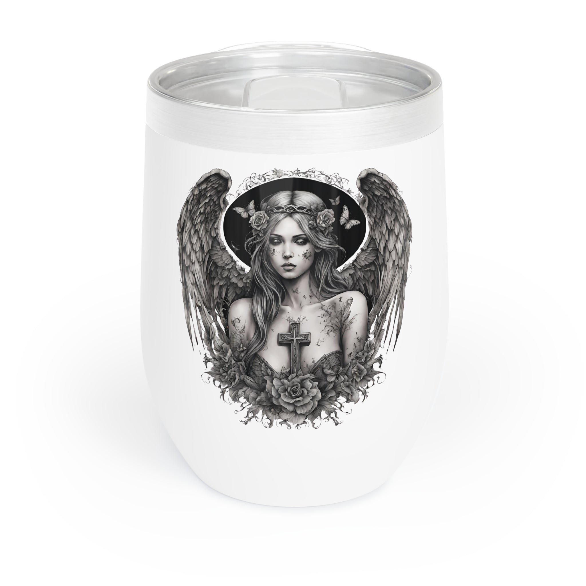 Whether you're sipping wine while contemplating the fragility of existence, finding comfort in the image of a broken but still beautiful angel, or just appreciating the poetic combination of holy crosses, butterflies, and flowers, this wine tumbler keeps your beverage at the perfect temperature. The seamless vacuum-insulated double-wall construction keeps wine cold for 12 hours or hot for 6—because even broken angels deserve perfectly chilled wine.