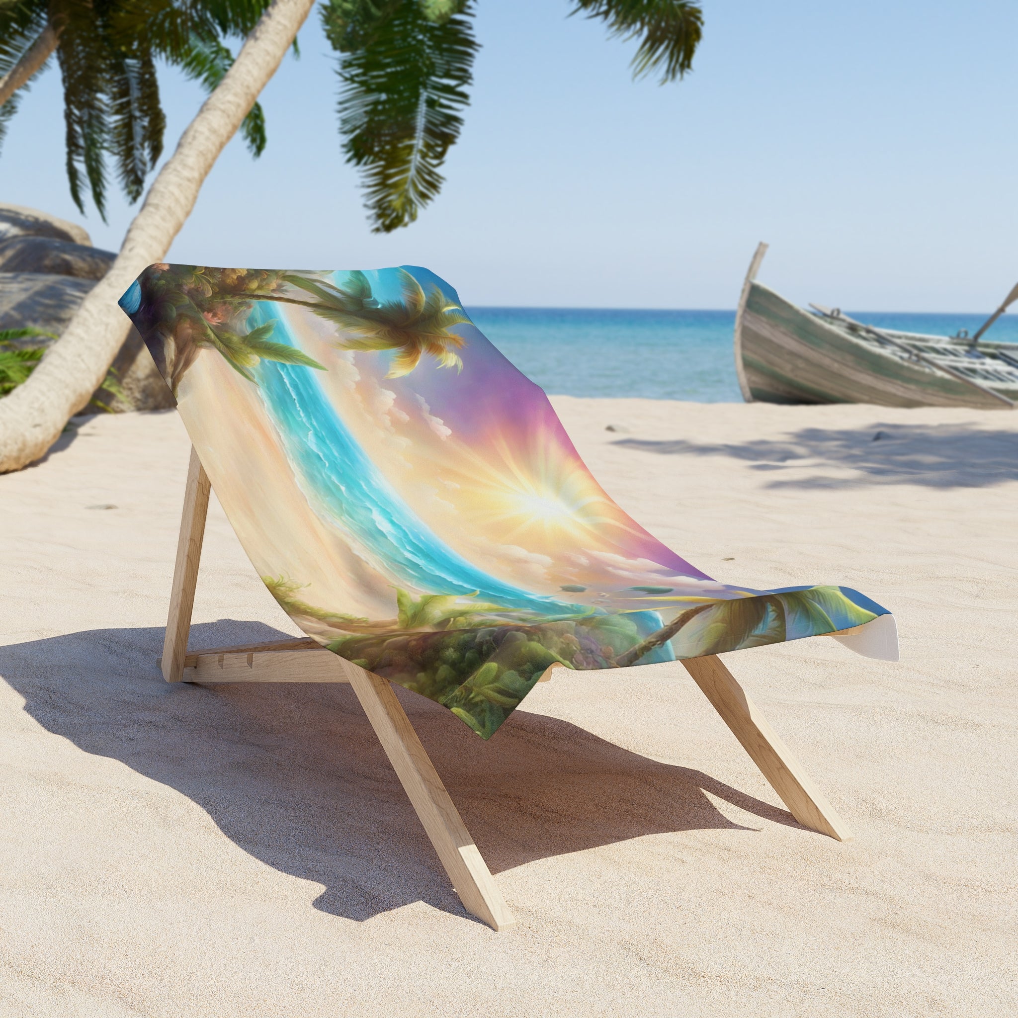 Majestic Sky Hidden Island Seashore Beach Towel | Mystic Ocean Getaway Swimming Pool Blanket | Poolside Sand & Water Deck Tanning Sunbather