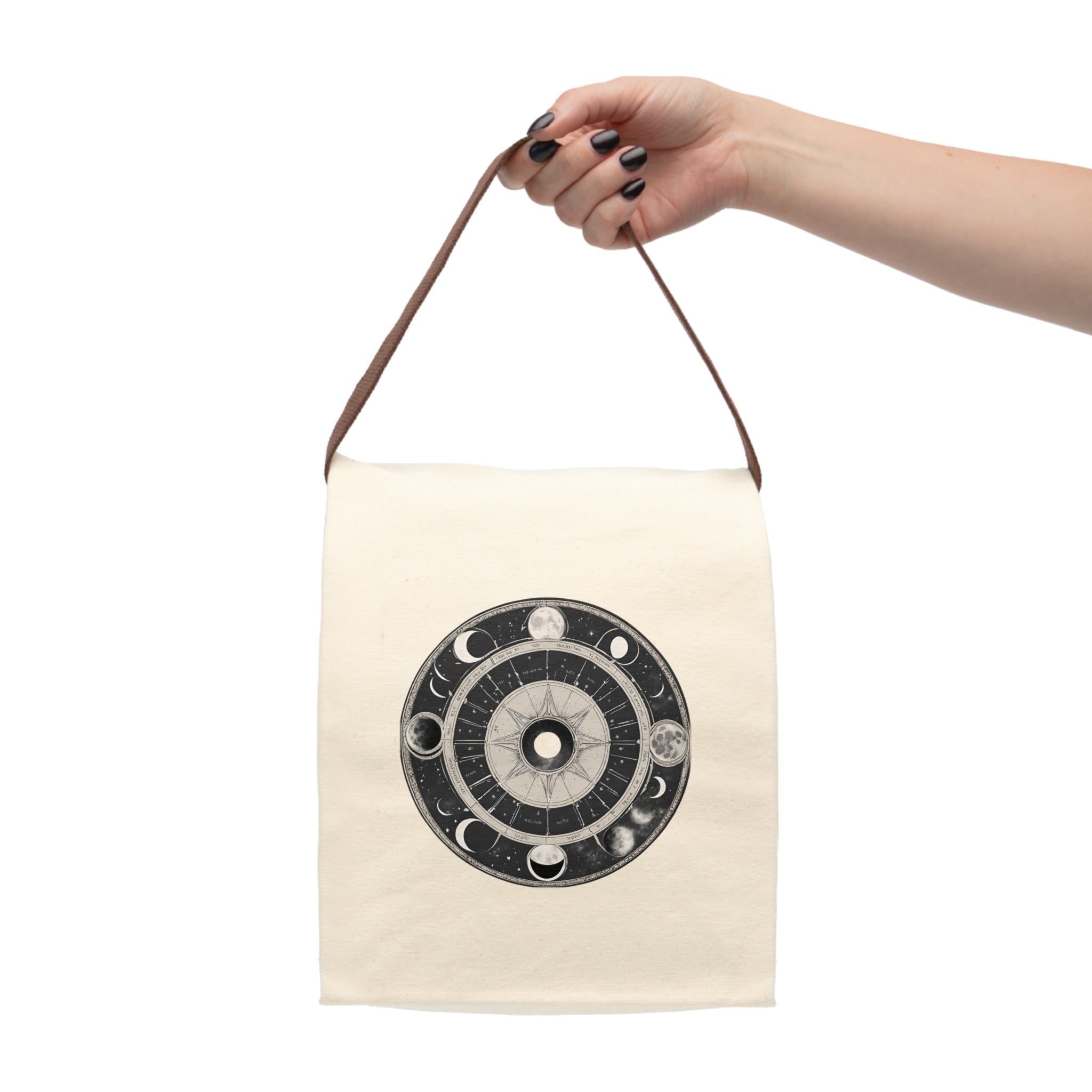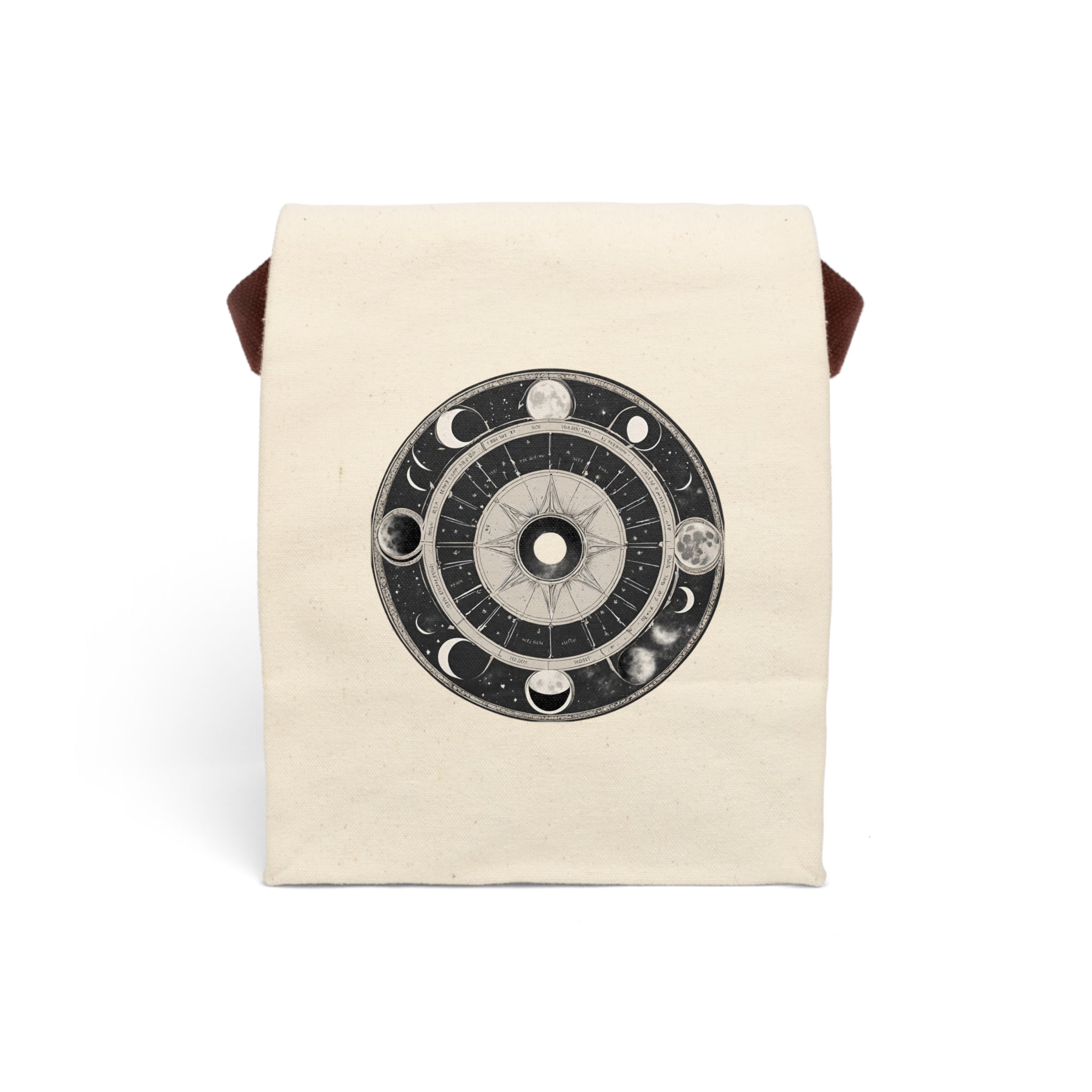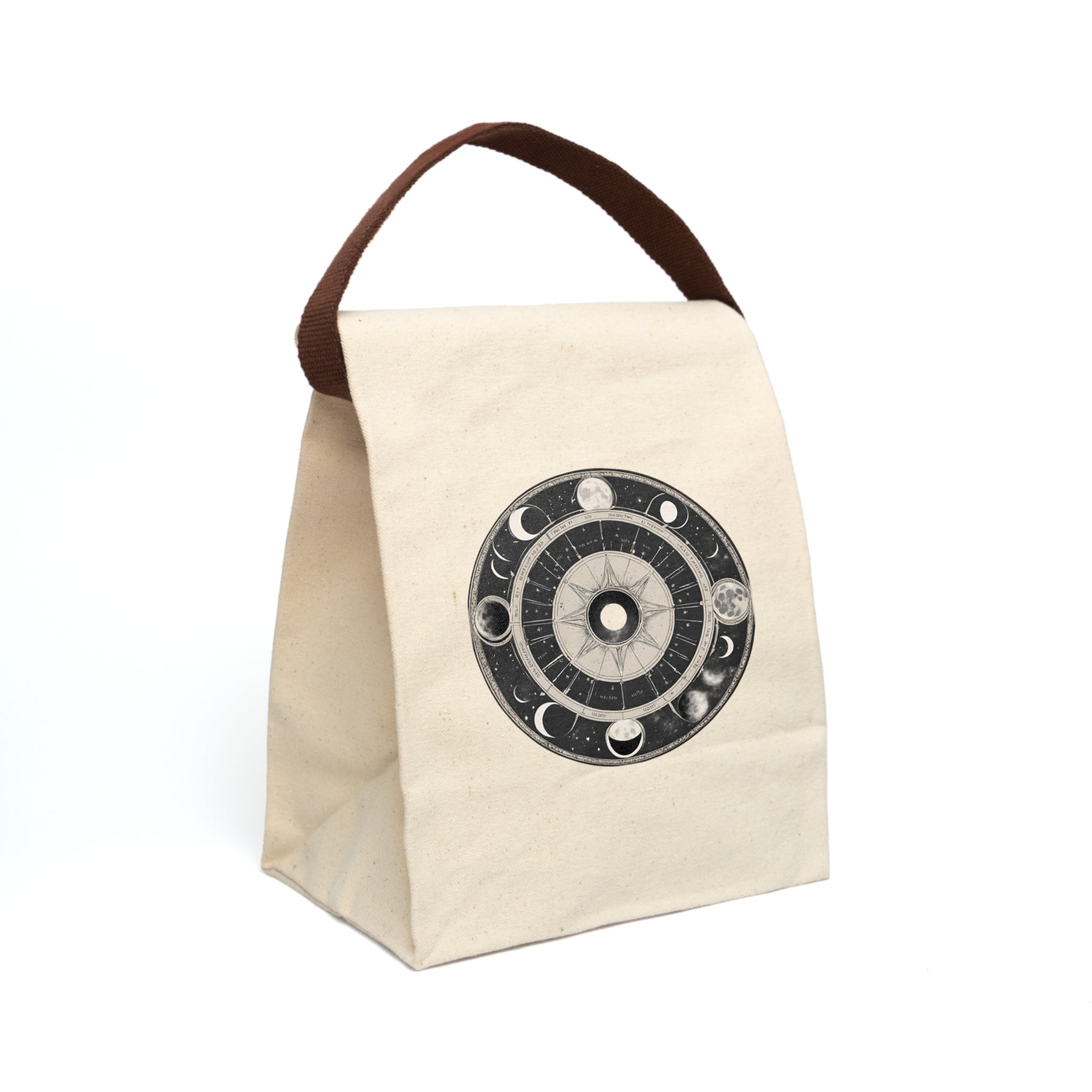 Moon Phases Canvas Lunch Bag | Lunar Cycle Astronomy Meal & Snack Carrier | Wheel of the Year School or Work Office Solar System Holder