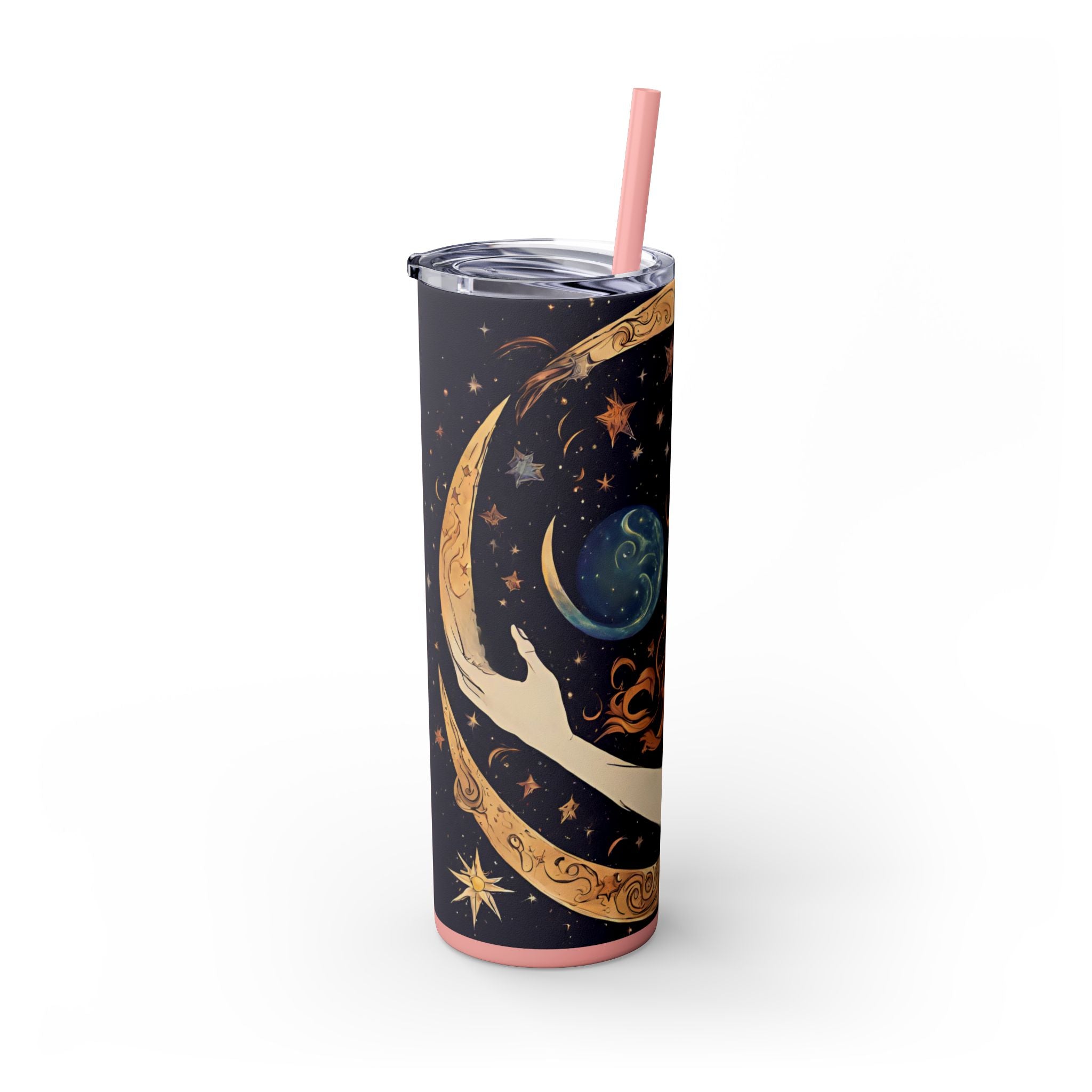 The tapered shape with slim design makes it perfect for carrying to moon ceremonies, yoga sessions, or just everyday goddess activities, while the plastic press-on lid with color-matching straw adds practicality to the celestial magic. All components are BPA-free and non-toxic—because moon goddesses deserve quality drinkware.