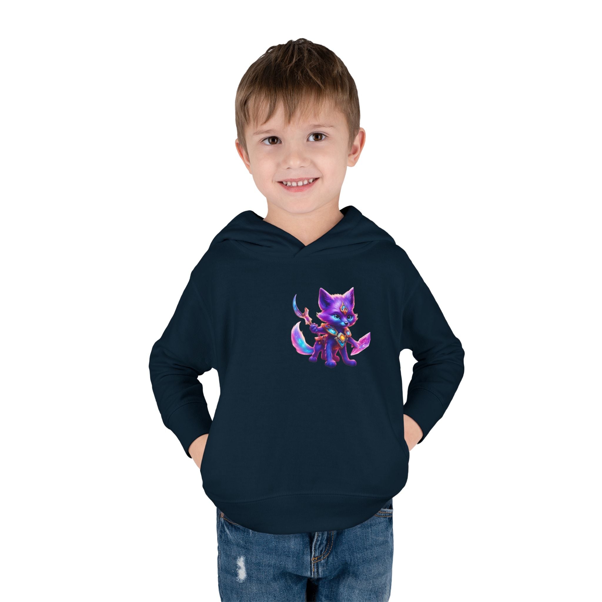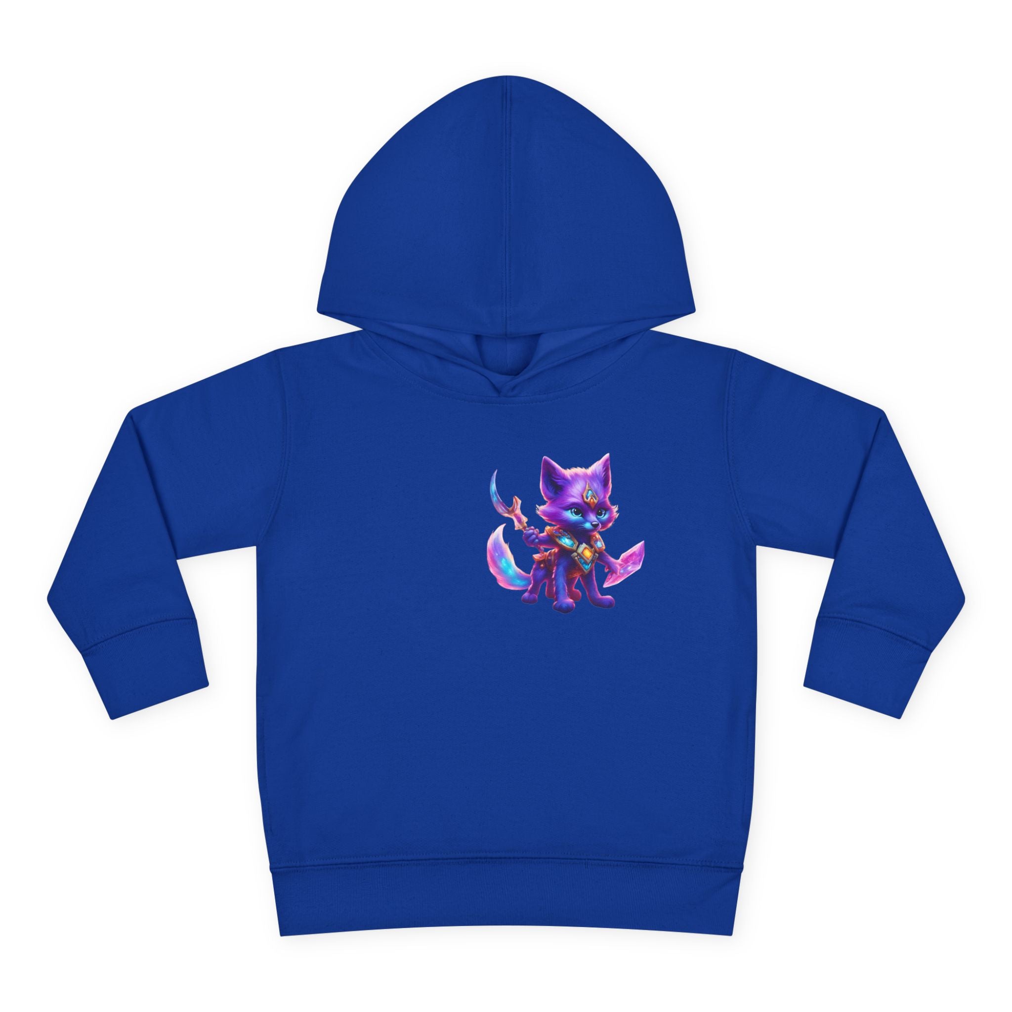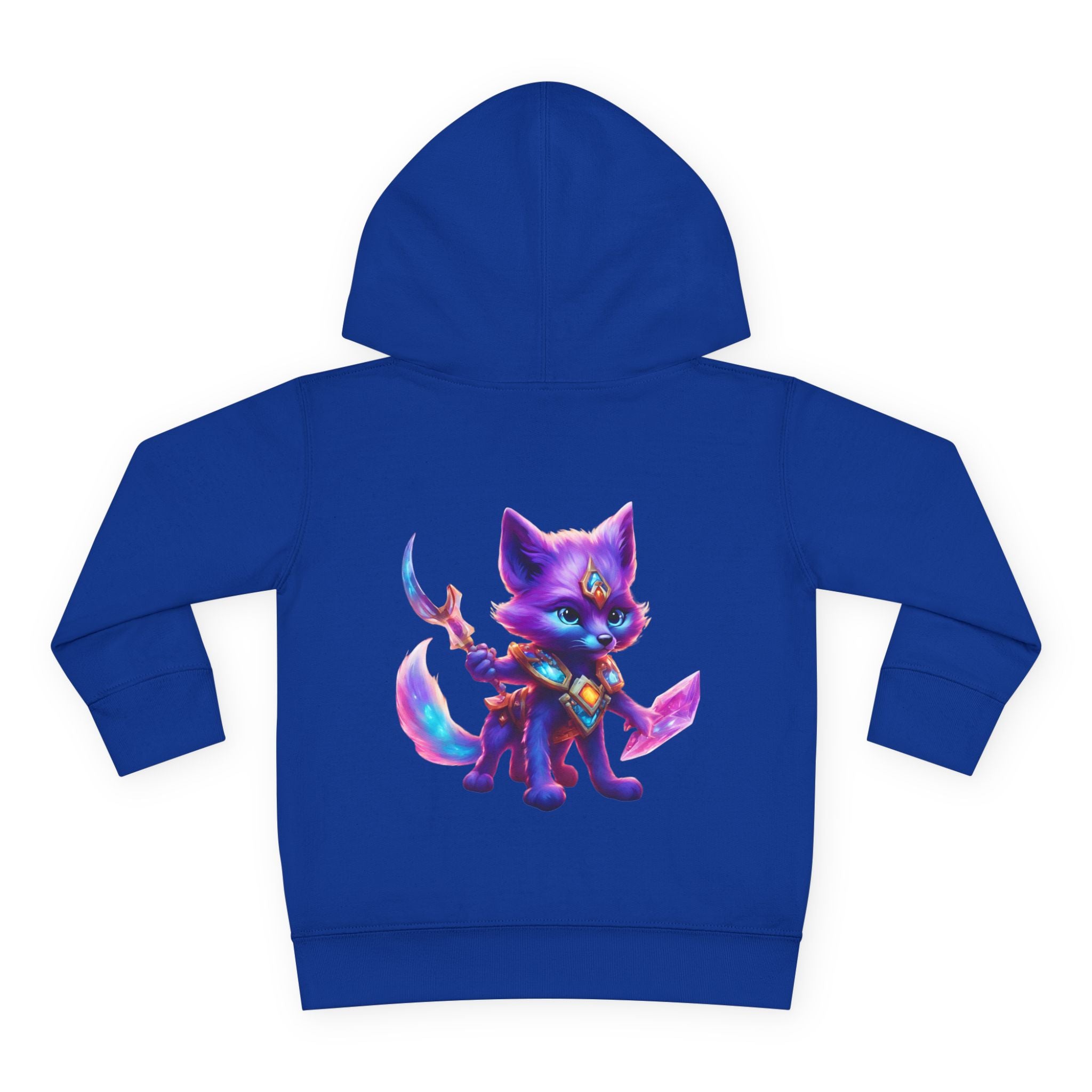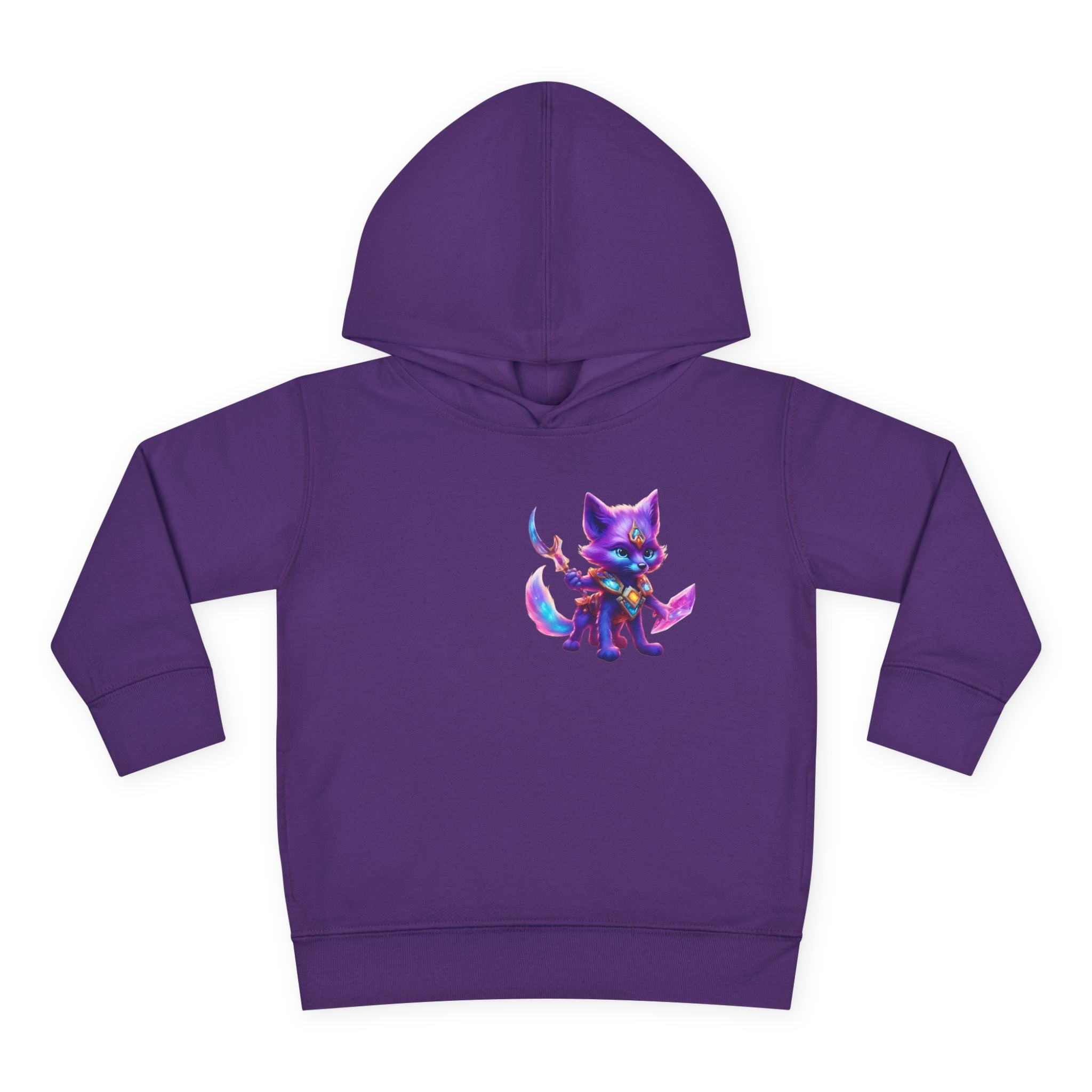 Neon Glowing Crystal Fox Toddler Girls Hoodie, Violet Blue Centaurian Cosmic Guardian Sweatshirt, Two Sided 2T 4T 5-6T Long Sleeve Hood