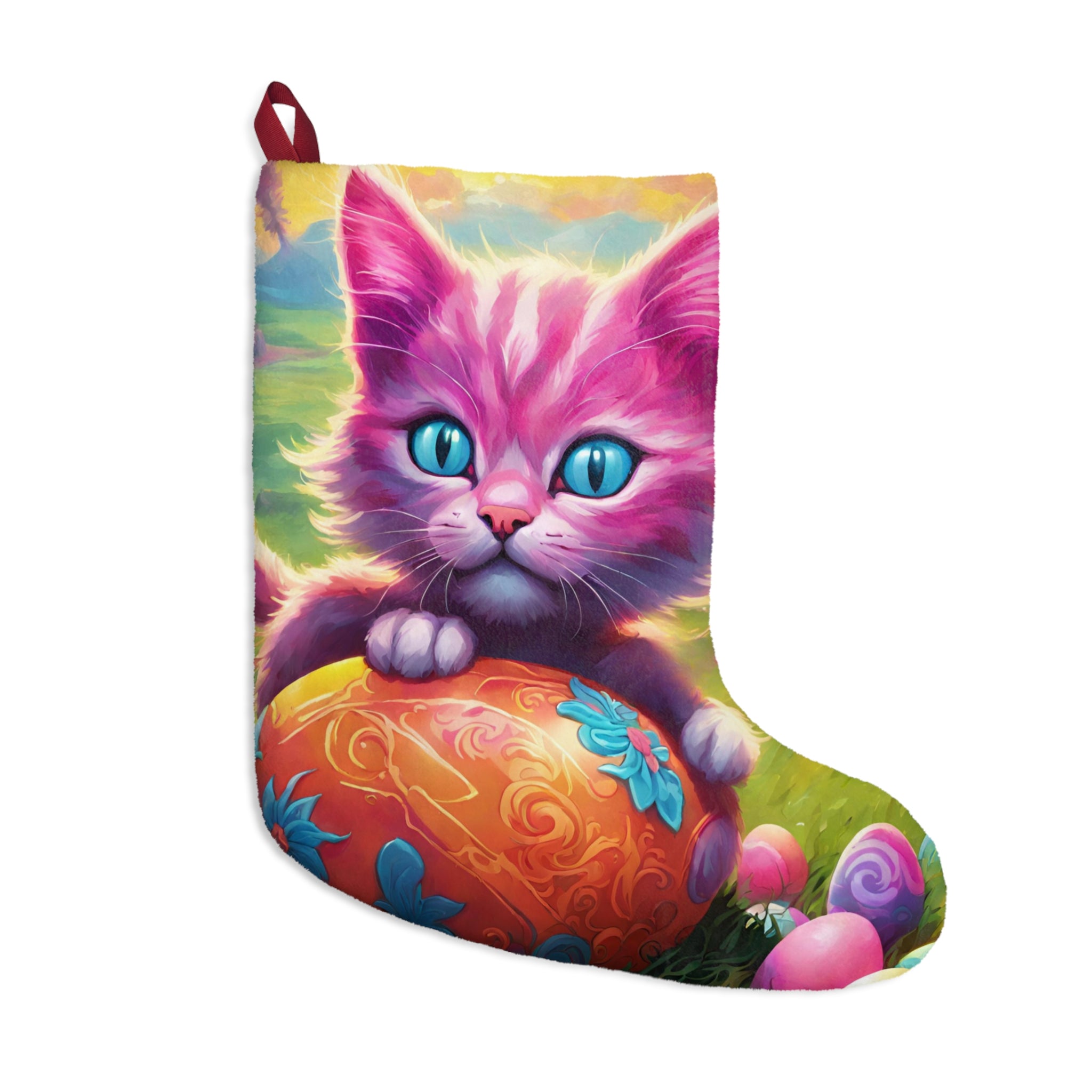 Personalized Easter Gift, Pink Kitten Stocking, Easter Egg Sock Stuffer, Kids Adults Cute Fun Hide and Seek Present