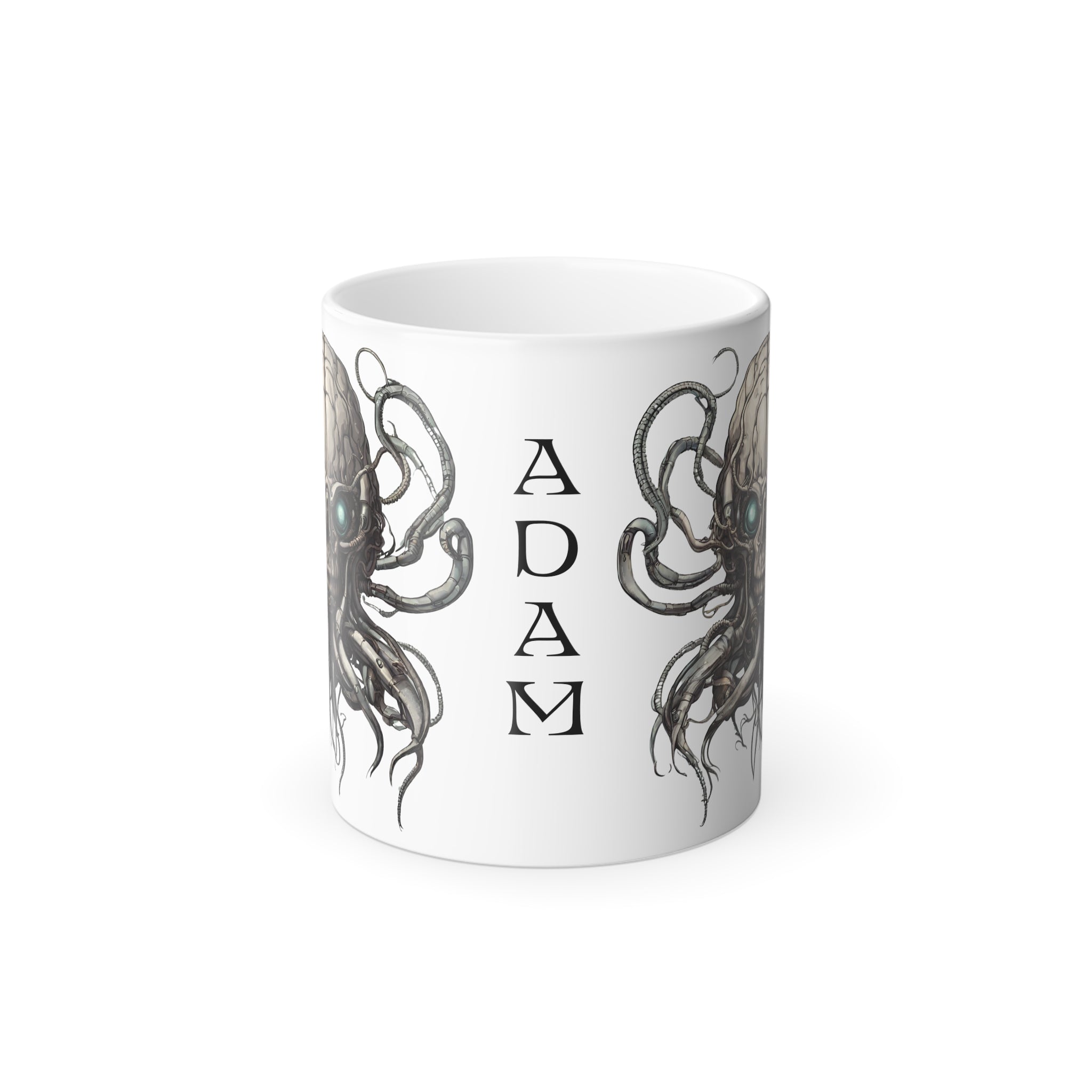 Experience the future with this Cyborg Alien Brain Color Changing Mug! Featuring a tentacle robotic skull design inspired by video games and sci-fi, this heat-reactive mug reveals your custom design once it gets warm. Perfect for sci-fi lovers, video game fans, and anyone who appreciates cyborg alien aesthetics.