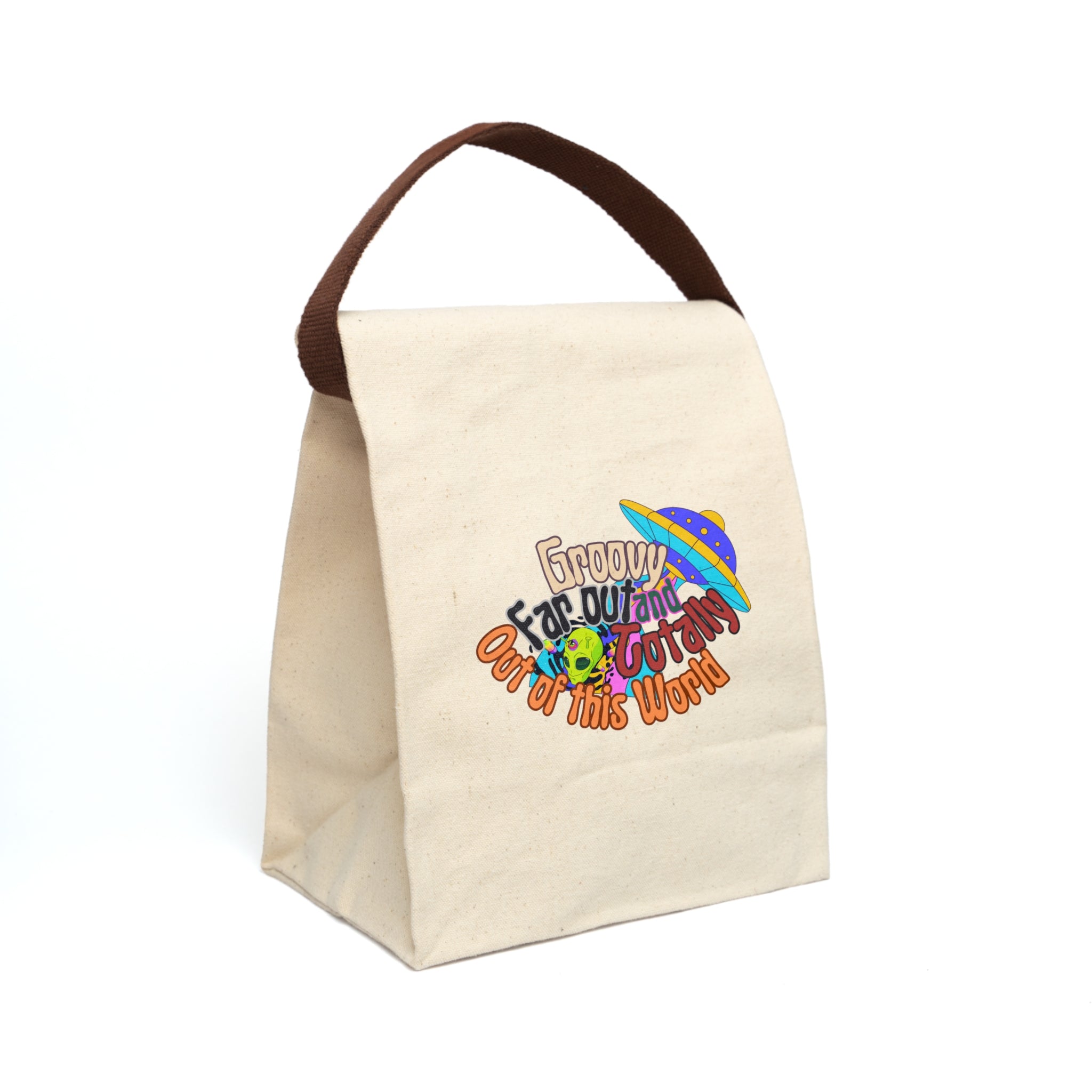 Psychedelic UFO Alien Spaceship Canvas Lunch Bag | Outer Space 70's Vibe Groovy Snack Carrier | Office or School Meal Time Trendy Bag