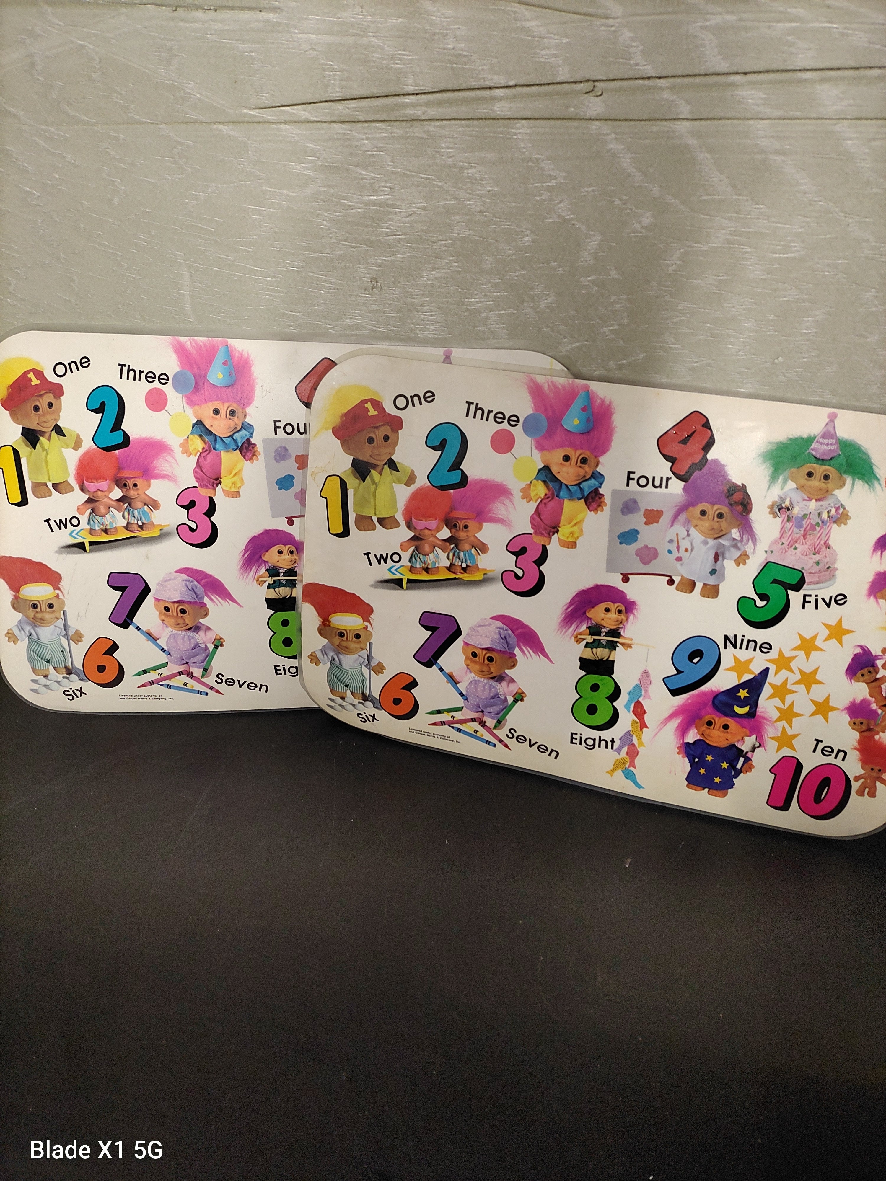 RUSS TREASURE TROLLS Vintage Food Activity Placemats (2) RARE