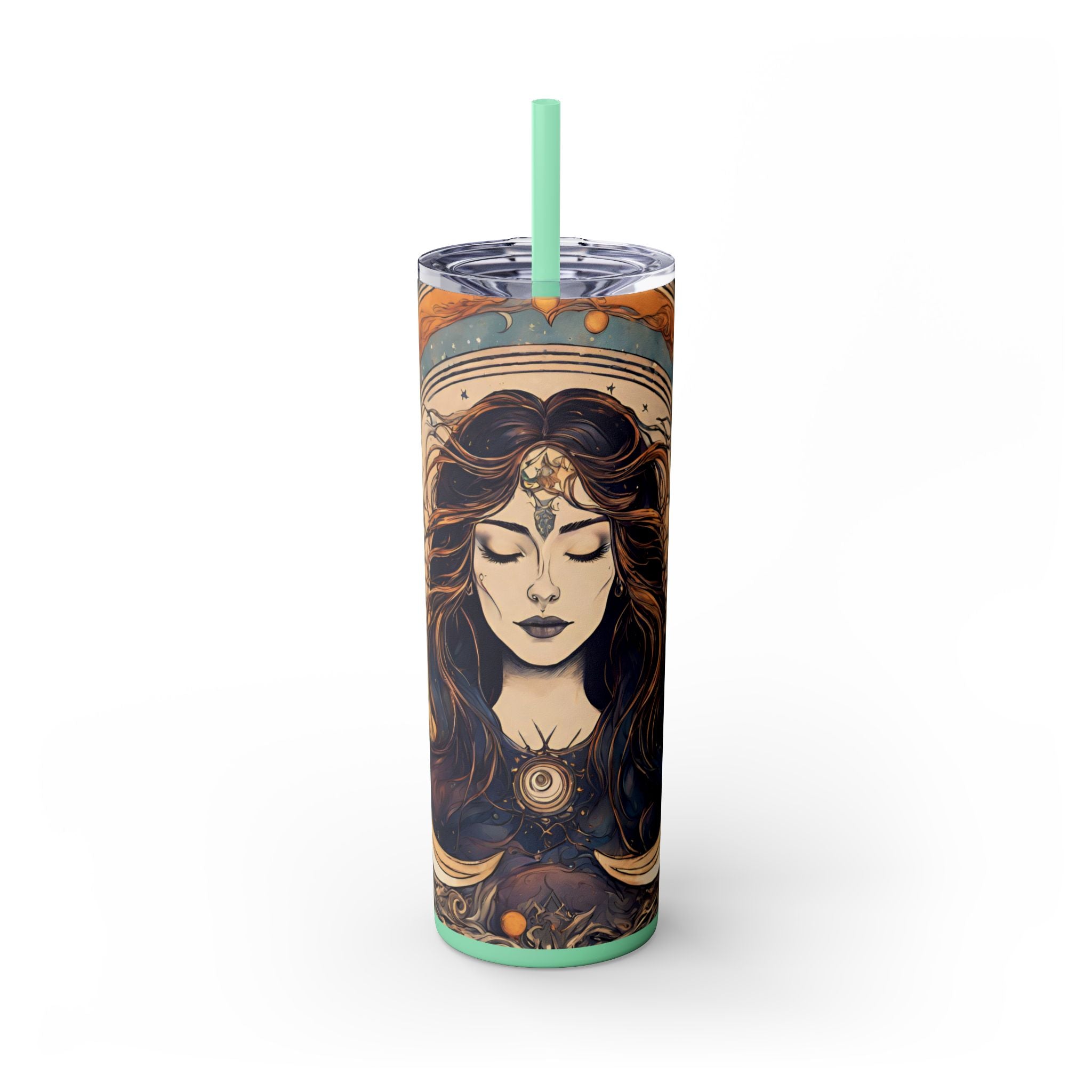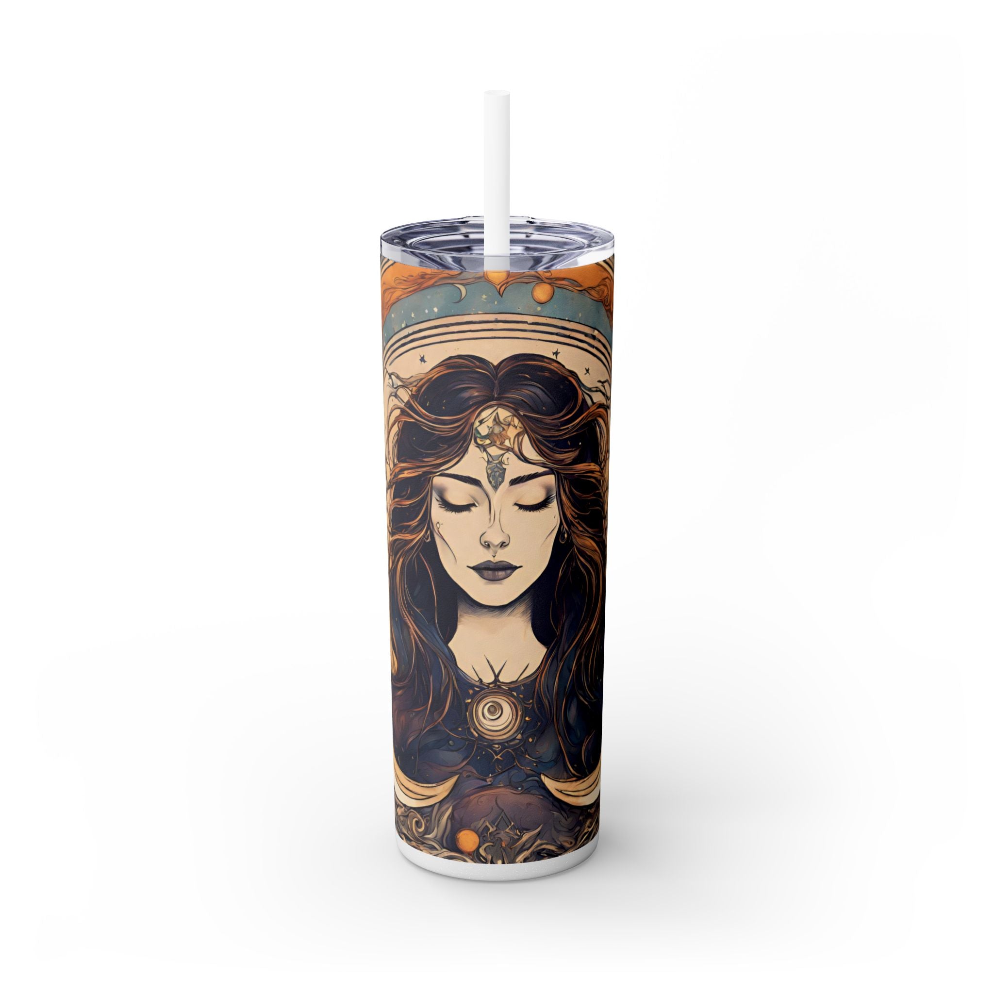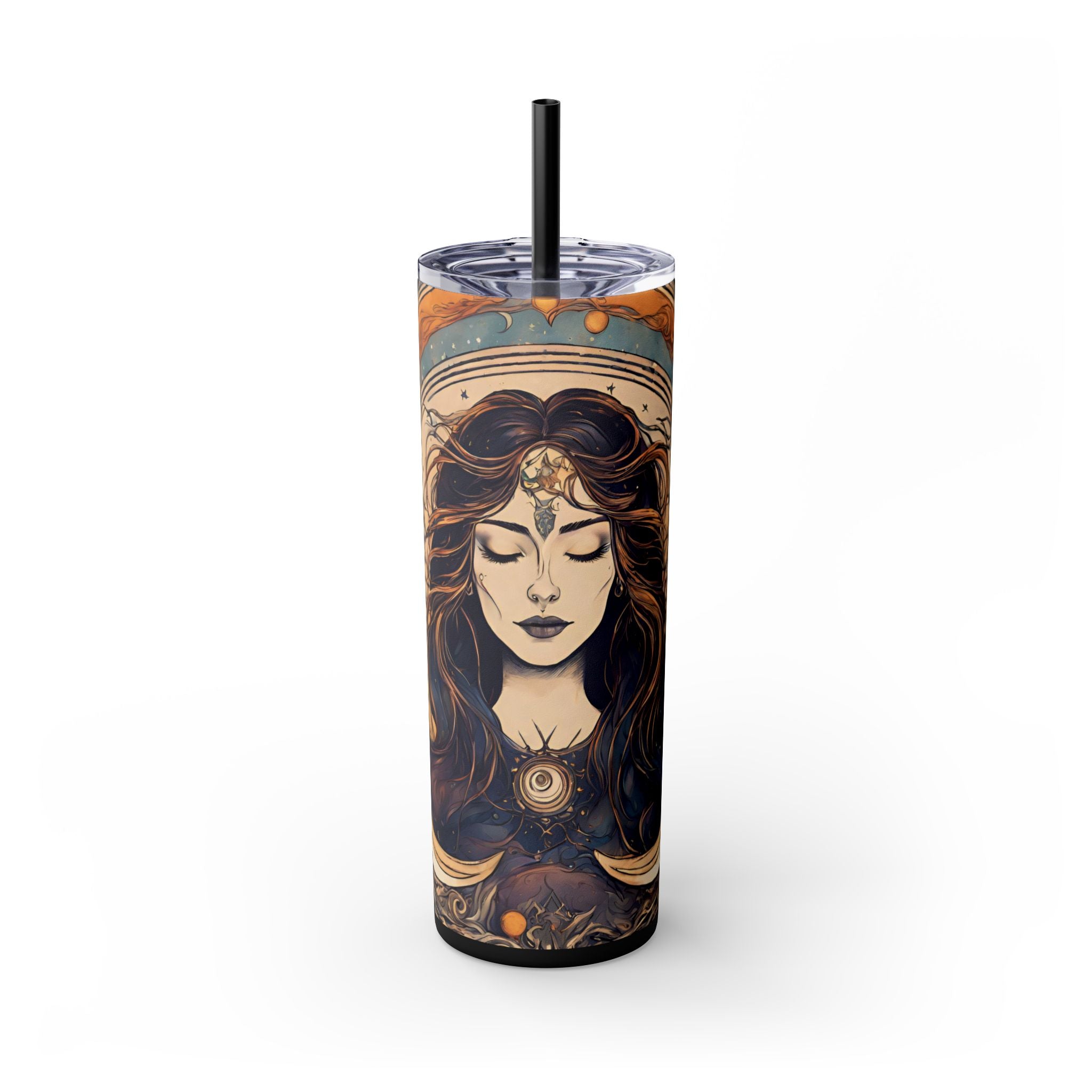 Whether you're sipping your beverage during summer solstice celebrations, staying hydrated through lunar rituals, or just appreciating the cosmic beauty of a goddess who embodies both sun and moon, this tumbler keeps your drinks at the perfect temperature. It keeps beverages cold for 24 hours or hot for 12—through every celestial cycle.