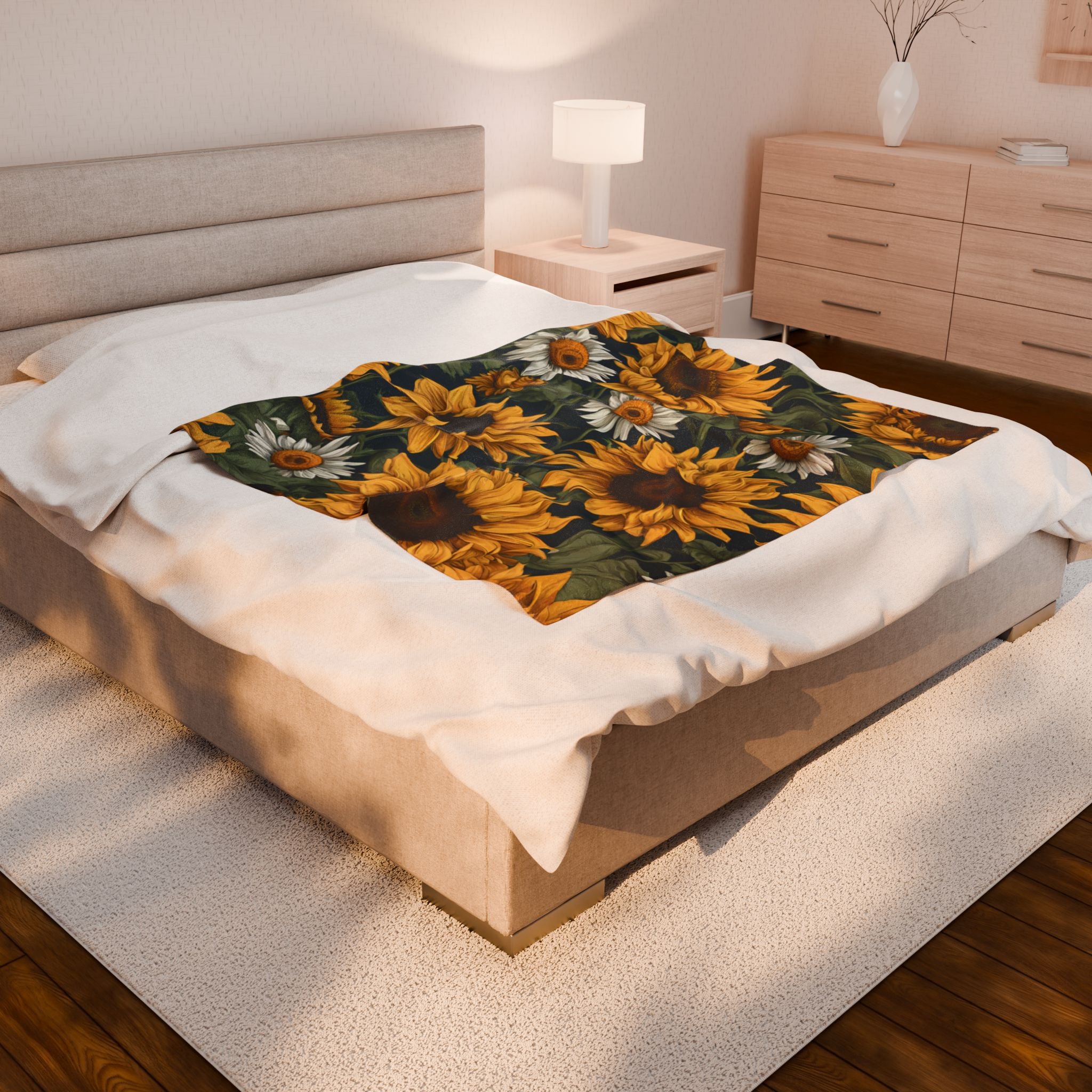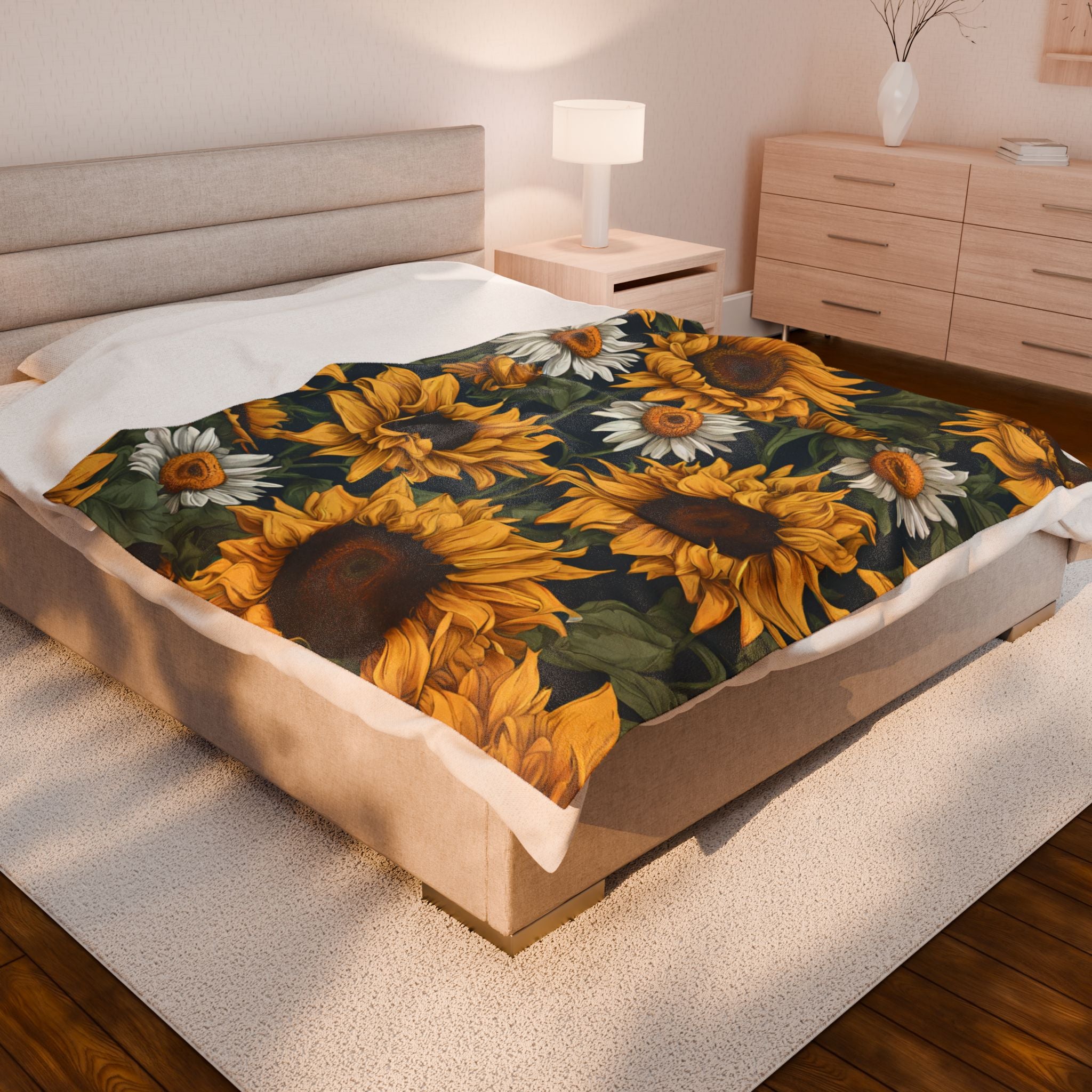 Sunflowers & Daisies Blanket, Spring or Summer Couch Plush Throw, Yellow and White Flower Bed Cover, Country Home Warm Bedroom Cozy Sheet