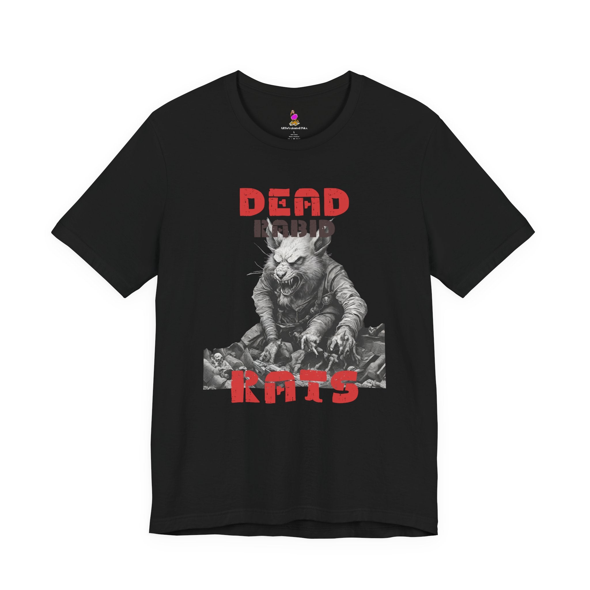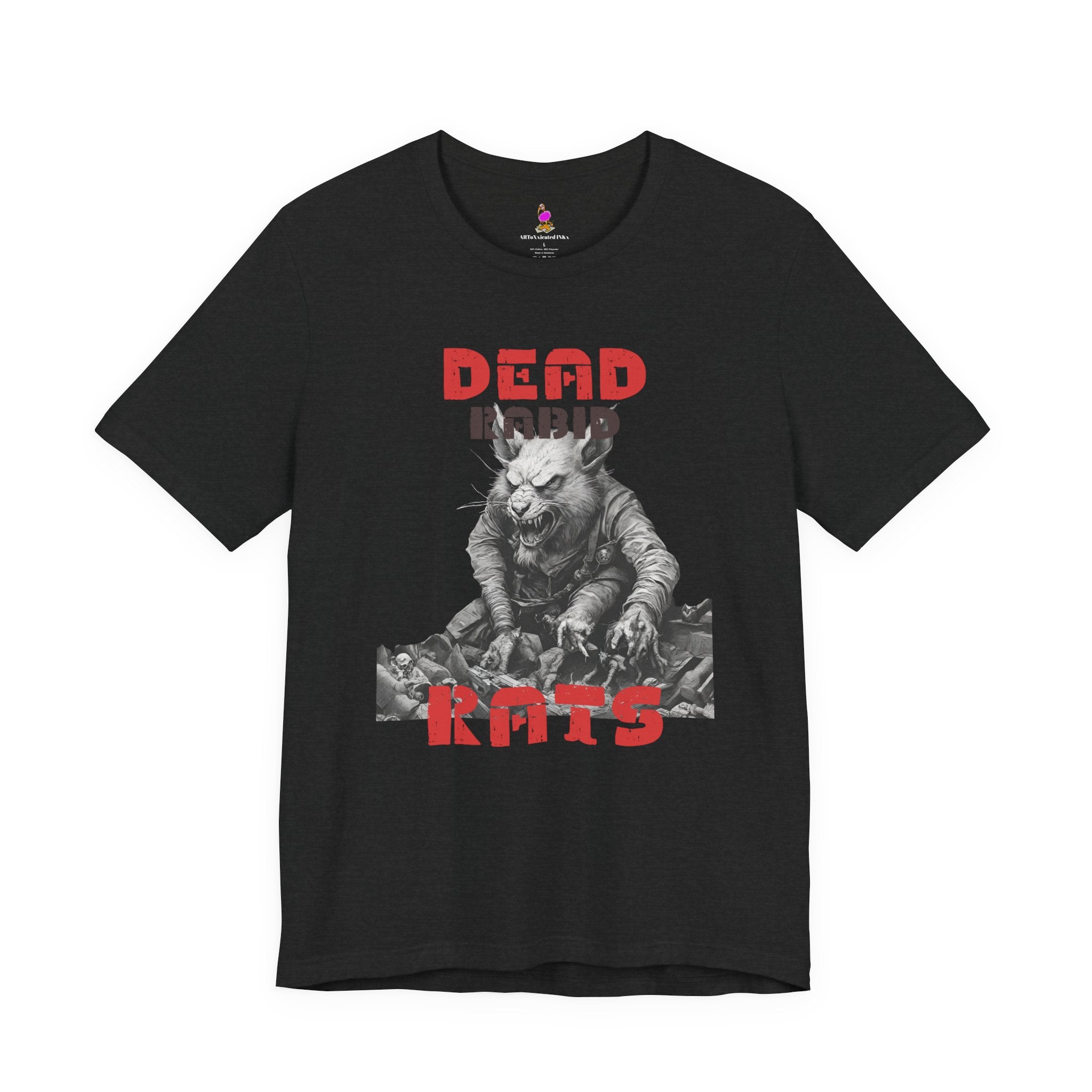 Step into the terrifying world of 1980s horror cinema with this Dead Rabid Rats t-shirt! Inspired by the vintage horror movies that defined an era of scares and cult classics, this tee is perfect for horror fans, retro movie enthusiasts, and anyone who loves the raw, gritty aesthetic of 80s terror.
