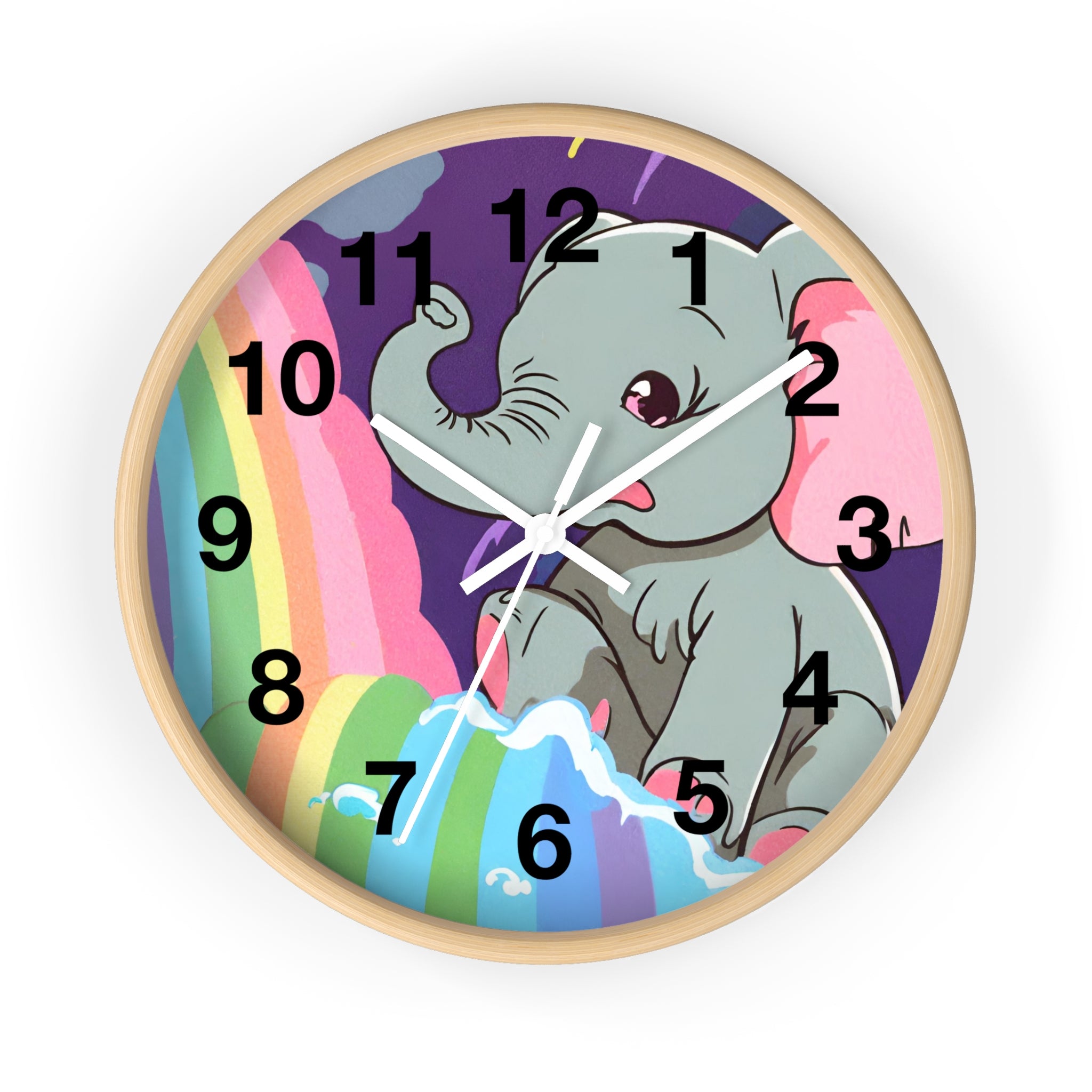 RAINBOW FALLS ELEPHANT Wall Clock - Kids Room Nursery Animal Decor