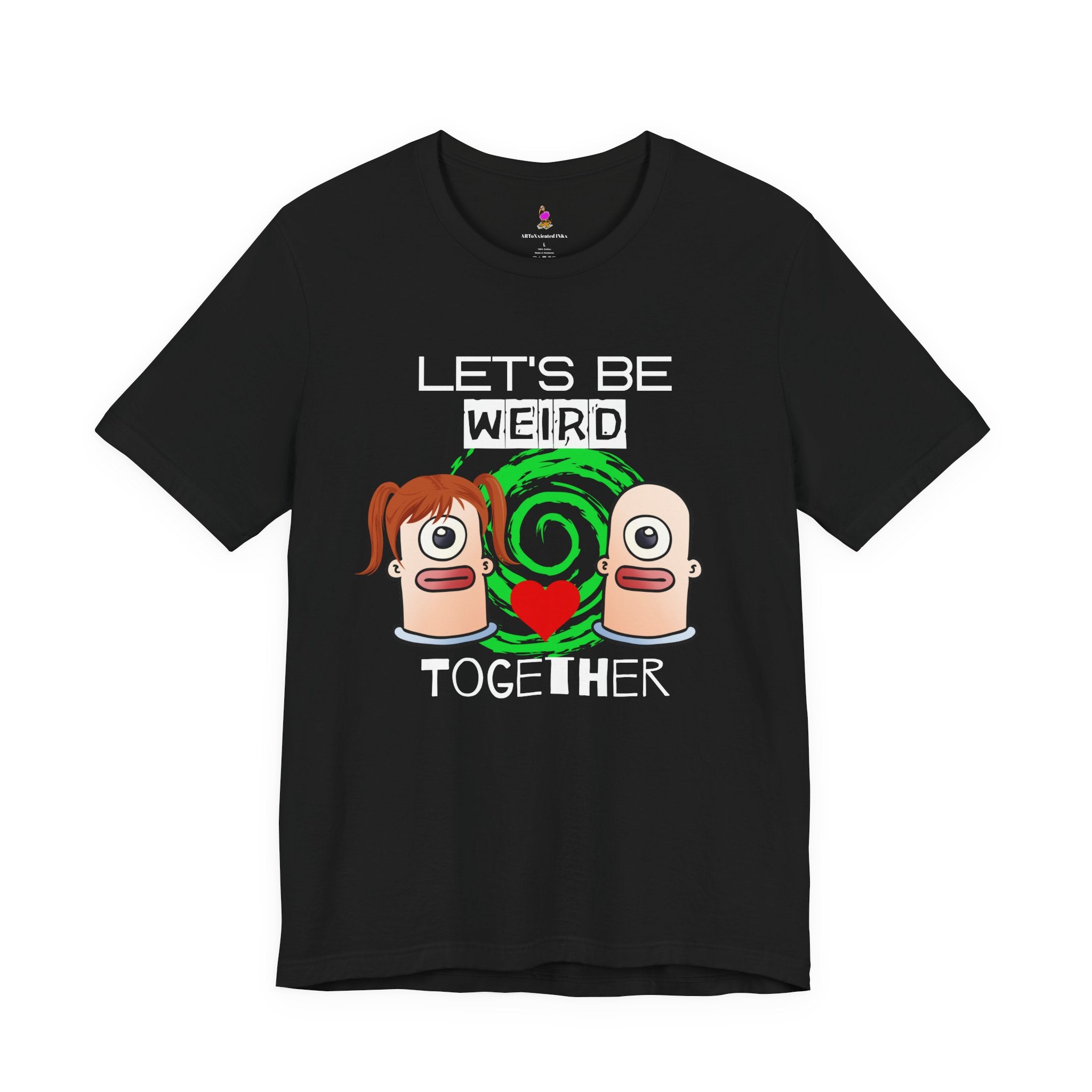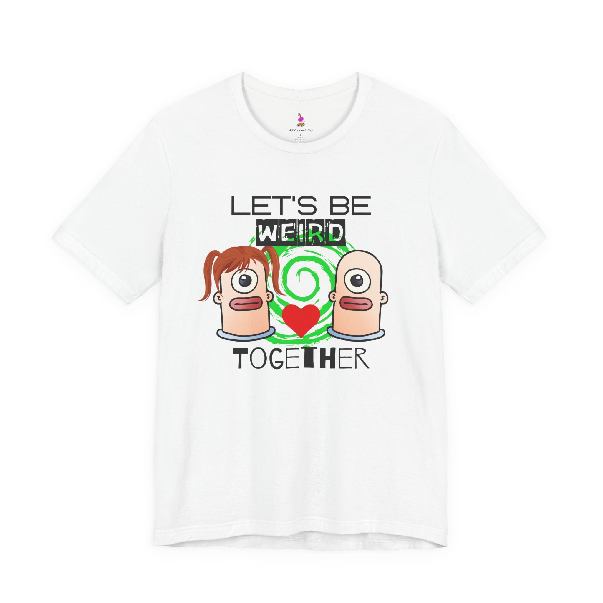 Celebrate your perfectly weird relationship with this adorable "Let's Be Weird Together" t-shirt! Perfect for couples who embrace their quirks, this tee is the ultimate declaration that you've found someone who matches your level of weird—and that's the best kind of love.
